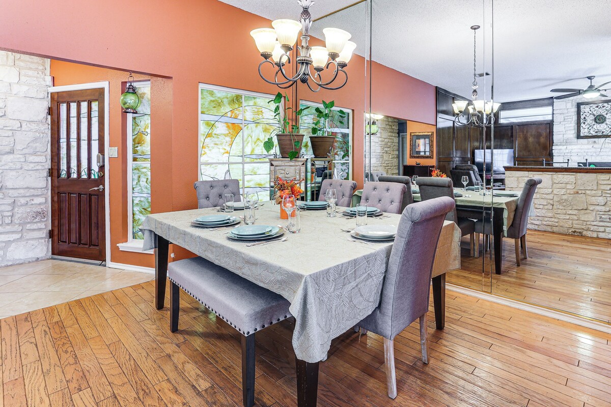 11 Mi to Dtwn | Pet Friendly w/ Fee | BBQ Ready | Al Fresco Dining Step into your San Antonio getaway! Iconic museums, Southwestern flavors, and local entertainment are just outside your doorstep at this 3-bed, 1-bath vacation rental! After enjoying an afternoon of sightseeing, stroll along the River Walk or grab a bite at a local Tex-Mex joint for an authentic taste of the Lone Star State. Ready to relax? Head home to enjoy a dip in the pool before settling in for a movie on the big screen. -- THE PROPERTY -- STR-25-13401132 SLEEPING ARRANGEMENTS - Bedroom 1: 1 queen bed - Bedroom 2: 1 queen bed - Bedroom 3: 1 queen bed INDOOR LIVING - Smart TV, books - Dining tables, breakfast bar - Piano - Wood-burning fireplace (wood provided) OUTDOOR LIVING - Private hot tub & pool (heated, open year-round) - Gas & charcoall grills - Wood-burning fire pit - Backyard w/ seating - Dining table KITCHEN - Refrigerator, microwave, stove/oven, dishwasher - Keurig coffee maker, blender, toaster - Cooking basics, dishware/flatware - Spices GENERAL - Free WiFi - Central A/C & heating - Washer/dryer, hangers, iron/board - Linens & towels, trash bags & paper towels - Complimentary toiletries, hair dryer FAQ - Pet fee (paid pre-trip) - Quiet hours (10:00 PM-6:00 AM Sun-Thurs, 11:00 PM-6:00 AM Fri-Sat) - Homeowner on-site (separate unit) ACCESSIBILITY - Single-story home, exterior stairs required to enter PARKING - Carport (1 vehicle) - Driveway (1 vehicle) - No garage access -- THE LOCATION -- - Near local green spaces & Methodist Hospital - 9 miles to San Antonio Aquarium & 10 miles to San Antonio Zoo - 10 miles to Pearl - 10 miles to Brackenridge Park & 20 miles to San Antonio Missions National Historical Park - 11 miles to Witte Museum & 12 miles to San Antonio Museum of Art - 13 miles to San Antonio River Walk & The Alamo - 7 miles to San Antonio International Airport -- REST EASY WITH US -- Evolve makes it easy to find and book properties you’ll never want to leave. You can relax knowing that our properties will always be ready for you and that we’ll answer the phone 24/7. Even better, if anything is off about your stay, we’ll make it right. You can count on our homes and our people to make you feel welcome — because we know what vacation means to you. -- POLICIES -- - No smoking - Pet friendly w/ $50 fee (+ fees & taxes) - No events, parties, or large gatherings - Must be at least 18 years old to book - Additional fees and taxes may apply - Photo ID may be required upon check-in - Please observe quiet hours from 10:00 PM to 6:00 AM from Sunday to Thursday and from 11:00 PM to 6:00 AM on Friday and Saturday ADDITIONAL INFORMATION - This single-story home requires exterior stairs to enter - The homeowner lives on-site, in a completely separate unit, and may be present during your stay Our prices include all fees. No hidden fees.