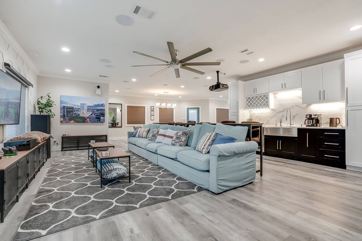 🌴 Backyard: fire pit, pellet smoker, cornhole set ✨ Hot tub 🌴 Covered patio w/ smart TV 🌴 Balcony w/ gas fire pit ⭐️ Game room: poker table, arcade machines, Xbox, & more ⭐️ Giant Jenga & chess, board games ✨ 6 bedrooms w/ smart TVs ⭐️ 5 full baths + toiletries ✨ Central A/C ⭐️ Chef's kitchen + Keurig + coffee bar ⭐️ 2 laundry areas ✨ Wi-Fi 400+ Mbps + 2 desktops + 2 monitors + printer ⭐️ Pack n' play + high chair ✨ Dog-friendly 🌴 8–12 min to DT River Walk, The Alamo, SA Art Museum Your reservation is completely contactless! You can simply use your code to enter and enjoy our place! What if I need help? No worries, you can contact us at any time, and we will do our best to assist you. The best way to contact us is through the platform chat, but you can also email or call us if needed. We strongly suggest to quickly read the house manual and explore the guidebook. Everything you need to know is most likely explained in the guidebook. It has instructions on directions, parking, check-in, check-out, other videos on how to use things around the house, and many recommendations on places you can visit during your stay! This home resides in a peaceful neighborhood. Should you need anything during your stay, with just a 3 to 5-minute drive, you'll find plenty of practical amenities such as supermarkets, gas stations, restaurants, gyms, and retail stores, for a more convenient stay. • GENERAL: Guests can enjoy full access to the entire house. • PARKING: Free parking is available for a maximum of 4 vehicles on the driveway. Street parking is not allowed. • WORK FROM HOME: There is free, high-speed Wi-Fi (400+ Mbps) available throughout the home, plus 2 designated workspaces in the 1st floor. • FAMILY: Traveling with little ones? We’ve got you covered with a few supplies including 2 pack n' play, and a highchair available on-site. • PETS: Please let us know if you would like to bring a pet and we would be happy to accommodate them for an additional fee. Don’t hesitate to reach out with any questions - we look forward to hosting you! ★★ HIGHLIGHTS ★★ • 6 comfortable bedrooms w/ smart TVs • 5 full bathrooms; essential toiletries provided • Central air conditioning • Fully stocked kitchen • Keurig coffee maker + coffee bar • Game room w/ poker table + cocktail arcade machine + Xbox One X, foosball table, couch + 2 smart TVs • High-speed Wi-Fi w/ speeds up to 400+ Mbps + large desktop computer w/ 2 ergonomic chairs + 2 monitors + printer • Games galore; poker set + board games + giant Jenga + oversized chess, cornhole set • Private backyard w/ electric pellet smoker + gas fire pit + patio seating + table and chairs • Covered patio w/ smart TV, outdoor lounge furniture • Covered balcony w/ gas fire pit, outdoor lounge furniture + direct access from bedroom 5 & 6 • Hot tub • Family-friendly; pack n play + high chair • Pet-friendly (dogs only) • In-unit two laundry rooms w/ iron + ironing board + detergent • Free on-site parking for maximum 4 vehicles Here Are A Few Kind Words From Our Previous Guests: \ s masters graduation, so we had 14 people. The home easily accommodated all of us with comfy beds, a super family kitchen, and games galore for adults and kids. The additional touches were fabulous and Jose and the cleaning service were responsive and soooo welcoming. Thank you for sharing your wonderful home with us!" - Sue "Jose was very responsive, communicated well, and definitely had an amazing spacious, clean, warm home feeling stay! We had the most amazing reunited and peaceful stay for my son’s graduation! This home has more than what it says online, everything down to the T…steamers, irons, ironing boards, spices, oil, hand lotions, multiple washer, and dryers, so many games! Every place you went, whether that be inside or outside was very thought out and well planned! All my Airman wanted to do was take a nice long shower and relax and he felt right at home! We’ll definitely be coming back!!!" - Jennifer "We LOVED our stay at Jose’s. The best long weekend and all of the amenities. If it wasn’t our first time to the city we wouldn’t have even had to leave the house! 10/10 would recommend" - Mackenzie Eager to Read More? ★★ BEDROOMS ★★ • Primary bedroom: First floor, king-sized bed, smart TV, bedside table + lamp, full-length mirror, walk-in closet + ensuite bathroom • Second bedroom: Second floor, king-sized bed, 1 twin-sized foldable bed, smart TV, bedside table + lamp, full-length mirror, walk-in closet + ensuite bathroom • Third bedroom: Second floor, king-sized bed, 1 twin-sized foldable bed, smart TV, bedside table + lamp, full-length mirror, closet • Fourth bedroom: Second floor, king-sized bed, smart TV, bedside table + lamp, full-length mirror, walk-in closet + ensuite bathroom • Fifth bedroom: Second floor, king-sized bed, smart TV, bedside table + lamp, full-length mirror, walk-in closet + ensuite bathroom + direct access to covered balcony • Sixth bedroom: Second floor, king-sized bed, queen-sized sleeper sofa, smart TV, bedside table + lamp, full-length mirror, walk-in closet + ensuite bathroom + direct access to covered balcony • Living room: 2 queen-sized sleeper sofas for 4 additional guests • Complimentary crib ★★ BATHROOMS ★★ • Primary bathroom: Ensuite to primary bedroom w/ luxury standalone tub, walk-in shower, dual vanity + bidet • Bathroom 2: Shared bathroom between bedroom 2 & 3 w/ shower/tub combo, dual vanity + bidet • Bathroom 3: Ensuite to bedroom 4 w/ shower/tub combo + bidet • Bathroom 4: Ensuite to bedroom 5 w/ shower/tub combo + bidet • Bathroom 5: Shower/tub combo + bidet + washer/dryer • Shampoo, conditioner, body wash, and body soap • Fresh towels (bath, hand, face, makeup) and bathrobes • Complimentary make-up pads + q-tips • Hair dryer ★★ KITCHEN & DINING ★★ • Fully stocked chef’s kitchen 