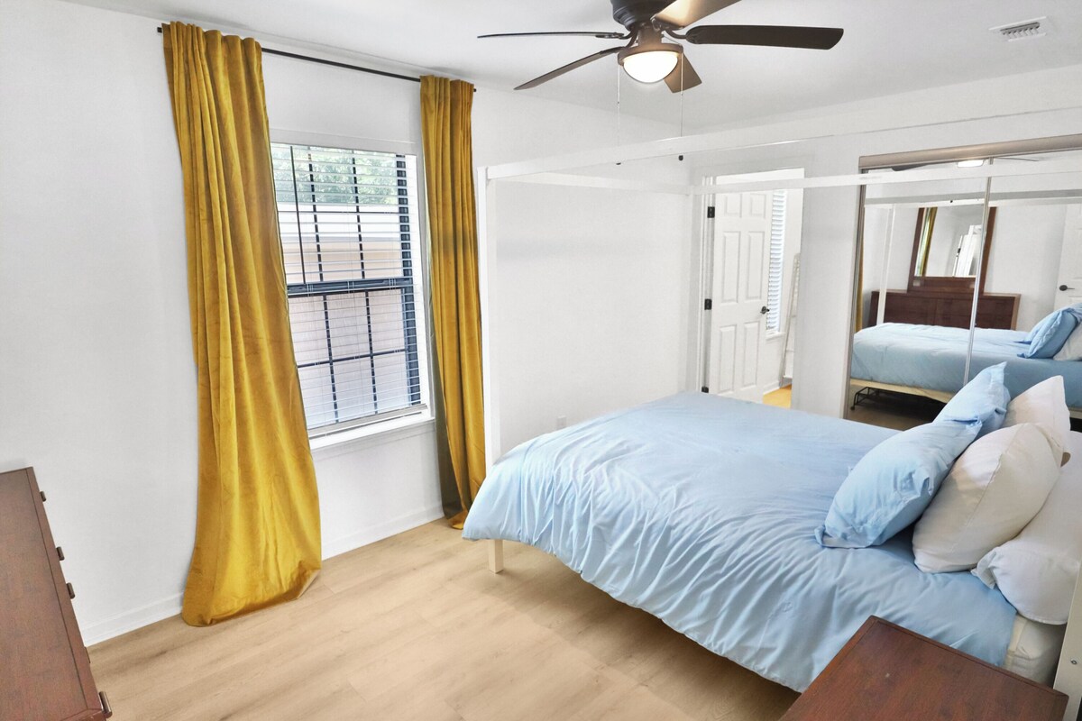 Welcome to your vibrant San Antonio escape! Just minutes from downtown, this modern 3BR home features bold decor, a modern kitchen, fast Wi-Fi, and a peaceful fenced yard with comfy lounge seating. Enjoy safe parking, smart check-in, and a pet-friendly setup perfect for families, friends, or remote workers. Whether you're exploring the River Walk or relaxing under the trees, this home has it all. The space The Space 🏡✨ Step into your stylish San Antonio retreat — perfect for families, friends, and remote workers! 🛋️ Living Room: Lounge on the vibrant orange sectional, stream your favorites on the smart TV, and soak in the natural light. 🍳 Kitchen: Sleek and fully equipped with stainless steel appliances, bar seating, and all the essentials to whip up meals or enjoy takeout. 🛏️ 3 Cozy Bedrooms: 🌞 Room 1: Plush queen bed with bold accents and blackout curtains for restful sleep. 💛 Room 2: Full bed with fresh linens and warm, inviting touches. 👨💻 Room 3: Twin bunk beds + a dedicated desk space — perfect for kids or digital nomads! 🛁 2 Bathrooms: One with a modern shower/tub combo One with a step-in shower and your own washer/dryer for longer stays. 🌳 Backyard Bliss: Sip your coffee or wine in the private fenced yard with comfy patio seating and shade from the trees — your own quiet oasis in the city. 🚗 Parking: Private driveway + garage for secure, off-street parking. 🐾 Pet-Friendly: Bring your furry friend — they’ll love the fenced yard as much as you do! 📍All just minutes to downtown, The River Walk, Alamodome, and local food gems. Whether you’re here for a quick weekend or an extended stay, this colorful home has everything you need to feel right at home in San Antonio. Guest access Guests have full access to the entire home 🏡 That includes: All 3 bedrooms 🛏️ 2 full bathrooms 🚿🛁 Fully stocked kitchen 🍳 Living and dining areas 🛋️ In-unit washer & dryer 🧺 Private fenced backyard with outdoor seating 🌿 Driveway & garage for parking 🚗 Enjoy the space as your own — no shared areas, no interruptions. Check in anytime with our smart lock 🔑✨ Other things to note Booking Duration -Once a reservation is made, the number of nights booked cannot be shortened. Please book only for the duration you intend to stay. For everyone’s safety and peace of mind, we have two outdoor security cameras (at the front door and back corner) that help protect our guests and the property, without intruding on anyone’s privacy. Registration Details STR-25-13500399 Our prices include all fees. No hidden fees.
