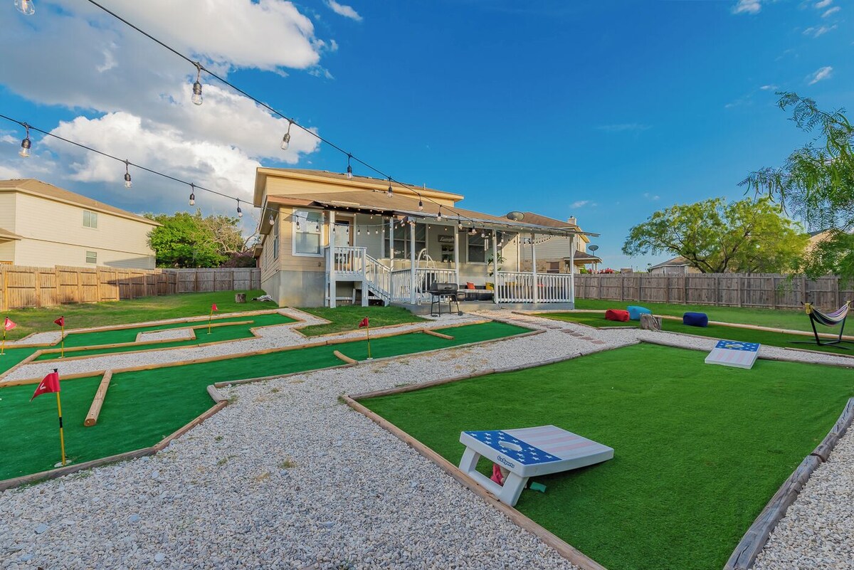 This beautiful luxury home is located in a peaceful area in San Antonio, 10 min drive to Lackland AFB & Sea World. Includes a master suite, a game room, 3 TVs (living, suite & game loft), covered patio with furniture & BBQ grill, fire pit & Cornhole game. Gameroom includes a Foosball table, Pool table, arcade & games. Cable & wireless internet throughout the house. It’s remodeled with wood & tile floors, ceiling fans in all rooms. You can freely use the park and basketball court. Includes a private garage. This is a 6 bedroom, 3 bath, 2400sqf house which include beds for 17 guests, It includes everything you need. Smart TVs which can be used with Netflix and all cables channels (Plus more TVs in the game room and the suite), Wi-Fi, washer & dryer and more. This home is also suitable for babies and it includes a highchair and a pack ’n Play/travel crib. The high ceilings and skylights make this a bright and inviting space. This house has a game room with Foosball table, game arcade, Pool table, games and more. House Includes a perfect huge outside spot for sitting and a BBQ grill under a covered patio, fire pit, outdoor chill area, Mini golf & Cornhole game. I can assure you will love it! You are welcome to enjoy the house in its entirety from the kitchen to the backyard with BBQ area and use the garage freely. You can also freely use the Neighborhood’s park and basketball court that are located a few minutes away from the house. The house is very close to shopping and dinning. Located right behind Lackland Air Force Base. (about 3 minutes drive) There is a Super Wall-Mart around the corner for your shopping needs. 10 minutes drive to Downtown, Seaworld, Ingram Park shopping mall. 20 minutes drive to Airport, Fiesta Texas - Sixflags, Zoo, Major parks and the Botanical Gardens. Great location! • Check in is at 3pm. No keys are required. • Checkout is at 10am. No keys are required. - Early check in & Late check-out might be possible for an additional fee (Please ask for an approval first) I will be more then happy to assist with any issue. I live 10 minutes away and will gladly help with any need. While you're here, the house is yours to enjoy and interaction with me is up to you! You can use the keypad entry to access the home and I will send you the access code upon arrival. Once you have settled in, do not forget to check out my list of top recommended sites to enjoy while you are in the Alamo city. I want your stay to be as pleasant as possible so please don't hesitate to contact me via the app. Notes: - House is 100% non-smoking. - Highchair and Pack n Play are available upon request. - Any event requires full pre-approval and planning with the host directly prior to booking. While I aim to accommodate requests, unauthorized events will result in heavy fines & event will be immediately closed. If you would like to arrange a small gathering or an event, please reach out to me prior to booking so we can discuss options or additional requirements. Parties are NOT allowed! Sound sensors which are used to detect the intensity of sound, are installed in this home to prevent unauthorized events. Please, no loud music after 22:00. Your cooperation is greatly appreciated. - We ARE pet friendly for up to two pets, but we need to know if you will be traveling with furry companions. We charge a $50 flat cleaning fee for the stay, to account for the additional time necessary to clean in these cases. - During your stay, I can connect you with recommended high-quality professionals who provide in-home treatments such as massages, facial treatments or private dining with a private chef. Feel free to ask me about it. Our prices include all fees. No hidden fees.