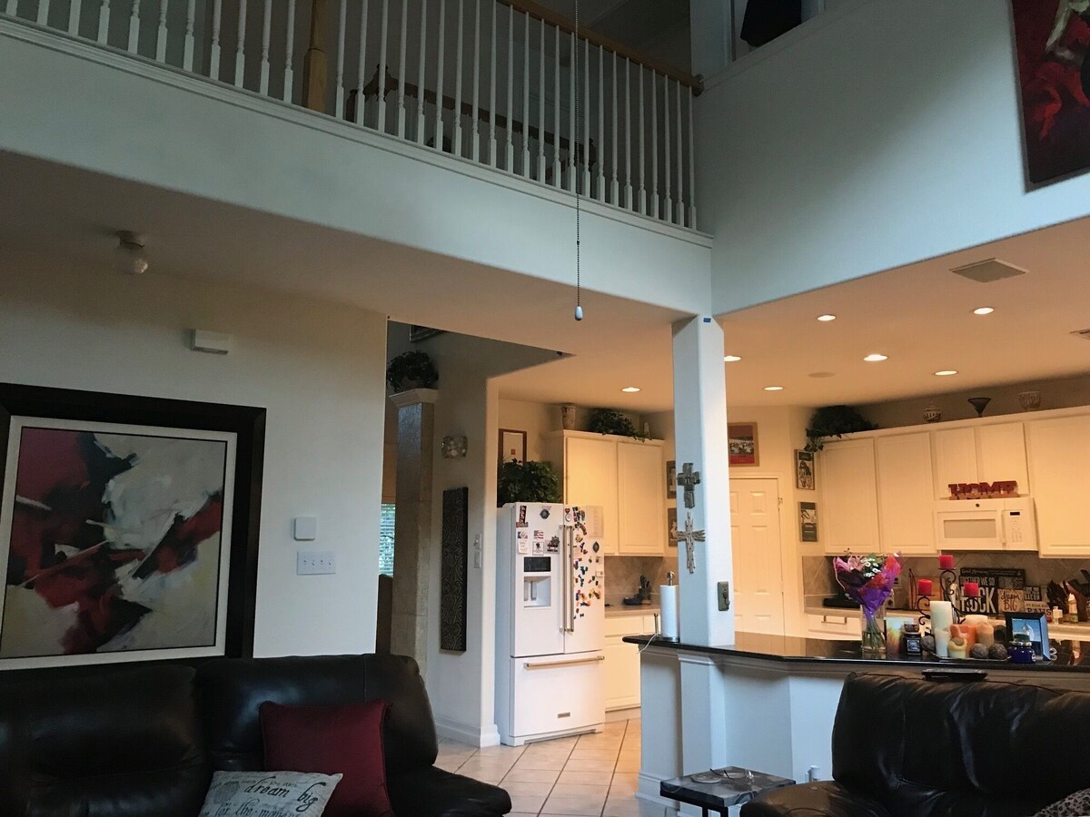 Great house for short-term, mid-term & long-term rental stays! Gated community, safe, centrally located, 10-15-minutes away from the airport, Six Flags, La Cantera Mall, and North Star Mall. 20-minutes away from downtown area and 30-minutes away from Sea World. Walking distance to Phil Hardberger jogging/dog Park. Quick access to downtown (airport 2 exits away) 410, 281, and 1604. Great shopping, groceries, & bakery, within 3 minutes. Zoo, Texas, Pearl Brewery, TopGolf, iFly, Palladium IMAX Theatre, La Cantera shopping and restaurants, The Rim, UTSA, Sea World, Downtown Riverwalk, the Alamo, Downtown, Alamodome, Henry B Gonzalez Convention Center, and Historic Market Square are all in easy access. Open-concept home in a quiet neighborhood with a private back yard that has a green belt behind it and HIGH fence lines for privacy. Many upgrades & designer details. Ceramic tile downstairs. 90% of appliances in kitchen are less than a year old. Kitchen center just recently updated. Brand new roof, brand new carpet upstairs, newly painted. Living room has electric reclining couch and side love seat. Large 80-in flat screen TV, surround sound, and cable. House has high speed wifi. Kitchen is fully equipped with cookware, silverware, microwave, Keurig coffee maker & regular coffee maker, dishwasher, refrigerator, liquor cooler, bar seating for 2 and high-top seating for 4, Water softener, air fryer, and more. Washer & Dryer located downstairs for guest usage. Built-in dog kennel located downstairs under the stairways. Pet friendly. Up to 2 SMALL dogs/pets. ($75 fee per pet. Pets are not allowed on furniture or upstairs) Queen bedroom is located downstairs and equipped with all bedding, dresser drawers, closet, iron and iron board, variety of pillows from soft to firm, and extra covers. It is right next to a full bathroom that is equipped with towels, soap, shampoo, and toilette. Upstairs master King bedroom is equipped with all bedding, dresser drawers, clothes hanging unit variety of pillows from soft to firm, and extra covers. It is adjoined to the master bathroom that has a walk-in shower and tub. It has 2 vanities which is perfect for couples. Larger vanity has extra essentials such as lotions, soaps, toothbrushes, blow dryer, and magnified mirror to put on make-up. Smaller vanity is equipped with extra curling irons, towels, and soap. There is an extra full bathroom down the hall that is available for usage that is equipped with extra towels, toilette, and more. Dining room sits up to six. *Pets are not allowed upstairs. Must pick up dog poop. Bags provided for you in backyard area. $75 Per pet fee.). Beautiful outside covered patio. Backyard is great for sitting out, entertainment, with outside seating, fireplace, 65 flat screen TV, grill, and bar. (Guest are responsible for propane for grill) Fully fenced for pets. The grill area has a mini refrigerator. The seating area has a propane heater and there is also another heater near the bar. (propane is the guest responsibility), fans. Inside mini bar area has complimentary liquor available. NO SMOKING ALLOWED IN OR AROUND HOME. Certain areas of house are locked off - Garage, master closet, pantry, and 2 offices. 2024 - new addition to house is water softener. FYI - San Antonio, Texas charges Rental taxes as they do a hotel, so as much as we would love to lower our rate, we are unable to do so due to this fact. DISCLOSURE - IF YOU, ANY ONE IN YOUR PARTY, ANYONE VISITING YOU DURING YOUR STAY IS A SMOKER - DO NOT BOOK. THIS IS A NON-SMOKING HOME. THE OWNER HAS EXTREME ASTHMA/ALLERGIES TO THE HINT OF SMOKE. AGAIN - DO NOT BOOK IF ANY OF THIS DISCLOSURE RELATES TO YOU. THE HOME IS EQUIPPED WITH SMOKING SENSORS THROUGHOUT THE HOME. WiFi - wittypoodle040 Our prices include all fees. No hidden fees.