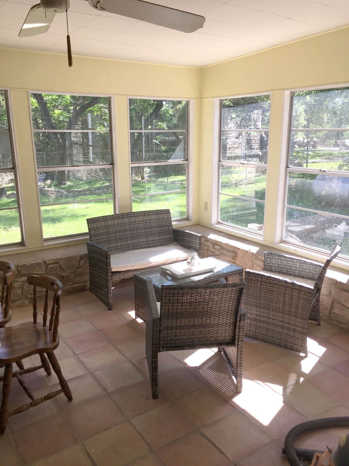 Enjoy a relaxing weekend or weeknight staycation at our newly renovated and farmhouse chic vacation rental. This two bedroom and one and a half bath house is located with easy access to two major highways (281 & 1604) and plenty of amenities including grocery stores, shopping, a movie theater, ice skating, miniature golf and more! In a quiet established neighborhood lined with large oak trees, you and your loved ones can relax and enjoy a nature walk in the neighborhood park, play a round of tennis or even shoot some hoops. There are scenic views which often include loving neighborhood deer grazing in the nearby lawns. From the 280 sq. ft. air conditioned screen porch, you can enjoy a morning cup of coffee and bird watch or relax with a glass of wine following a day out and about in the lovely San Antonio and surrounding hill country. The property is located 6.4 miles (10 minute drive) from the San Antonio International Airport, and 14 miles from downtown San Antonio (20 minute drive) which boasts many attractions such as the river walk, Alamo, Pearl district and nearby San Antonio Zoo, gardens and museums. To the west, you can visit Fiesta Texas (11 miles), La Cantera Shopping Mall, and Sea World (23 miles). We would love to have you stay at our piece of country charm in the city, and are happy to answer any questions you may have. As a military family, we offer discounts for military members and family members so please be sure to let us know when you set up your inquiry. San Antonio Short Term Rental Permit STR-19-13500061, Texas Hotel Occupancy Tax Registration HOT-000513. Our prices include all fees. No hidden fees.