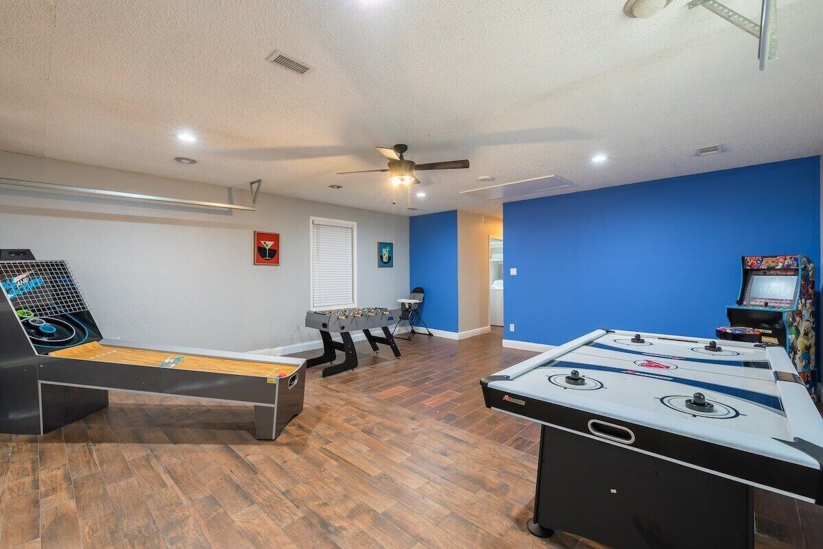 This Texas ranch style beautiful house is located in an upscale and peaceful neighborhood. It can fit 10 people including families with kids. It is fully furnished & equipped. It has an amazing private patio and a huge yard with a game area which includes a ping pong table, Foosball table, a private basketball court, Mini Golf and a BBQ grill. There is plenty of private parking and it is close to restaurants, bars, shopping, golf court and places of worship. This beautiful four bedroom 2100sqf house can fit 10 people and includes everything you need. Both the living room and the master suite include smart TVs which can be used with Netflix and all cables channels, Wifi, washer & dryer, wood burning fireplace and more. High Ceilings and skylights make this a bright and inviting space. This house includes a game room, an amazing private patio and a huge yard with a game area which includes a ping pong table, a foosball table, a private basketball court, Mini Golf and a BBQ grill. There is plenty of private parking. I can assure you will love this perfect vacation home! You are welcome to enjoy the house in its entirety from the kitchen to the yard and the private basketball court. There is also a private patio to sit and relax with BBQ you can freely use. You will have private parking for 2 cars plus plenty more off street. This home is located in the northern part of San Antonio. Quiet and peaceful. You have all the necessary amenities right next to you in a walking distance such as shopping, groceries, places of worship and all kind of restaurants. About 5 minutes drive to the famous Northstar shopping mall, parks and to the airport. 10 minutes drive to the Zoo, Botanical gardens and to the Medical center. 15 minutes drive to Six flags, Downtown & Riverwalk, Sea world and more. Perfectly located in the middle of everything! Close to Loop 1604 and HW 281. Car is recommended and you can use Metro bus. Ride sharing is popular in San Antonio and we have Lyft and Uber. Popular nearby attractions are a short drive away. • Check in is at 3pm. No keys are required. • Checkout is at 10am. No keys are required. - Early check in & Late check-out might be possible for an additional fee (Please ask for an approval first) I will be more then happy to assist with any issue. I live 10 minutes away and will gladly help with any need. While you are here, the house is yours to enjoy and interaction with me is up to you! You can use the keypad entry to access the home and I will send you the access code upon arrival. Once you have settled in, do not forget to check out my list of top recommended sites to enjoy while you are in the Alamo city. I want your stay to be as pleasant as possible so please don't hesitate to contact me via the app. Please note - House is 100% non-smoking. Highchair and Pack n Play are available upon request. - Any event requires full pre-approval and planning with the host directly prior to booking. While I aim to accommodate requests, unauthorized events will result in heavy fines & event will be immediately closed. If you would like to arrange a small gathering or an event, please reach out to me prior to booking so we can discuss options or additional requirements. Sound sensors which are used to detect the intensity of sound, are installed in this home to prevent unauthorized events. Please, no loud music after 22:00. Your cooperation is greatly appreciated. - We ARE pet friendly for up to two pets, but we need to know if you will be traveling with furry companions. We charge a $50 flat cleaning fee for the stay, to account for the additional time necessary to clean in these cases. - During your stay, I can connect you with recommended high-quality professionals who provide in-home treatments such as massages, facial treatments or private dining with a private chef. Feel free to ask me about it. Our prices include all fees. No hidden fees.