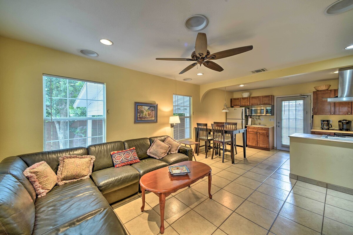 In between trips to the main attractions of San Antonio, spend time with family and friends at this 3-bedroom, 3-bath home! This updated vacation rental offers all the essentials like a fully equipped kitchen and spacious living room, plus an outdoor oasis that hosts a private pool and spa, plentiful seating, and a grill for a Texas-style barbecue. Brush up on local history at the Alamo and the San Antonio Missions National Historical Park before a fun-filled adventure to Six Flags Fiesta Texas! -- THE PROPERTY -- STR-19-13501320 | Off-Street Parking | 1,050 Sq Ft | Pet Friendly w/ Fee If you’re a multi-generational family or group of friends looking to enjoy the highlights of San Antonio, look no further than this updated home as your resting place with an outdoor oasis for you to enjoy! Bedroom 1: King Bed | Bedroom 2: Queen Bed | Bedroom 3: 2 Twin Beds OUTDOOR LIVING: Private pool, hot tub, hammock, lounge chairs, gas grill, outdoor seating KITCHEN: Fully equipped, Keurig coffee maker, 4-person dining table INDOOR LIVING: 2 flat-screen Smart TVs, ceiling fans, sectional sofa, tile flooring GENERAL: Free WiFi, central heating & A/C, linens/towels, complimentary toiletries, trash bags, paper towels FAQ: Unfenced pool & hot tub, pet fee (paid pre-trip, 2 pets max) PARKING: Carport (1 vehicle), driveway (3 vehicles) -- THE LOCATION -- DOWNTOWN ATTRACTIONS: San Antonio River Walk (5.1 miles), The Alamo (6.8 miles), La Villita Historic Arts Village (5.6 miles), Henry B. Gonzales Convention Center (6.6 miles), Tower of the Americas (6.0 miles), Alamodome (6.4 miles), AT&T Center (8.0 miles) FAMILY FUN: San Antonio Zoo (2.8 miles), Six Flags Fiesta Texas (12.6 miles), SeaWorld San Antonio (14.5 miles), San Antonio Missions National Historical Park (10.7 miles), Natural Bridge Caverns (29.0 miles) PARKS: Woodlawn Lake Park (3.0 miles), San Pedro Springs Park (2.2 miles), Elmendorf Lake Park (5.3 miles), Brackenridge Park (2.8 miles) UNIVERSITIES: St. Mary's University (4.7 miles), Trinity University (2.0 miles), Our Lady of the Lake University (5.1 miles), University of the Incarnate Word (3.3 miles) MUSEUMS: Briscoe Western Art Museum (3.7 miles), San Antonio Museum of Art (2.7 miles), UTSA Institute of Texan Cultures (4.4 miles) AIRPORT: San Antonio International Airport (6.4 miles) -- REST EASY WITH US -- Evolve makes it easy to find and book properties you'll never want to leave. You can relax knowing that our properties will always be ready for you and that we'll answer the phone 24/7. Even better, if anything is off about your stay, we'll make it right. You can count on our homes and our people to make you feel welcome — because we know what vacation means to you. -- POLICIES -- - No smoking - Pet friendly w/ $150 fee (+ fees & taxes, 2 pets max) - No events, parties, or large gatherings - Additional fees and taxes may apply - Photo ID may be required upon check-in ADDITIONAL INFORMATION - This property may not be suitable for young children due to the unfenced pool and hot tub area Our prices include all fees. No hidden fees.