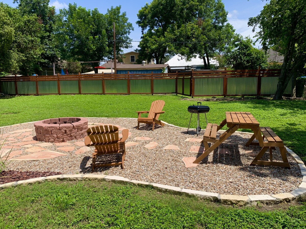 Newly renovated 1946 home 3br/2ba in the heart of the historic west side downtown. New appliances, walls & floors. Private parking in the alley & front. Front porch seating & backyard patio with firepit. Just 5 to 10 minutes from most major tourist attractions: downtown, Market Square, the Alamo, South Town, King William, the Pearl, River Walk, Quarry, Missions, Alamo Dome, San Antonio Zoo, museums and gardens. Convenient to Sea World, Six Flags, La Cantera, The Palladium and Lackland AFB. The space The property is at total of 11,500 sq ft with a rock and flagstone backyard patio and firepit for those cool SA nights. The 1260 sq ft home has a cozy yet open floor plan with a Mid-Century Modern feel perfect for up to 8 guests. Full kitchen with granite counter tops and all new appliances (refrigerator, oven, coffee machine and microwave). Living room has a 70\ ,