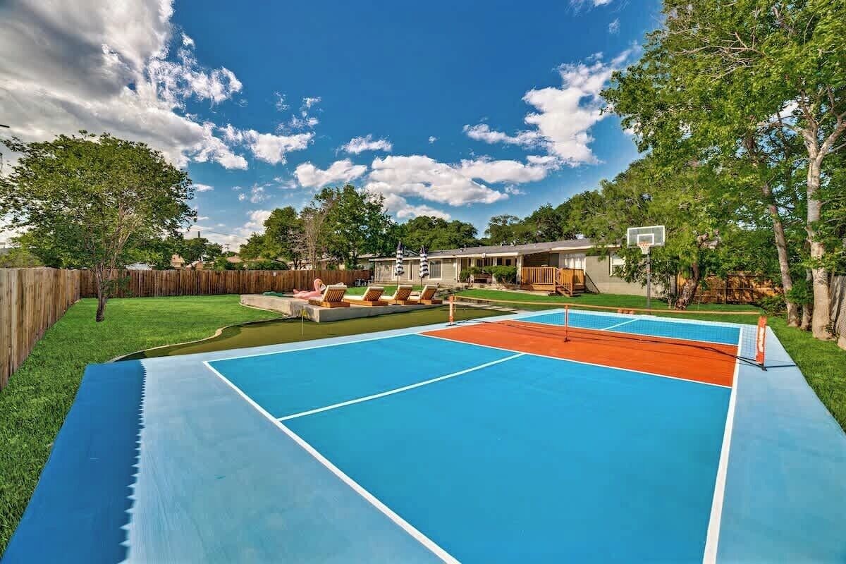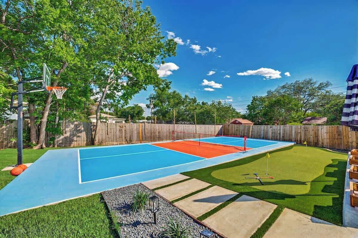 Summary: Message us for special Military Discounts!! Enjoy easy access to the best that San Antonio has to offer at this beautiful home packed with amazing amenities. Located a short drive from Downtown, you’ll be just minutes from main attractions yet tucked away in a quiet residential neighborhood. Enjoy a heated swimming pool, a fun game room, a putting green, a pickleball court, and more! San Antonio River Walk - 10 min drive Downtown - 11 min drive The Alamo - 10 min drive The Space: ☆☆ HIGHLIGHTS ☆☆ ✹ 6 comfortable bedrooms; 2 kings, 1 queen, 1 twin-over-full bunk bed + trundle ✹ 3 modern full bathrooms; essential toiletries provided ✹ Large kitchen w/ modern appliances ✹ Complimentary coffee + tea bar ✹ Game room: foosball, ping pong, Pacman + Xbox ✹ High-speed WiFi + dedicated workspace ✹ Colorful Texas mural - perfect for photo ops ✹ Washer + dryer ✹ Central A/C ✹ Huge backyard w/ BBQ, pickleball/basketball court, putting green + more ✹ Private pool + hot tub (heat fee additional $40/day) ✹ Furry companions are welcome! ($150/stay) ✹ Free parking for multiple vehicles - up to 3 in driveway and plenty of street parking ✹ Great location w/ easy access to downtown San Antonio + outdoor activities Eager to Read More? Here Are A Few Kind Words From Our Previous Guests: “This was our second stay at Andre’s. Such a great house and perfect for our large family to gather for our son’s basic training graduation. Excellent host, super responsive and friendly! Highly recommend!!” - Nichole “100% recommended! Excellent location, very comfortable and clean! We will definitely be back!!!!!” - Ivonne “The home was beautiful, exactly as described, and very clean! Andre was great at communicating and very fast to respond if any questions arose! Home was in a great location very close to everything. We even walked to the Tlahco Mexican Kitchen right around the corner which was so nice. Quiet neighborhood which was lovely. Really enjoyed the fire pit too. Enjoyed our stay and would certainly stay here again!” - Ashley ★★ BEDROOMS ★★ No matter which of the four bedrooms you stay in, you can look forward to a fantastic night’s sleep thanks to plush memory foam mattresses and high-quality linens. Even the sleeper sofa has a memory foam mattress! ✹Bedroom 1: King-sized bed, ensuite bathroom, flat-screen smart TV ✹Bedroom 2: King-sized bed, private bathroom, flat-screen smart TV, large walk-in closet w/ dedicated workspace ✹Bedroom 3: Twin-over-full bunk bed w/ a twin trundle ✹Bedroom 4: Queen-sized bed, flat-screen smart TV ✹Additional sleeping spaces: Queen-sized sleeper sofa ★★ BATHROOMS ★★ Each bedroom also has easy access to a bathroom, so everyone can take their time getting ready each morning and turning down each evening. All three bathrooms provide a sparkling clean and stylish environment for freshening up. Each bathroom is stocked with complimentary toiletries and fresh towels for your convenience. ✹Bathroom 1: Ensuite to Bedroom 1 with a brand new sink and walk-in shower ✹Bathroom 2: Ensuite to Bedroom 2 with a shower/tub combo ✹Bathroom 3: Full bathroom with a large walk-in shower ✔ Essential toiletries provided (including shampoo and body wash) ✔ Hair dryer w/ diffuser + hair straightener ✔ Fresh towels ✔ Laundry room ★★ KITCHEN & DINING ★★ The extra-large kitchen is equipped with everything you need to cook delicious meals for your entire group. Enjoy modern stainless steel appliances, spacious countertops, and a complimentary tea and coffee bar. There is even a blender, a rice cooker, serving platters, and plenty of spices for all your cooking needs. Be sure to snap some Insta-worthy photos at the dining table with the fun mural in the background. ✔ Fully stocked kitchen w/ modern appliances ✔ Complimentary coffee + tea bar (including decaf) ✔ Basic cookware & dinnerware ✔ Oversized dining table w/ seating for 8 + island seating for 5 ✔ Texas mural for family photos or selfies ★★ LIVING ROOM ★★ The living room sets the stage for cozy downtime with a plush sectional sofa, plenty of natural light, a reading nook facing the picture windows, and a fun selection of board games. There’s even an Xbox Series X for the gaming fans in your group. ✔ Roku-enabled 60” flat-screen 4K TV for streaming ✔ Xbox Series X + collection of board games ✔ Reading nook w/ views over the front yard ★★ GAME ROOM ★★ The fun continues in the game room, where the entire group can have a blast playing ping pong, foosball, darts, or vintage arcade games. ✔ Ping pong + foosball tables ✔ Darts + poker set ✔ Pacman, Galaga + 8 more vintage arcade games ★★ OUTDOOR SPACE ★★ The private backyard is a prime spot for fun in the sun. Take a dip in the pool, relax in the hot tub, or tell your favorite ghost stories around the gas fire pit. There’s also a putting green, a brand-new pickleball court, and a basketball hoop. What more could you want?! Fencing around the yard means a safe place for your dog to play as well. ✔ Private backyard w/ sun loungers, pool + hot tub (heating $40/day) ✔ Putting green w/ 2 holes and fringe to chip off of ✔ Brand new pickleball court + basketball hoop ✔ Back patio w/ grill, lounge space + fireplace ✔ Yard games ★★ ACTIVITIES/ATTRACTIONS ★★ When (or if) you feel like leaving home behind for a few hours, all of San Antonio’s best attractions are only minutes from your front door. Here are some of the best activities and attractions nearby. ✔ The Alamo: Immerse yourself in Texas history with a visit to The Alamo, the iconic mission and site of the famous 1836 battle, offering a deeply moving experience for all visitors. ✔ San Antonio River Walk: Explore the San Antonio River Walk, a vibrant urban sanctuary offering dining, shopping, and cultural events along the scenic riverbanks. ✔ Brackenridge Park: Enjoy the outdoors