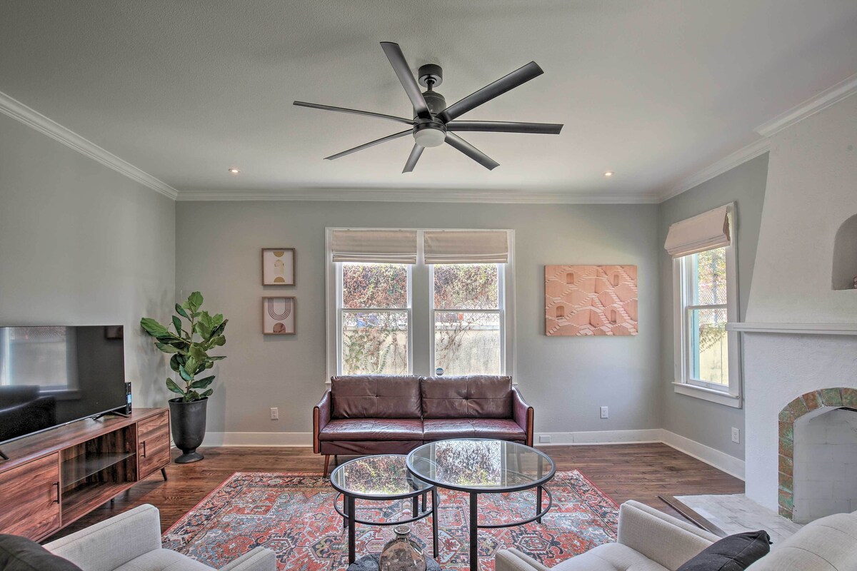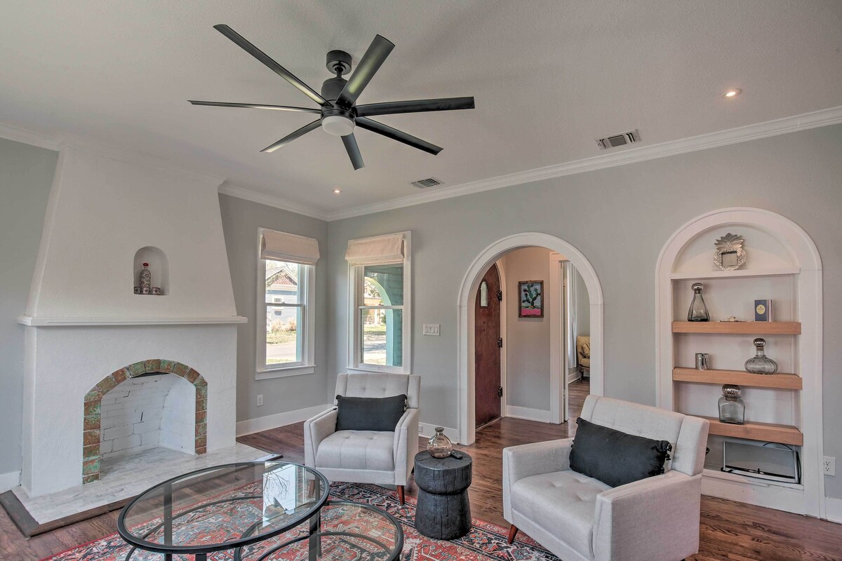 The best of San Antonio is at your fingertips when you stay at this updated 2-bedroom, 1-bathroom vacation rental. Start the day with a fresh-brewed coffee on the private deck before venturing out to explore the area’s top attractions. Stroll through St. Mary’s Strip or explore the River Walk for endless options for entertainment, then take an educational tour at one of the many historical sites nearby. After a day of fun, return to this cozy home to unwind and watch a movie on the Smart TV. -- THE PROPERTY -- San Antonio STR Permit: STR-22-13500260 | Pets Welcome w/ Fee | Covered Deck Whether you're traveling for work or pleasure, this renovated San Antonio home has everything you need, including a fully equipped kitchen, in-unit laundry, and a Smart TV. Bedroom 1: Queen Bed | Bedroom 2: Queen Bed MAIN FEATURES: Hardwood floors, yard, outdoor seating, Smart TV, ceiling fans, walk-in closets, ample lighting KITCHEN: Fully equipped w/ stainless steel appliances, dishwasher, refrigerator, stove/oven, microwave, coffee maker, dishware/flatware GENERAL: Free WiFi, laptop friendly, central A/C + heating, washer/dryer, linens/towels, complimentary toiletries, shampoo, trash bags/paper towels FAQ: Steps to enter, pet fee (paid pre-trip), interior motion detectors/sensors, accessible-height toilets, A/C limitations PARKING: Driveway (2 vehicles), additional street parking (first-come, first-serve) -- THE LOCATION -- THING TO SEE + DO: Japanese Tea Garden (1.2 miles), San Antonio Zoo (1.4 miles), Brackenridge Park (1.8 miles), Alamo Quarry Market (3.2 miles), Alamo Bowl @ Alamodome (3.7 miles), North Star Mall (4.7 miles), AT&T Center (5.7 miles), Lackland Airforce Base (13.9 miles), Six Flags Fiesta Texas (14.3 miles) HISTORICAL SITES + PLACES: The Buckhorn Saloon & Museum (2.1 miles), The Alamo (2.2 miles), San Fernando Cathedral (2.6 miles), La Villita Historic Arts Village (3.5 miles), Hemisfair (3.6 miles), Mission Concepción (6.2 miles), San Antonio Missions National Historical Park (11.0 miles) UNIVERSITIES + COLLEGES: San Antonio College (0.5 miles), St. Mary's University (4.5 miles), Our Lady of the Lake University (5.2 miles), Texas A&M University-San Antonio (13.9 miles), The University of Texas at San Antonio (14.3 miles), Northwest Vista College (19.1 miles) SAN ANTONIO RIVER WALK (~2.6 miles): The Esquire Tavern, Iron Cactus Restaurant and Margarita Bar, Rita's on the River, Ripley's Believe It or Not, Rio San Antonio Cruises, Briscoe Western Art Museum, Boudro's on the Riverwalk AIRPORT: San Antonio International Airport (7.0 miles) -- REST EASY WITH US -- Evolve makes it easy to find and book properties you'll never want to leave. You can relax knowing that our properties will always be ready for you and that we'll answer the phone 24/7. Even better, if anything is off about your stay, we'll make it right. You can count on our homes and our people to make you feel welcome — because we know what vacation means to you. -- POLICIES -- - No smoking allowed - Pet friendly w/ $50 fee (+ fees & taxes) - No events, parties, or large gatherings - Additional fees and taxes may apply - Photo ID may be required upon check-in - NOTE: The property requires stairs to access - NOTE: This property features a motion detector system and window sensors. These devices do not record sound or video, only motion - NOTE: Due to the historic building, the A/C is functional but typically cools the temperature to the high 70s during the day and the 60s at night. Fans and blackout shades are provided for comfort Our prices include all fees. No hidden fees.