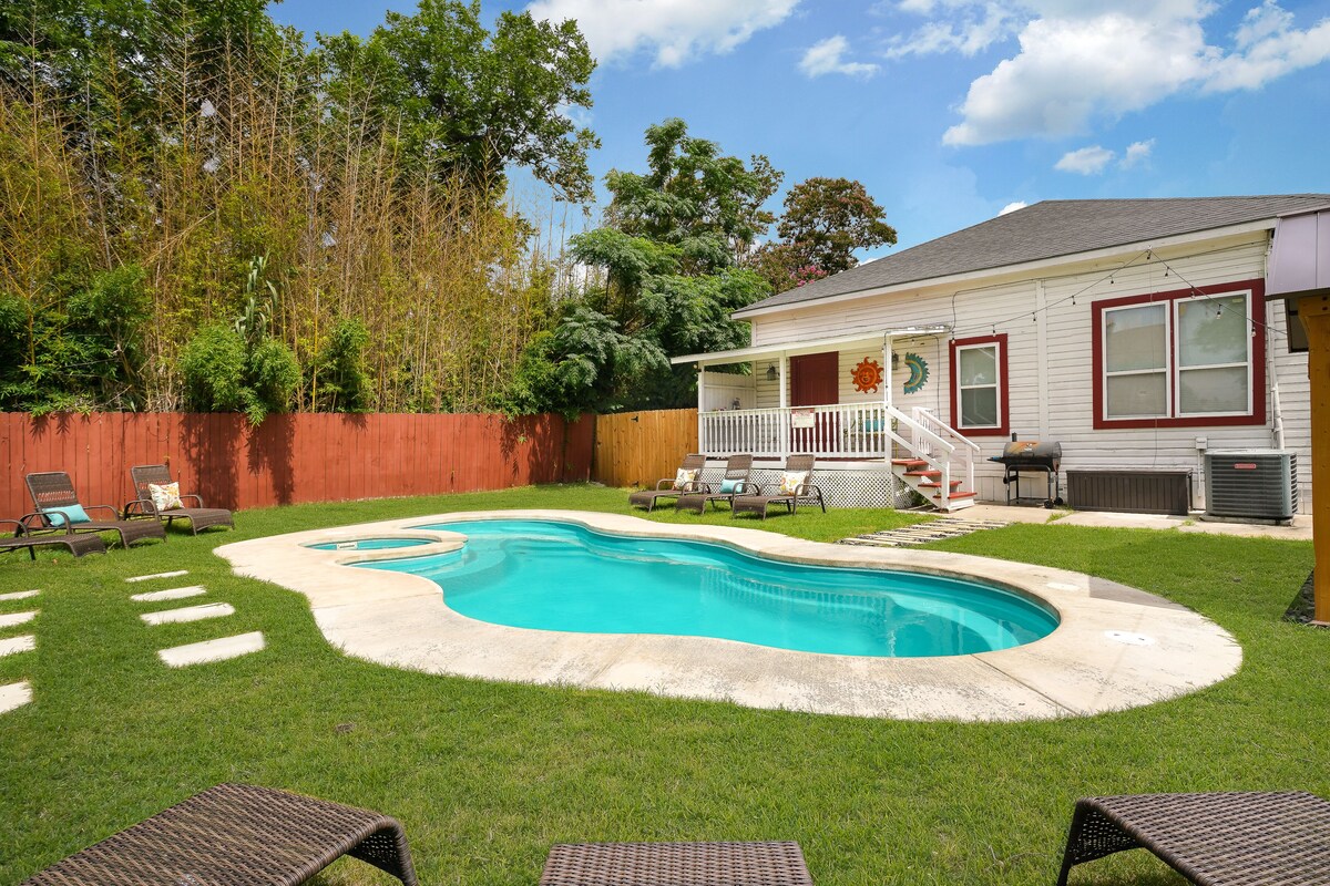 Welcome to our house in Tobin Hill Historic District with a private pool and hot tub. We love our home originally built in 1924 with tall ceilings and a huge wrap around porch. It sits in a vibrant community close to downtown, the Riverwalk, the Alamo, the Pearl Brewery, St. Mary's St. and the King William's District. Enjoy outdoor entertainment, shopping, cafes, restaurants and more. Easy access to major highways (I35, I10, HWY281 and I37) and minutes to the Alamodome, AT&T center and the airport Fiesta Texas and Sea World Our prices include all fees. No hidden fees.