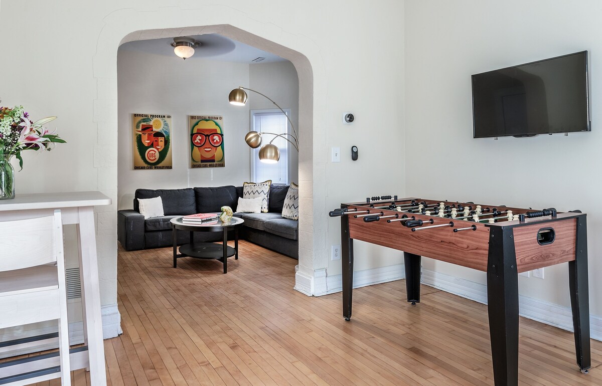 Everything about this residence is top of the line, first class and immaculately clean. This is a designer decorated three bedroom residence adjacent to Wrigley Field. Major League comfort and convenience awaits you at the closest lodging to Wrigley Field. We are conveniently located across from one of the entrances to Wrigley Field, within one of the iconic Wrigley Rooftop buildings. We rent only to responsible guests who want the best of Wrigleyville in a quality environment. Accordingly, we do ask our guests to provide a description of themselves and their party in terms of profession and backgrounds. MY PRICES ARE FIRM AND I DO NOT OFFER DISCOUNTS! This property features an incredible outdoor patio with 120 feet of frontage along Waveland Ave. No other residential property features such frontage along Wrigley Field's outfield. You may even see a fly balls enter the property's outdoor patio. The patio also features a high end Weber Genesis gas grill and a large picnic table. This is an amazing place to people watch and enjoy the festivities on cubs game days. The residence was completely renovated in 2018. This residence includes new designer linens and towels. Beds and mattresses are new as is all furniture, floor coverings and accessories. Kitchen is all new with high end appliances, perfect for private dining or entertaining. Bedroom Bed Configuration - Bedroom 1 has a king bed - Bedroom 2 has a queen bed - Bedroom 3 has a twin over double bunk - There is an additional twin folding bed in this residence. The neighborhood This residence offers an experience second to none. You will be able to immerse yourself in the surrounding Wrigleyville festivities while relaxing comfortably in your fully furnished private apartment. Step out of the residence and you're privy to all that Wrigleyville has to offer: theater, fine dining, shopping and the world famous Wrigley Field is next door. It's a Wrigleyville dream, right at your doorstep. * Dine at one of the countless surrounding restaurants located in the Lakeview/Wrigleyville neighborhoods * Indulge in first-class shopping downtown at The Magnificent Mile on Michigan Avenue, or at the nearby boutiques of the Southport Corridor. * Visit the Lincoln Park Zoo which is not only nearby and open 365 days a year, but it is FREE to a * Visit one of the many Chicago beaches located along Lake Michigan where you can ride bikes along Lake Shore drive, kayak, play volleyball, etc. * Rent bikes from the nearby Divvy Bikes location and explore all that Chicago has to offer on your own. This location has a Walk Score of 98 out of 100 and is a walker’s paradise. Daily errands do not require a car. Transportation is a breeze with the \ Train Red Line stop just around the corner, plenty of available pay parking lots, and a limitless amount of taxis just outside your door. Uber is also excellent. Housekeeping Only the exit cleaning is included in the price of your booking. If you would like additional cleanings during your stay, there is an additional $150 charge per cleaning. The cleaners change all the linens on each cleaning visit. Please let us know at least 24 hours in advance to schedule additional cleanings. Parking We do not have parking. Spothero is great site to check for parking spaces. House Rules: 1. Only the registered guests in your booking shall be permitted in the residence at anytime. We do not permit additional day time or night time visitors. If you plan on having visitors, they need to be included in the number of guests you indicate at the time you make your booking. For example, if you have 4 guest staying overnight, but will have 2 day visitors, you must book for 6 guests. 2. You will need you to sign our Property Use Agreement within the next 24 hours of booking or your booking is subject to cancellation. The docusign link will be sent to you through VRBO after you book. Our prices include all fees. No hidden fees.