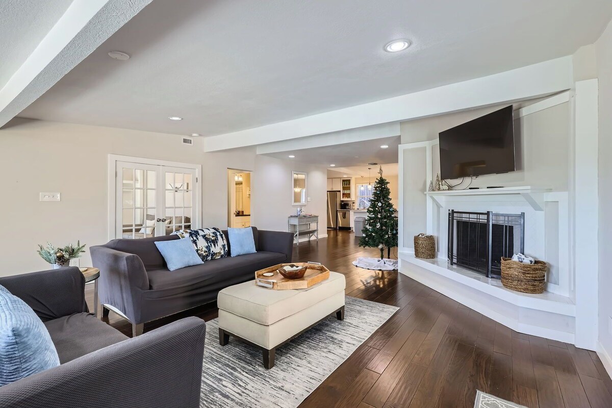 Enjoy modern luxury blended with convenience at this beautiful 4-bedroom home with an office and a game room. There’s plenty of space for large families or business travelers to spread out. Lounge in the massive outdoor area, take a dip in the private pool or get competitive in the game room with ping pong and more. You’re just a short drive to the airport, The Pearl, Quarry Market, and top San Antonio attractions. 7 Min Drive to San Antonio Zoo 9 Min Drive to The Alamo 10 Min Drive to Downtown The space KEY FEATURES: ☀ 4 spacious bedrooms + office w/ a sofa bed; 2 kings, 1 queen, 1 twin-over-queen bunk, 1 twin trundle ☀ 3 full bathrooms; 1 spacious primary ensuite bathroom w/ walk-in shower, 1 large walk-in shower room + 1 bathroom with bathtub/shower combo ☀ Open-concept living room, kitchen + dining area ☀ Fully-stocked kitchen w/ stainless steel appliances ☀ Cozy lounge w/ indoor fireplace ☀ Exciting game room, complete with ping pong, foosball + poker table ☀ Dedicated workspace w/ a large desk + ergonomic office chair ☀ High-speed wifi for all your streaming + work needs ☀ 5 large Roku-equipped flat-screen smart TVs ☀ Fully-fenced backyard for privacy + safety ☀ Charcoal BBQ grill + outdoor dining area, fully sheltered from the elements ☀ Private, outdoor pool w/ beautiful city skyline views ☀ Free washer + dryer ☀ Family-friendly; travel cot + high chair available on request, plenty of children’s books + toys (suitable for children up to age 10), window guards + plug socket covers ☀ Air conditioning, ceiling fans + heating enable you to control your home environment ☀ 3000 square-foot single-story home on a corner lot ☀ Located directly across from Hole 17 of the Olmos Basin Golf Course, perfect for golf lovers ☀ Free parking on the driveway for up to 5 cars ☀ Additional free street parking nearby Here Are A Few Kind Words From Our Past Guests: “The location of this property was perfect. Very close to downtown and the shopping district of the Quarry Market Place. It was very spacious and allowed each room to have a good deal of privacy. The back yard had a lovely pool and plenty of seating areas. Our kids enjoyed playing ping pong and foosball . The host was very pleasant and quick to respond. This property will require another visit in the future.” –Theresa “Can't say enough good things about this property. It's spacious, quiet, and in a prime location. Pictures don't do it justice and the hospitality was incredible. Highly recommend to anyone coming to San Antonio” –Kyle “Lee’s home was very beautiful and we felt right at home. He was quick to respond to my messages. I would definitely recommend this place to anyone” –Sherrie ☆☆ BEDROOMS + BATHROOMS ☆☆ After a busy day exploring the beautiful sights of San Antonio, there’s no better place to unwind than from the comfort of one of our designer bedrooms. All of the bedrooms offer generously-sized storage closets, so feel free to bring everything you need from home for a memorable vacation! Decorated to perfection to ensure you get a great night’s rest, you’ll find soft carpeting, room-darkening shades, and high-quality bed linens for your comfort. The primary bedroom is a large, family-sized room with private access to the lovely patio through French doors. This large bedroom is furnished with a comfortable king-sized bed and a twin-sized pull-out couch. It’s the perfect bedroom for families with little ones in tow. A 50” HDTV means you can enjoy your favorite TV shows from the privacy of your bedroom. You’ll also enjoy a full ensuite bathroom with a spacious walk-in shower and a dual vanity. The second bedroom also offers a king-sized bed and a flat-screen TV, so you’ll find it just as comfortable as the primary bedroom. The location of this bedroom benefits from plenty of privacy from the rest of the house. The third bedroom has been designed with kids in mind, but it’s just as comfortable for adults! A twin-over-queen bunk bed provides plenty of sleeping space, and you’ll also find a twin pull-out trundle for extra flexibility in your sleeping arrangements. Kids will find plenty of vacation entertainment from our selection of children’s books, games, and toys! The fourth bedroom offers a comfortable queen-sized bed and direct access to the front patio. This room also benefits from a private ensuite bathroom with lovely marble floors and a walk-in shower. The office can serve as a fifth bedroom and contains a sofa bed with plenty of storage space and some extra room when you need it. The third full bathroom offers a shower and bathtub combination so you can choose between a luxurious soak or a refreshing shower. All three bathrooms are stocked with fresh towels and shower gel, shampoo, and conditioner for your convenience. ☆☆ KITCHEN & LOUNGE ☆☆ This spacious 3,000-square-foot home benefits from a gorgeous open living space, which makes it ideal for large groups to naturally flow through. Enjoy the beautiful natural light, ample seating areas, and pure comfort that oozes from every corner of the space. The lovely full kitchen is stocked with everything you need to whip up your favorite meals or to serve a convenient takeout, including stainless steel appliances, utensils, cookware, and dishes. You’ll (almost) find it just as exciting to explore the kitchen as the rest of San Antonio! Caffeine lovers will appreciate the Keurig coffee maker and fully-stocked coffee bar. When you’re ready to eat, take a seat at the cozy dining table for 6, or enjoy a casual bite at the elevated kitchen island. You’ll even find a bistro-style seating area for two, which is the perfect spot for a morning coffee and pastry. The open living room is inviting and warm. A large sectional sofa faces a 55” HDTV and traditional stone fireplace. It’s the coziest spot on the entire property. Host a family movie night or create a board game tournament! 