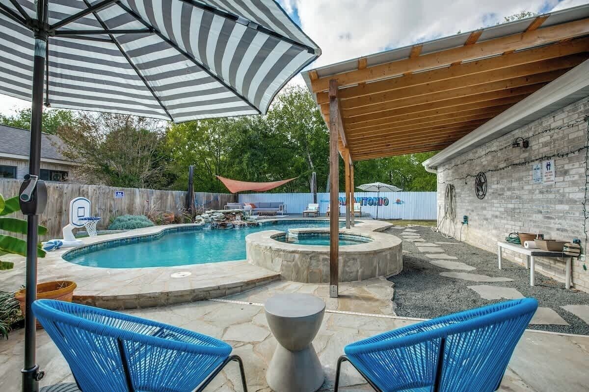 Summary: 🎉 Family & Group Fun — 15 Min to Downtown, 20 to Six Flags! 🏡 Your perfect San Antonio base! Packed with entertainment & comfort for families, friends & groups. 🕹️ Epic Game Room 5 big-screen TVs, theater seating 5 arcade machines, Xbox Game Pass YouTube TV, NFL RedZone, NBA League Pass 💦 Outdoor Oasis Hot tub (free) + heated pool ($40/day) Pool table, ping pong, foosball Grill & San Antonio mural 🍽️ Fully stocked kitchen | ⚡ Fast WiFi The Space: 🎮 5BR San Antonio Escape w/ Pool, Hot Tub & Epic Game Room Welcome to your ultimate group getaway in San Antonio! This expansive 5-bedroom, 3.5-bath home spans over 3,000 sq. ft. and offers the perfect balance of luxury, fun, and family-friendly comfort. With a resort-style backyard, massive game room, and high-speed Wi-Fi, your crew won’t want to leave. 🛏️ Bedrooms & Bathrooms 5 spacious bedrooms with memory foam mattresses: Primary: King bed + LED accent lighting 2 main-level queen bedrooms with shared bath Upstairs: 1 room with 2 queen beds, 1 room with twin & twin-over-full bunk 3.5 bathrooms including a newly remodeled shower and stocked with shampoo, conditioner & body wash 🌟 Entertainment Highlights Private pool with basketball hoop & floaties Heated hot tub, deck with 3 lounge beds + outdoor sectional Garage-converted game room + separate pool table room Ping pong, foosball, darts, basketball arcade, and poker set 5 arcade machines + Xbox Game Pass 6 large 4K Roku TVs, including 65” in living room YouTube TV, NFL RedZone, NBA League Pass 🍽️ Chef-Ready Kitchen Fully equipped kitchen with brand new oven Includes: blender, waffle maker, rice cooker, spices, and baking essentials 🧑💻 Fast Wi-Fi + Remote Work Friendly 500 Mbps mesh Wi-Fi for seamless streaming and work Comfortable workspaces for digital nomads or business trips ☕ Coffee & Convenience Coffee & tea bar with regular/decaf, tea bags, cream & sugar Long driveway with room for multiple cars + RV parking Guest Access: When you rent out this property, you will have access to the entire property. This is one single private home. You and your group will have complete privacy and access to the home - except for two maintenance closets! The Neighborhood: Located in San Antonio's lovely Castle Hills. You can expect to be within driving distance of everything you need while enjoying the peace a quiet of a mature neighborhood. Walmart superstore is located only .5 mile away! Less than 20 minutes to both downtown and Six Flags! Only 25 minutes to Sea World Getting Around: We recommend a car for transportation. There is plenty of parking in the driveway, there is even room for an RV! Other Things to Note: - No parties! If a party is thrown, the police will be called and a fine will be assessed. - Please drink responsibly. All drinking should occur inside the home in a safe manner. - Out of respect for our neighbors, please limit noise after 10pm -The maximum number of guests is 14. - The person that books the property is responsible for any damages that occur during your stay, accidental or not. - While no one is on premises so that you have entire private access to the property, I am available by phone if you should have any questions or run into any issues. - If there is something our Airbnb doesn't have that you think would be a great addition, don't hesitate to ask! We are always looking for ways to improve our 5-star stay! Interaction with Guests: Please don't hesitate to contact me if you have any issues! Our prices include all fees. No hidden fees.