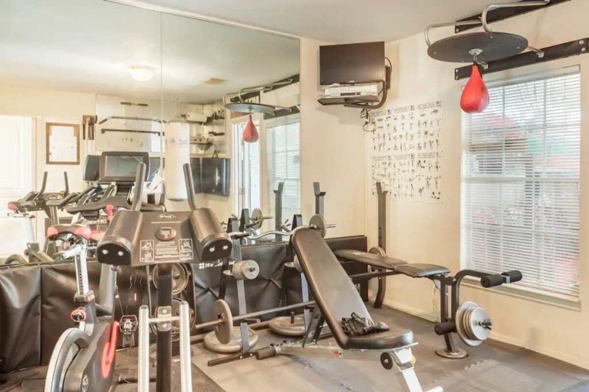 Enjoy a resort type visit when you stay in this unique place. Heatable swimming pool, hot tub, pool table, ping pong, exercise pole, karaoke, Workout Room, Massage Room, Music Room, private back yard. Never far from one of 15 TVs. In addition to 2 dedicated bedrooms, conversions to Music Room and Massage Room contain comfortable queen and twin futons, respectively. Large Sun Room, overlooking pool, contains a queen futon bunk bed, with a basketball goal and a Polar Express theme. Molly the cat will let herself in and out and will be your friend. No up front charge for cleaning or pet fee, although the entire house is professionally cleaned before each stay. Quiet neighborhood. No partiers please. The space 5 bedroom house in a quiet neighborhood. Centrally located to everything San Antonio has to offer. Ten minutes from the airport. 17 miles from each downtown and Fiesta Texas. Three of the 5 bedrooms have been converted into: a Workout Room, a Music Room and a Massage Room. But two of these three rooms have comfortable futons. Additionally there is a queen bunkbed with a basketball goal and a Polar Express theme in the large Sun Room, with external stairway to access the pool. Guest access Located on a cul de sac. Driveway parking for up to 4 cars. Short term street parking Other things to note Almost everyone who stays here says two things in the Guestbook or in the Reviews. That they wish they had stayed longer to enjoy the many amenities. And they say this place is like no other place they've stayed. This is still my primary home. I recently bought a small ranch two hours away. My only son has moved out. I enjoy giving people the opportunity to enjoy this fun place I've created, while I'm at the Ranch, just as my son and his friends have. This place is all ours, with the exception of one member of my family being here, Molly the Cat. Everyone loves her. I treat this listing as if I've asked a friend to stay at my house while I'm away. You are welcome to anything you see in unlocked cupboards, drawers and refrigerators. I only ask that you take no more than you need while you're here. Travel sized toiletries, other necessities, snacks, drinks--non-alcoholic except for an occasional bottle of beer or wine left by a previous guest. I take pride in guests telling me that they never had to run out to the store for things they forgot to bring. There are two computers and a wireless printer available for guest use. You are welcome to use my guitars and electric piano, any of several stereos and entertainment systems. Bring your own video game systems, because I've made it easy for you to hook them up, in any of 3 different locations, to an amazing sound system and large screen TV's. In the past few months, I've invested a lot in the property to help ensure my guests don't encounter anything breaking down. I've replaced both of the Heating/AC units. I've replaced the hot water heater and water softener. I've completely redone the pool. It has a new surface. All of the pool equipment is new, now much easier for you to work the hot tub. And I can control most pool operations remotely, if you want me to. In cooler weather, I will ensure that the pool is at 85 degrees, at no additional charge, for stays of two nights or more. One more thing. Most guests say they are amazed by my collection of memorabilia. You will feel like you have gotten to know me. I hope you enjoy looking at them. Thanks for considering booking my place. License number STR-22-13400744 Our prices include all fees. No hidden fees.
