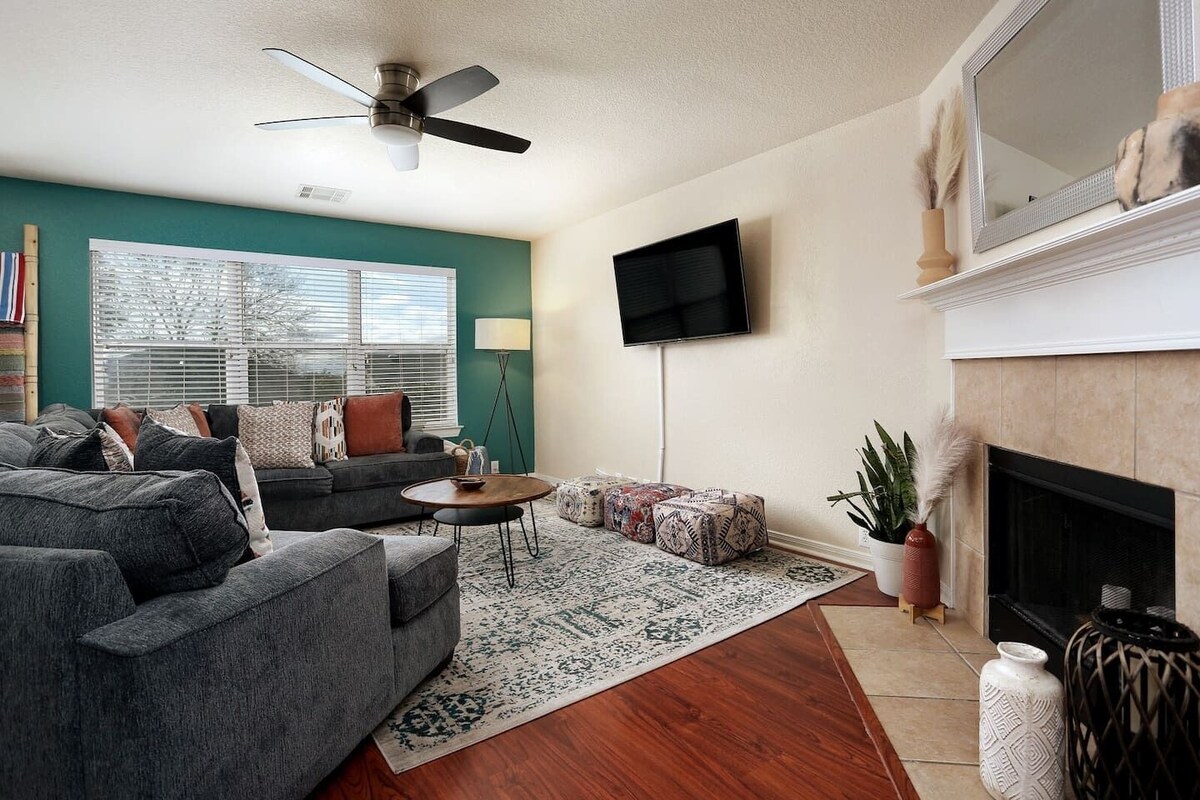 Welcome to your elegant San Antonio Oasis! Beautiful inside and out, this inviting luxury villa is the perfect retreat for your next family or group getaway. The spacious home boasts multiple gathering spaces and 4 large bedrooms with 6 beds, so there’s plenty of room for everyone! Step outside to the incredible backyard paradise for a refreshing dip in the pool. We’re ideally located near Six Flags, SeaWorld, and the River Walk, and we can’t wait to host you!! Peacefully nestled in a quiet, family-friendly neighborhood just outside San Antonio, this villa offers a private escape away from it all while also enjoying close proximity to all the best area attractions! Every inch of the home is bursting with character and luxury. Gather in the living room for a movie night, stay up late over board games in the lounge, then sleep soundly in one of the seven comfortable beds. The villa offers a variety of indoor and outdoor gathering spaces, plus a dedicated private workspace, perfect for teleworking. You’re sure to make unforgettable family memories within these walls and outside in the private, fully-fenced-in backyard oasis! Make it a cookout, and grill burgers under the stars as you lounge poolside while the kids splash away in the huge pool. We can’t wait to welcome you to your new favorite home-away-from-home and then send you off refreshed for whatever adventure lies ahead! Enjoy access to the entire private home, including the two-car garage and the spacious backyard and pool. Plenty of garage and driveway parking is available to easily accommodate your vehicles. Peacefully nestled in the desirable Red Robin neighborhood, our safe, walkable community is full of beautiful homes, well-kept sidewalks, and the friendliest neighbors! We’re located just minutes from Six Flags Fiesta, affectionately known as the Thrill Capital of South Texas. We’re also only fifteen minutes from SeaWorld, home to Shamu and an array of awe-inspiring ocean animals. Experience the world-class golf course at La Cantera Resort, just three miles away, then venture downtown to take in the nightlife at the famous San Antonio River Walk, only twenty minutes away. There is no better home base from which to enjoy all the sights, sounds, and exciting attractions of beautiful San Antonio, Texas! Hide We’re conveniently located near all the major thoroughfares, so you can quickly get to all the major area attractions and Downtown San Antonio within about twenty minutes or less. We offer plenty of garage and driveway space to accommodate up to six vehicles. If you’re not traveling with your car, Uber and Lyft are widely available, among a host of other local taxi and ride-share services. Limited Public Transportation Weather permitting, the pool is cleaned every Monday and Thursday (if the weather does not allow, it will be cleaned the next day). Additional pool cleanings are available upon request with at least 24 hours notice for an additional $50. Please note that the pool is not heated. We are also happy to offer a host of additional amenities upon request with at least three days advance notice before your arrival. Please get in touch with us regarding rental pricing and availability: -High Chair -Baby Bathtub -Baby Monitor -Changing Table -Children’s Books & Toys *Children’s Dinnerware *Porta-crib *Stair Safety Gates *We entertain pets for a small fee and a refundable pet incidental. Feel free to send us a message for more information. Note: Small dogs allowed under 50 pounds and maximum of 2 dogs. There will be an additional fee of $50 per day. Please note there is a City Ordinance of quiet hours between 10 pm and 7 am. Please make sure you respect this ordinance in this quiet neighborhood. A minute noise device is located in the central living area to monitor the noise level. Please note that this does not record any sounds and simply helps us ensure we are maintaining a respectful noise level for our surrounding neighbors. Also there is street parking on one side of the street. Please do not park on the side with NO PARKING SIGNS. Your vehicle could be towed. Our prices include all fees. No hidden fees.
