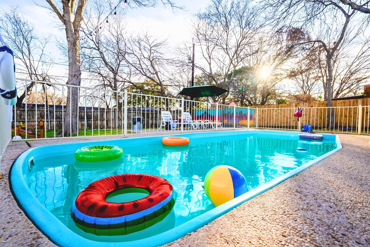 This stunning home offers complete privacy in a peaceful neighborhood, just minutes away from the airport, Northstar Mall, The Pearl, Downtown, and an array of attractions, including restaurants, family-friendly activities, vibrant nightlife, bowling alleys, golf courses, Top Golf, and more. The house features a fully fenced private pool with optional heating, perfect for relaxing or playing with loved ones, along with a game area that includes an air hockey table and a children’s play area to keep everyone entertained. For movie or sports enthusiasts, our cozy media room boasts an impressive 85” screen for an immersive viewing experience. Step outside to enjoy a spacious covered patio with comfortable seating and a BBQ grill, ideal for outdoor meals or simply unwinding. The large backyard, shaded by mature trees, offers a serene space for fun and relaxation. Convenient parking is available with a driveway right at the front. Whether you're planning a family getaway, a fun retreat with friends, or simply a quiet escape, this home is designed to provide a memorable stay for all. *Private Heated Pool, we can heat the pool for $59/per night *BBQ Grill (propane and charcoal) *Outdoor lounging area *Outdoor dining *Fire pit (wood) *Outdoor games *Putting Green *Gameroom/Movie Theater The Space This recently updated home, located in the well established neighborhood of Harmony Hills, is the perfect spot for a memorable visit to the Alamo City. The open-concept living spaces are designed for entertainment, allowing you to relax and create lasting memories with your loved ones. Unwind in the media room after a day full of activities or watch your favorite shows while the chef of the group whips up something delicious in the fully equipped kitchen. After exploring the city, recharge in one of the plush beds, or enjoy a day of fun without leaving the property. Relax under the Texas sun in the beautiful backyard, featuring mature trees, a fire pit, putting green, corn hole, and a fully fenced pool. This home will provide a perfect retreat you’ll never want to leave. Living Room Immerse yourself in comfort with a smart TV for streaming, ample seating for your guests, and an air hockey table to challenge your family into a good match. This grand room is open to the kitchen and dining, and has a small kids table with chairs, ideal to keep them entertained. -Two stylish accent chairs -Smart TV -Comfortable three seater sofa -Small kids table and chairs -Children books -Find the pool towels by the sliding door Media Room/Gameroom ~PlayStation with two controllers and games~ -Air hockey table -Queen pull out sectional -Table games -85” TV -Surround sound bar -Mini Fridge -Microwave -Keurig -Bar tables and stools Workspace In the double bedroom, you’ll find a dedicated workspace with a desk, chair, and convenient outlets. There are also other cozy areas around the house to set up your laptop. ~~Fast speed internet~~ Kitchen & Dining The open-plan kitchen and dining area allow you to prepare meals while enjoying views of the backyard oasis. The kitchen has a contemporary design with granite countertops, a coffee bar, and underneath cabinet lighting, creating a warm and inviting space. The dining area seats eight people, with additional seating at the nearby island. -Electric stove/oven -Toaster -Blender -Keurig & drip coffee maker -Refrigerator/freezer -Cookware, dinnerware, and utensils Sleeping Arrangements Four bedrooms and a pull-out sofa in the media room ensure everyone has a comfortable place to rest. -Bedroom 1 downstairs: King bed, luggage rack, one nightstand, charging station, and smart TV, find additional convenience items in the walk in closet, like a white noise machine, a pack n play, free standing fan, and a space heater. -Bedroom 2 downstairs: Double bed, one nightstand, charging station, and smart TV -Bedroom 3 upstairs: Queen bed, 1 single, 1 single roll out foldable bed, luggage rack, two nightstands, charging station, and smart TV, a moon chair seating by the window. -Bedroom 4 upstairs: 2 Double beds, a chaise, nightstand, charging station, seating by the window, armoir, smart TV, luggage racks, desk area. -Living room upstairs: Queen pull-out sectional. Each bedroom is equipped with: -Premium pillows, linens, and sheets (pillow protectors) -Closets or storage spaces. -Nightstands with lamps and charging stations -Smart TVs -Hotel grade mattresses with mattress protectors -Luggage racks Bathrooms Fresh towels are provided, along with initial supplies of toiletries. -Bathroom 1 downstairs: Walk-in shower -Bathroom 2 upstairs: Shower/tub combo and vanity with seating -Bathroom 3 exterior bathroom: walk in shower -Vanity, mirrors, and toiletries -Hairdryer Backyard A true oasis, the backyard is perfect for all ages, featuring a swimming pool, outdoor dining, a fire pit, and a spacious yard for kids and adult to enjoy. -Fully fenced private pool -Outdoor dining and lounge area -Fire pit with seating -Murals by a local artist -BBQ grill Guest Access Guests will have access to the entire home, with parking available in the driveway or on the street. High-speed internet, self check-in with a smart lock, air conditioning/heating, washer/dryer, and an iron/board are all provided. House Rules: While 99.9% of our guests are wonderful and courteous, we do have a few rules to ensure that everyone has the best experience possible. By booking you are agreeing to the following house rules: *Please be sure to read our listing details. *Issues or Concerns If you have any issues during your stay, please inform us immediately so we can resolve it and continue providing a five-star experience. No refunds will be given after the fact if we are not given the chance to make it right. Requests made in the evening will be addressed the following morning. *No glass permitted outside, please know that we have artificial turf and it could be possible that our guests and children run barefoot in the back