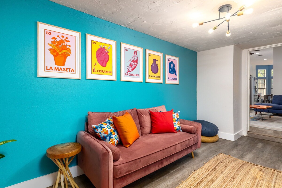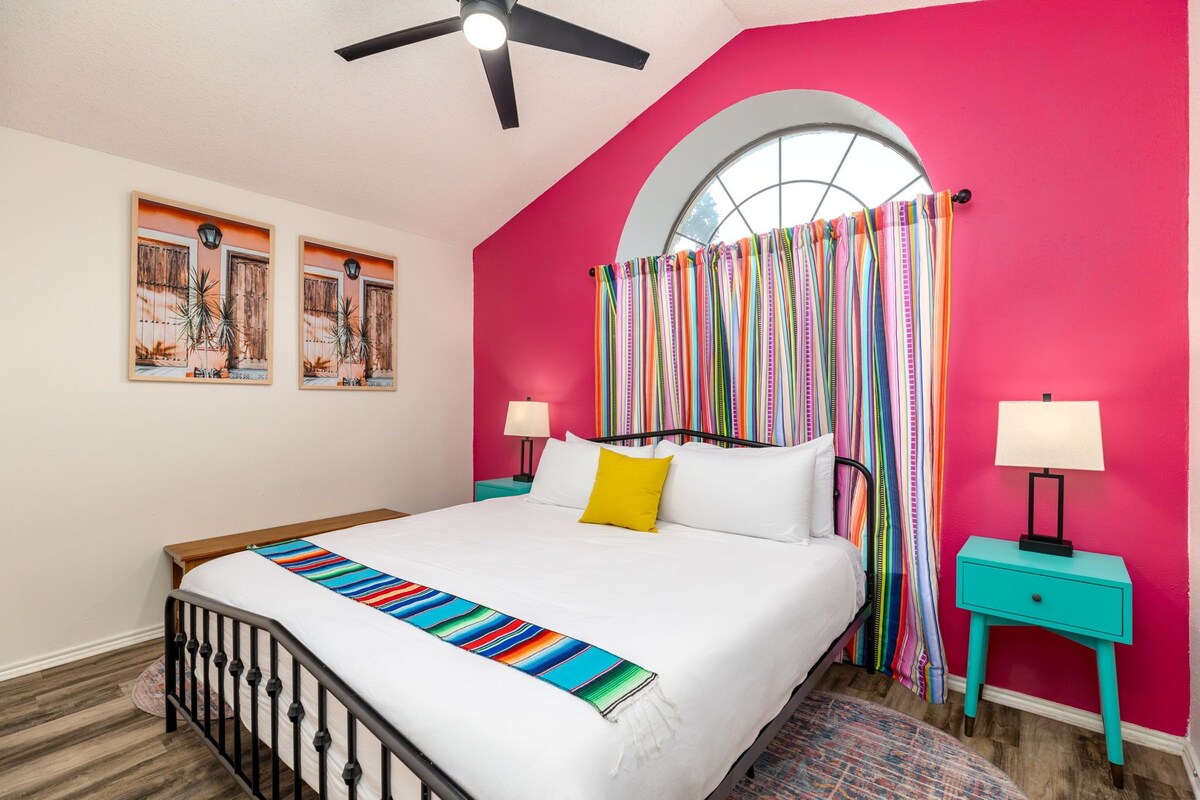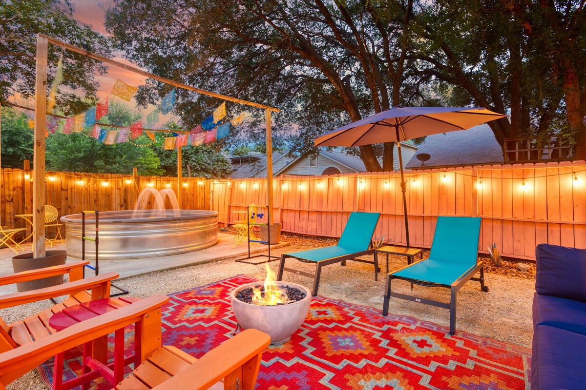 Cowboy Pool newly installed! You will feel right at home at our Fiesta themed, family friendly property that has been thoughtfully designed for your comfort and relaxation - Pet Friendly - Master suite with king bed and private bathroom on 1st floor - Remodeled kitchen with all the cooking essentials, perfect for family meals - Vibrant outdoor gathering space with gas grill, comfortable seating - Near SeaWorld, Six Flags, and Lackland AFB - TVs in all bedrooms La Villita is a 4-bedroom property with 6 beds that accommodates up to 10 guests. It’s the perfect home base for your family vacation. We love hosting families with pets! If you are interested in bringing your fur baby along please note that we allow up to two pets on a case-by-case basis. Requires host approval before booking. $40 per pet, per night. Living Spaces The high ceilings and bright decor of the living room welcome you to your next vacation. Curl up on the chic oversized sofa and watch a family favorite film on the wall-mounted 65-inch Smart TV while a fire effect crackles in the modern fireplace. This space is decorated in bright colors and adorned with carefully selected decor pieces in honor of Fiesta, San Antonio’s annual Tex-Mex celebration. For maximum group comfort, the bright sunroom is comfortably furnished for both relaxation and work, so kids can play while grown-ups spend time in the living room, get some work done at the dedicated work desk, or just enjoy a cup of coffee in peace. AMENITIES -65-inch Smart TV -Elegant decor -Dog crate, beds, toys, bowls, and more -Pack ‘n Play -Fast Wi-Fi (553 Mbps) -Board games and card games -Exercise resistance bands Kitchen & Dining The top-of-the-line kitchen has been remodeled for the gourmet chef in your group, and is ready for you to whip up all of your family favorites. The convenient coffee bar helps get mornings kicked off right, while the elegant-yet-rustic dining suite tucked into its own beautiful bay window is the perfect setting for memories made over a family meal. AMENITIES -New stainless-steel fridge, oven, microwave, dishwasher -Coffee bar with complimentary K-cups and drip coffee machine -Spices -Pots and pans -Small appliances (blender, rice cooker,toaster) -Cooking utensils -Dishes and cutlery -Cutting boards -Mixing bowls -Children’s dishes and cutlery -Booster seat Bedrooms & Baths La Villita is home to four comfortable bedrooms, all with TVs. The primary suite, conveniently located on the first floor, boasts gabled ceilings and a sweeping window with blinds and drapery, king bed, flat screen TV, and large en suite bathroom with double vanity, and shower/tub combo. This floor is also home to an elegantly appointed queen bedroom with closet space, as well as access to this floor’s half bath. An additional two bedrooms are located upstairs: one king with closet and one with two twins: perfect for kids and teens. Guests on the 2nd floor have access to a full bathroom with tub and shower. AMENITIES -Baby monitors -Toiletries (soap, shower gel) -Laundry facilities Outdoor Amenities Family cookouts are a joy in La Villita’s spacious, fully fenced and private backyard. Grillmasters will gravitate toward the 5-burner gas grill, while family members of all ages will enjoy gathering at the colorful outdoor dining set to eat and enjoy an evening under the stars—and the string lights. This location offers plenty to add to your vacation. About 25 minutes west of the SA International Airport, and 30 minutes away from downtown San Antonio where you can enjoy the famous River Walk, visit the Alamo, and enjoy the rich culture and history of the city. A few minutes drive from the Texan Silverado theater, and the Cedar Creek and Oak Valley Golf Course. Many other places to have fun such as Morgan's Wonderland, Andretti Karting and Games, indoor skydiving, and the Urban Air Trampoline and Adventure Park. Have fun with the whole family at this stylish and welcoming place. We hope you enjoy this Mexico-inspired home designed to capture the vibrant colors and personality found throughout the city of San Antonio! Our prices include all fees. No hidden fees.