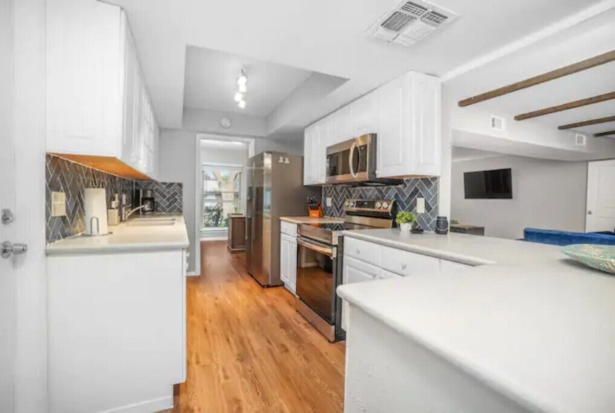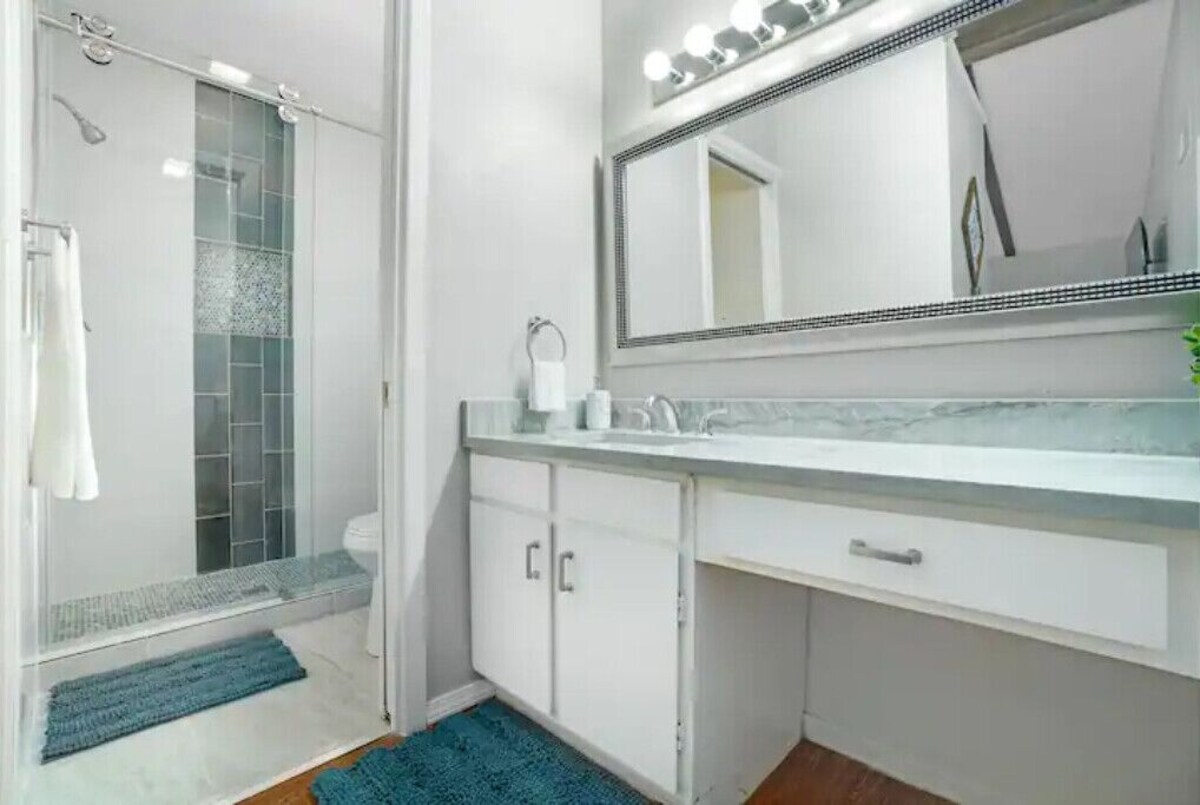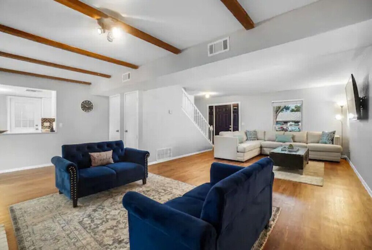 Come stay at Casa Azul during your trip to visit this beautiful historic city! This home is very spacious and has enough room for your entire family to come together. There is a big back patio where you can enjoy family meals al fresco, or gather around the foosball table for family game night . Also very close to convenience stores and parks. Some points of interest: 10 min to Lackland AFB 15 min to Sea World 20 min to Downtown, Riverwalk, Pearl 25 min to Six Flags & La Cantera THE SPACE This super spacious home is two stories, with the primary suite on the first floor. The home is originally from the 1970s and has been recently updated and outfitted to extend a warm welcome to your family and meet your needs during your stay. There are still little details here and there that tie back to its original character and add to its charm. The first floor has two living areas, plus a separate office area, a separate dining area, and a game area. The main living area has a 65” Smart TV and high-speed internet access. The kitchen has plenty of counter space and all-new stainless steel appliances, also comes with all the kitchen essentials for your stay. This home has a very large back patio with an outside dining area and a gas BBQ grill. The primary bedroom is on the first floor with a king-size bed and 58\ ,