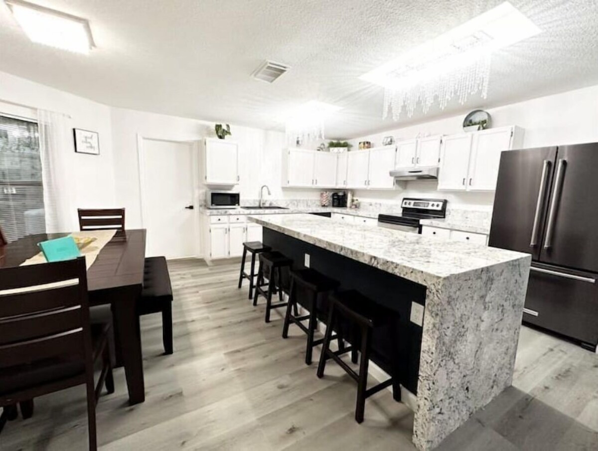 Sleeps 20, Pet Friendly, Heated Pool, Hot tub, Pool Table, Foosball, 7 SMART TV's with Free Spectrum Cable, Children's play area, 2 BBQ Pit's, Seating for 6 at the Firepit Oasis, Large Fully stocked Kitchen, large dining table, Complimentary Coffee/Tea and so much more..... Covered Patio with ceiling fan, 3 outdoor tables with chairs. 2 lounge/tanning chairs. Come Celebrate with the people you love.