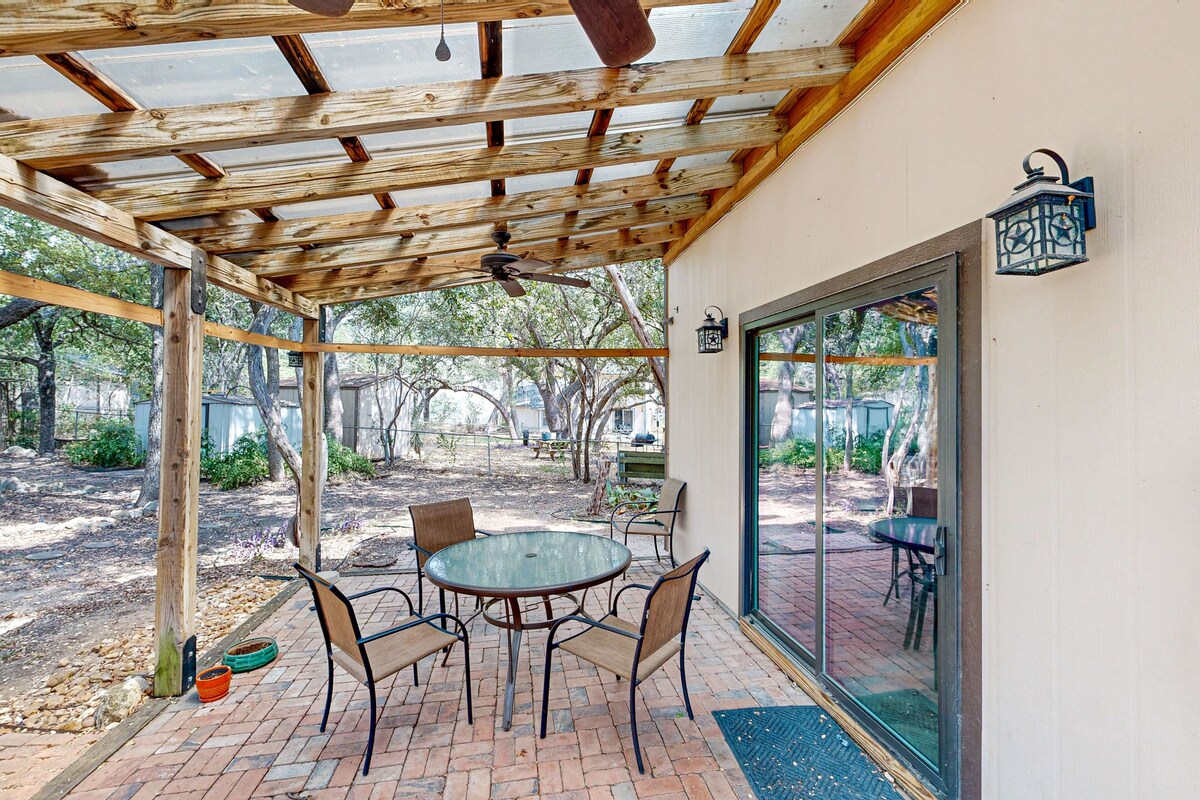 The Hawk's Nest Our calendar is updated in real-time & our nightly rates are accurately displayed. Simply enter your desired dates and click 'Book Now!' Whether you're looking to explore the wide-open splendor of Central Texas or enjoy family-friendly entertainment around San Antonio, this spacious home makes a perfect choice for any occasion. Along with a large, two-story interior, the home boasts a sprawling backyard covered with a shady tree canopy and furnished for laid-back outdoor living with highlights including a gazebo, a covered patio, and a wood-burning chimenea. Parks, greenways, retail shops, groceries, and dining options can all be found within a three-mile radius. The University of Texas at San Antonio Campus is also less than three miles away, making this a great option for families visiting students and graduates. Six Flags is only six miles away. SeaWorld is 10 miles away and Downtown San Antonio is less than a 20-mile drive from the home. Things to Know Check-in time: 4:00 PM Check-out time: 10:00 AM All guests shall abide by Vacasa's good neighbor policy and shall not engage in illegal activity. Quiet hours are from 10:00 PM to 8:00 AM No smoking is permitted anywhere on the premises. If you are bringing a dog on your trip, the pet fee is already included in your quote when selecting ‘Yes’ to pets. If you would like to add more dogs, please contact us. Parking notes: There is free parking available for 2 vehicles. Please note: this home resides in a noise-sensitive area and the owners participate in our Good Neighbor protection program. Our smart home technology will alert our team if excessive decibel or occupancy levels are detected, allowing us to reach out directly with a reminder of maximum occupancy and quiet hours. This technology is privacy compliant, and only monitors the presence of decibels and devices-not any personal conversation or information. Thank you for supporting our efforts to be good neighbors! Damage waiver: The total cost of your reservation for this Property includes a nightly damage waiver fee, plus tax if applicable (the “Damage Waiver”). (A discount may be applied for stays of 28 nights or longer, if permitted.) The Damage Waiver covers you for up to $3,000 of accidental damage to the Property or its contents (such as furniture, fixtures, and appliances) as long as you report the incident to the host prior to checking out. The Damage Waiver fee eliminates the need for a traditional security deposit. More information can be downloaded from the \ on the checkout page. Due to local laws or HOA requirements, guests must be at least 25 years of age to book. Guests under 25 must be accompanied by a parent or legal guardian for the duration of the reservation. Our prices include all fees. No hidden fees.