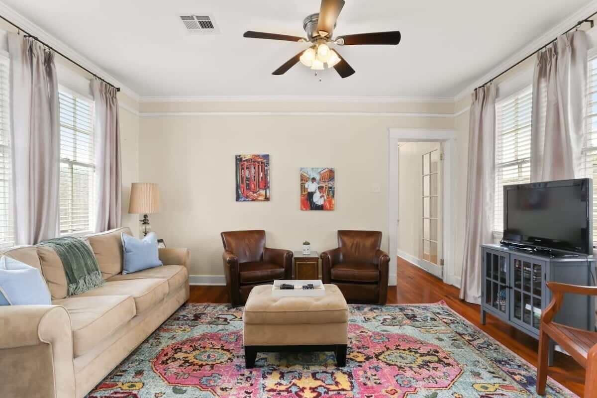Summary: Welcome to your quintessential Crescent City, sunny escape in the vibrant Uptown neighborhood of New Orleans! This upstairs 2-bedroom, 1-bathroom Airbnb exudes a unique blend of historical charm and modern comfort. Location, location, location! Situated just steps away from the iconic streetcar line, your adventures in this enchanting city are at your doorstep. Immerse yourself in the rhythmic energy of New Orleans as you hop on the streetcar and explore famous attractions, jazz-filled streets, and world-renowned dining spots. The Space: Going up the stairs, you are greeted by the sunny living and dining area, before embarking down the hallway to the two well appointed bedrooms. One bedroom is a king and the other a queen, fully equipped with spa quality linens. The unit also boasts a fully equipped kitchen and - the highlight - a lovely sunroom overlooking Cadiz street! Furthermore, there is also a small nook with a desk, for your remote working needs! A back patio area is available and shared with the downstairs tenant. Guest Access: Guests have access to the entire home, but we are available when needed. This home is a duplex and there is another unit above. The Neighborhood: Step outside and immerse yourself in the vibrant culture of Uptown. Prime Mardi Gras location!! Discover charming boutiques, local art galleries, and an array of dining options that capture the essence of New Orleans' rich culinary heritage. Plenty of options within walking distance, and the street car is only 2 blocks away. Getting Around: The streetcar is 2 blocks away and can take you to all parts of the city. Other Things to Note: This home is a duplex. The back patio is shared with the downstairs tenant. Pets are welcome for a one-time $200 fee per pet. Our prices include all fees. No hidden fees.