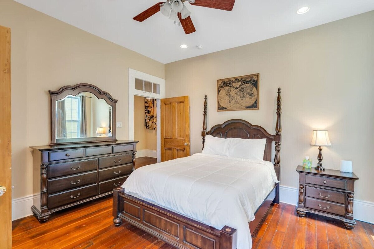 Located in the Milan neighborhood of New Orleans, less than a mile from the Garden District and only two blocks from St. Charles Street Cars, this 3-story, historic home is a wonderful way to experience all that the Crescent City has to offer! Inside, you'll find restored vintage features including hardwood floors and exposed original brickwork alongside updated amenities and decor. Each bedroom has its own private bath and there are two living areas for your group to spread out! Visiting chefs will love the well-equipped, gourmet kitchen with stainless steel appliances (including a wine cooler) and plenty of countertop prep space. Meet up for formal meals in the dining area, and then pick from one of two living spaces including one adjacent to the kitchen with a TV for streaming your favorite channels. Outside, take advantage of the front porch or upper-level balcony and sip your mint julep while you watch the world go by! Property Layout is as follows: First Floor: Dining Room, 2 Living Rooms, Kitchen, Laundry, Common bath with tub, and front porch. Second Floor: 2 Bedrooms, each with a full ensuite bath and a Queen size bed. One of the bedrooms has a private balcony with seating that overlooks the street. Third Floor: 1 Bedroom with full ensuite bath and a Queen size bed All of the TV's use streaming services, you can log in to your own accounts to watch television. You will have access to the entire space you are renting, but there are two other units with long-term renters at the rear of the home. The back porch is for use of those tenants only. They have their own private entrances, just like you will. For outdoor spaces, you will have exclusive use of the front porch and 2nd floor balcony. While the home is very well-maintained, it is over 160 years old and, as such, has some quirks associated with historic homes. You may park two of your vehicles in the gated driveway, but they must be parked in line (one behind the other) so that the tenants at the rear of the home can get by you and to their spaces. Any additional vehicles you have with you will need to park on the street. Per local requirements: This home is not ADA-compliant. There is an exterior doorbell camera that records anyone entering the property through the front door. There is a noise-monitoring device inside the home (as requried by law) that measures the sound levels to ensure guests are not disturbing neighbors. Permits: 23-CSTR-04023, 23-OSTR-06117 You have access to everything in the home except for the back porch, which is reserved for the two long-term tenants in the units at the rear of the home. You have exclusive use of the front porch and 2nd floor balcony, as well as anything inside the home. There is a locked closet on the 3rd floor that is reserved for the owner's supplies, and a locked closet on the 1st floor for our cleaning supplies. This home allows dogs (limit of 2) and they must be 25lbs or smaller. There is a nonrefundable fee for pets charged at the time of booking, so please be sure to include the pets on your reservation. Unauthorized pets will result in an additional $250 fine in addition to the normal fee. We're available 24 hours a day via call or text to assist you with any needs that may arise! **There is a $200 security/damage deposit collected 3 days prior to arrival, and returned shortly after your stay. This is done as a $200 hold on your method of payment, not a full charge. Please see the rental agreement (required to be read and signed before booking) for more details. *** Please carefully read our house rules below 1. The booking guest must have their ID uploaded to their profile. Please do not remove your ID from your profile at any point during the booking process, or your visit. This will trigger automatic cancellation of your reservation. 2. Please be mindful of the neighbors sleeping. We recommend being quiet after 8:30pm (weekdays including Sundays) and 9:00pm (weekends). 3. While early check-in / late checkout may be available, this must be arranged ahead of time for an extra fee. Unauthorized Late checkouts are a $50 charge for each hour after 11am - a 15 minute grace period is given. Late checkouts MUST be requested before 9PM the day before your departure. 4. Clean towels are a provided amenity. Plan ahead while packing, please bring extra towels if you or any of your guests anticipate needing more. 5. Smoking & vaping in the unit will result in a $500 deodorization fee. Please smoke outside of the property. 6. Unregistered guests and parties are prohibited by local laws and ILLEGAL. Our occupancy limits are set by local ordinance. Any guest found to have had a party or over-occupancy will be charged a $1,000 fee for non-compliance with local laws. Exterior cameras are present at the property to verify these laws & house rules are not broken. All rental platforms specifically ban parties from their units. Violation of this rule will result in immediate eviction and a ban from the platform. 7. Please do not hang or attach anything to the walls with push pins, tape, etc. or other painted surfaces. 8. Please do not use face towels to remove makeup, it damages the towels. 9. If the space is left excessively dirty, $50 will be charged for each additional hour of cleaning required. Removal of bodily fluids will result in a charge of $150. Glitter cleanup will result in a charge of $100. 10. This home allows dogs, limit of 2 and they must be 25lbs or smaller. There is a nonrefundable fee for pets charged at the time of booking, so please indicate pets when making your reservation. Unauthorized pets will result in an additional $250 fine in addition to the normal fee. 11. After you’ve read these rules, please send me a message with the words “yellow kangaroo”, it will let me know that you have read the rules thoroughly. 12. Unfortunately, we cannot accept bookings from “Locals” at this time. Locals is meant to include anyone residing within 60 miles of New Orleans. 13.