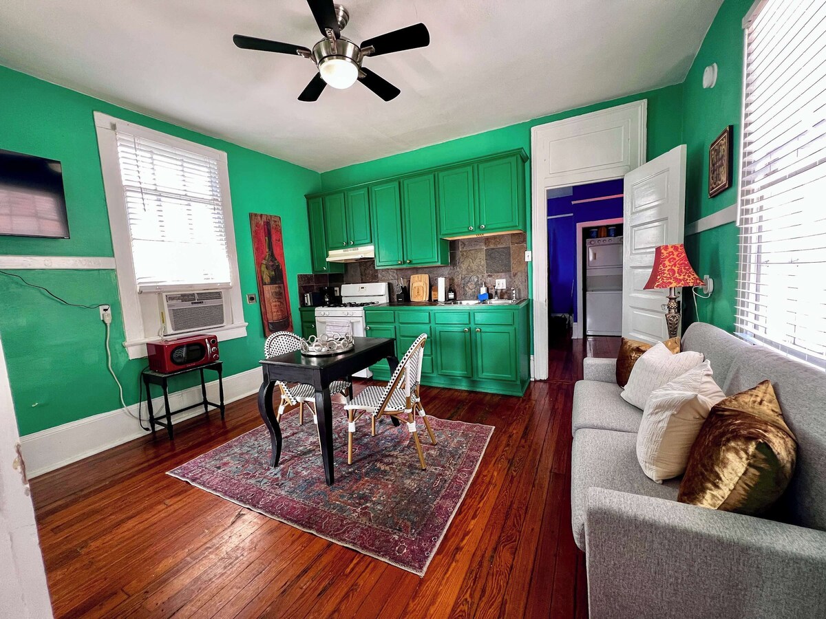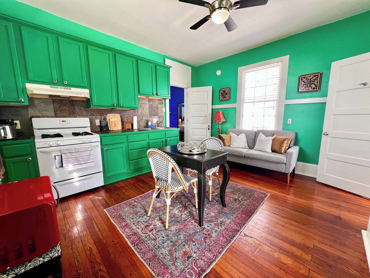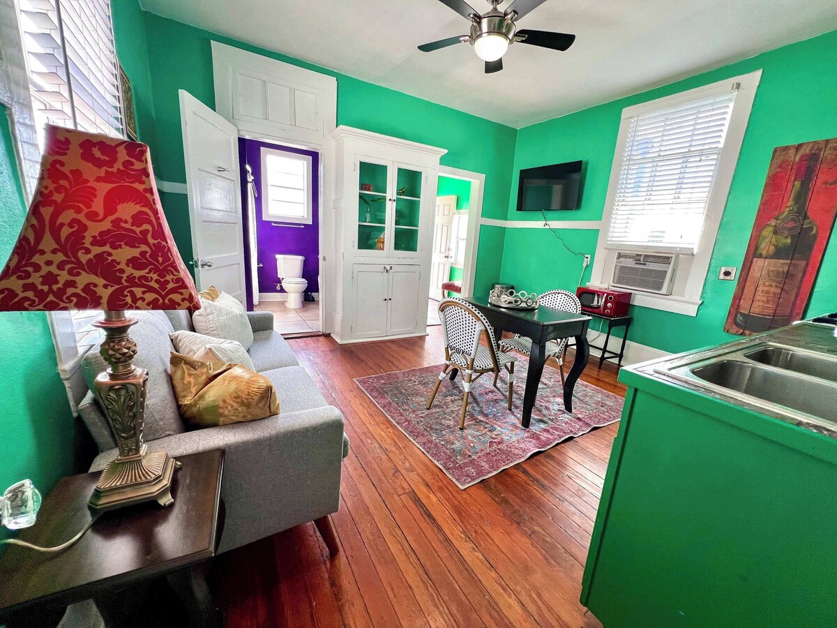 Summary: This cozy home offers a comfortable & convenient New Orleans experience. Enjoy 20+ restaurants, breweries, and bakeries within blocks from the house. Explore the beautiful Bayou & all the fun attractions of City Park. This one bedroom home is centrally located making it easy to get to all of the fun of New Orleans, while being quietly tucked away for a good nights rest. The Space: Professionally designed, filled with local art, and featuring a second- floor suite of modern amenities, our 1 bedroom, 1 bathroom home can comfortably accommodate couples and small families. This is the perfect place for groups seeking only the best of New Orleans. Completely Private Space, including private entrance! Great for families and Couples! Intimate Setting For Couples. Extremely Comfortable Bed. Full Kitchen with Stove/Oven, Refrigerator, Microwave. Washer/Dryer Smart TV with access to your Netflix / Hulu / Amazon Prime Video accounts & much more! A cozy couch for lounging and a table flexible for dining or laptop work. Digital Guidebook W/ Food/Fun Recommendations, Eco/Allergy Friendly Laundry & More! •24/7 check-in allowed Party and events not allowed Trashcans can be found outside the house inside the gate or next to the gate. Guest Access: Guests will have exclusive access to the entire second-floor unit. The Neighborhood: North of the noise and saturated color of the Quarter is a New Orleans neighborhood that’s perfected the art of living. “Welcome to Mid-City,” read the signs on the neutral ground. And that’s truth in advertising. It’s the kind of place where your auto mechanic invites you to a crawfish boil and a total stranger may buy you a drink at an Irish pub or a cannoli at an Italian bakery. Take the red streetcar line up Canal to the Cemeteries (Mid-City’s dead neighbors are as interesting as the live ones) or bike the new 2.6-mile-long Lafitte Greenway that stretches from Basin Street to Carrollton Avenue and, conveniently, past a po’ boy shop or two – or 17 – with a sno-ball shop and a micro-brewery thrown in for good measure. Buttermilk biscuits. Live music. A bowl of Vietnamese pho. Who wouldn’t want to visit? Eat. Drink. Get up here. If you have any questions about the neighborhood, please send us a message! Getting Around: *Driveway parking is available. *Directions: From I-10 West (LaPlace) - Head east on I-10 E Use the middle lane to keep left at the fork, continue on I-610 E and follow signs for Slidell Take exit 1A for Canal Blvd Turn right onto Canal Blvd Turn left onto Navarre Ave Turn right onto Orleans Ave Turn right onto N Pierce St From I-10 East (Slidell) - Head southwest on I-10 W Take exit 235A toward Orleans Ave Turn right onto Orleans Ave Turn left onto N Pierce St Other Things to Note: Street parking is not guaranteed and if you choose to utilize street parking please be sure to follow city and state laws. Unit is upstairs. Guests will need to navigate one flight of stairs independently to get into the unit. *Our space is not handicapped accessible or ADA compliant* Our prices include all fees. No hidden fees.