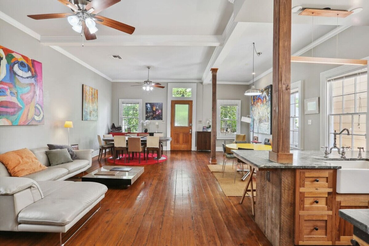 Nestled in the heart of the vibrant Uptown neighborhood in New Orleans, this home offers the perfect blend of classic charm and modern comfort. With its historic architecture and contemporary upgrades, this home is an urban retreat you`ll love to return to during your stay. Centrally located near charming eateries, the streetcar line, walking distance to nearby universities; just a few blocks from the beautiful Audubon Park and Audubon Zoo, and a short 15 minute drive from the French Quarter. The kitchen features stainless steel appliances, granite countertops, and ample cabinet space, making it a chef`s dream. Both bathrooms have been tastefully updated with contemporary fixtures and finishes. Step outside into your private backyard oasis, complete with a spacious deck for al fresco dining, perfect for entertaining or unwinding after a long day. Central AC, in-unit laundry, and street parking. The downstairs unit of the home includes the front porch, private front and back yard space. Property Manager lives in New Orleans and is easily reachable via AirBnb app and/or phone/email. There is a smaller upstairs unit that includes 1 bedroom, 2 bathrooms, fully functioning kitchen, and veranda access; see other listing for more details; booking as a group available. Our prices include all fees. No hidden fees.