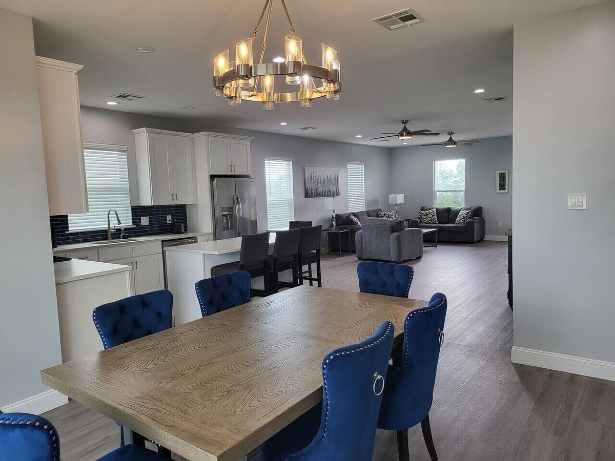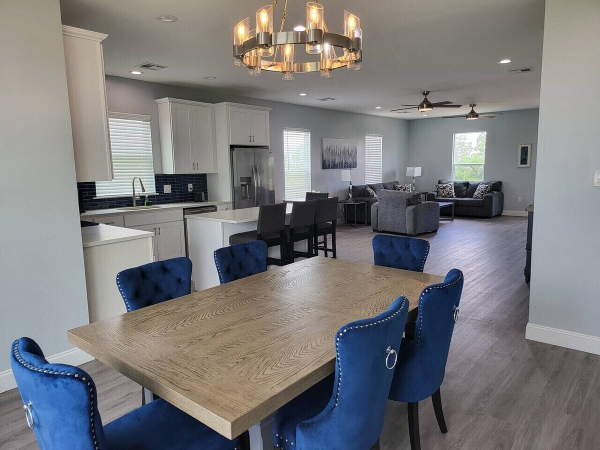 Nestled between Lake Pontchartrain & Lake Catherine this is the perfect place to relax. Just a short half hour drive to New Orleans or 15 minutes to Slidell. The 1st floor has a master bedroom with a king bed & private bath. The 2nd floor has a master bedroom with king bed & private bath along with 2 other bedrooms that have a queen bed in each with a shared bath & 1 more bedroom with a full size bed and full over full bunk beds with a private bath. Our prices include all fees. No hidden fees.