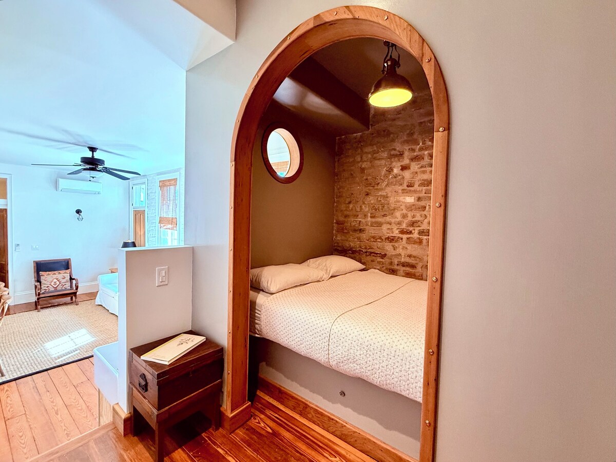 A wonderful boutique space in an 1850's townhouse nicely located in the Lower Garden District right on famous Magazine Street and close to everything. Comprising the original library and servant's quarters of the main house, lots of historic architectural features including high ceilings, floor to ceiling bedroom windows, exposed brick, old decorative fireplaces, hardwood floors and a private gallery overlooking a courtyard. Just between the bedroom and the living room is a wonderfully tucked away couchette which kids absolutely love. The apartment is furnished with a wonderful mix of modern pieces and French antiques. A selection of coffee and tea are complimentary during your stay. We are the closest Historic Residential Neighborhood to the French Quarter and Convention Center and a short walk to the Streetcar, the Warehouse District and tons of restaurants and shops. Your on site host is always available to meet with you to share favorite foodie recommendations or suggestions for interesting and off the beaten path things to do in our city. New Orleans Mayoralty BnB Permit #317974 Our prices include all fees. No hidden fees.