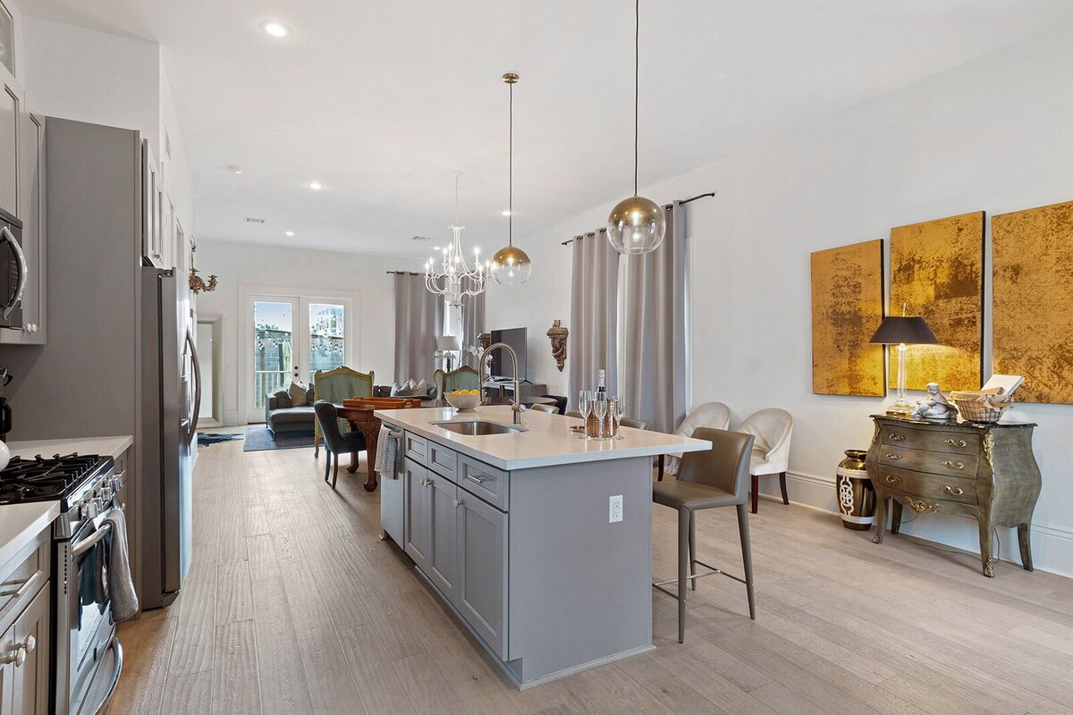 New construction in the midst of it all! Plus off street parking. This modern 3 bedroom 2.5 bath home is located only one block away from the famous St. Charles Ave and three blocks from the Warehouse District. It is an easy walk to the Superdome! A short walk to the St. Charles street car will get you anywhere you need to go. Or walk to nearby restaurants like Maïs Arepas, which is one block away. When you're at your home away from home in The Count, enjoy family or friend time in this professionally decorated retreat. The open floor plan offers the ideal space for entertainment with a convenient half bath off the living area. A modern chef's kitchen will make you feel right at home with the ability to make your favorite meals or venture out and try something creole! The back doors open to a large backyard space to enjoy those NOLA nights with your entire party. Grill out or just hang out on the back patio in your private yard. Upstairs offers a small media area / reading room in addition to the three king sized bedrooms and two bathrooms. The master suite has an en-suite bath, a king bed and a large walk in closet. The guest bathroom has a tub / shower combo and is shared by the other two bedrooms. Both guest bedrooms have king sized beds and are decorated to feel like a master. Other amenities include a full laundry room, digital satellite TV, a large flat screen TV in the living room and master bedroom and high speed wifi. Our prices include all fees. No hidden fees.