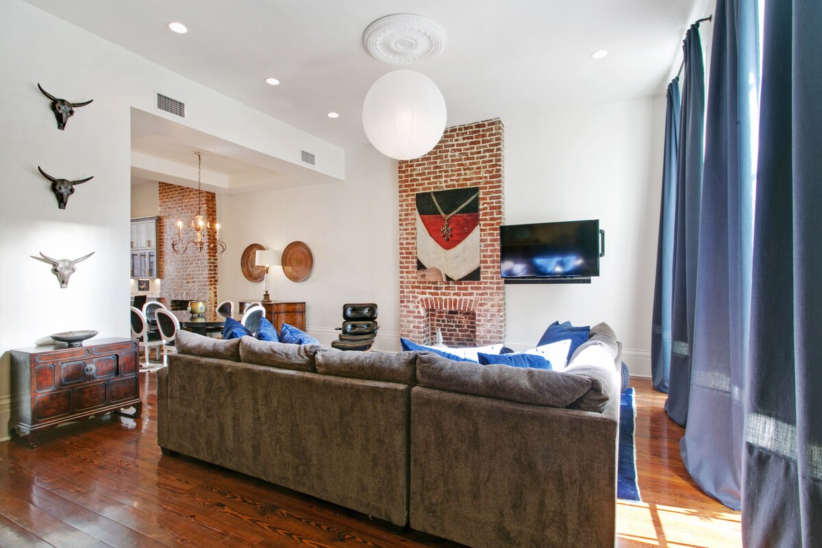 18STR09721 Gorgeous Creole house recently renovated to perfection and ideally located in the hip Lower Garden District on Magazine St. It's walking distance to the French Quarter and Downtown/Warehouse District on one side and shops galore in Uptown on the other. (5 blks to the Convention Cntr). Many of the very best restaurants in New Orleans are an easy walk, and only three blocks to the St. Charles Streetcar line. This house has everything and is perfect for big family celebrations especially when paired with the King of Magazine next door (property 1039236). Our concierge will work with you to ensure that your trip to New Orleans is perfect. The house comes with everything you would find in an upscale hotel only with 4800 extra square feet. There is a fantastic courtyard in back to enjoy coffee in the morning or happy hour in the afternoon. The kitchen and living space is huge with 14 foot ceilings and all high end appliances. The bedrooms are also large with very high ceilings and luxury bedding. This just might be the best rental in NOLA. Our prices include all fees. No hidden fees.