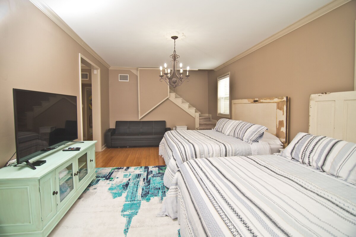 Bring the entire family to this Large Single Family Home that is over 4,000 s.f.. The house has 2 living rooms (one for the kids and one for the Bigger kids). Stainless appliances, granite counter, spacious back yard, large entertainment area downstairs with Air Hockey and Foosball Table. The house has 8 king beds and 2 queen blow up mattresses, so you will never feel cramped. Perfect location for getting around town. Close to the Universities and close to the French Quarter. Additional Features - 4,000+ s.f. living space -2 living rooms - 2,000 sf of entertainment space downstairs - All bedrooms are independent - 8 King Beds - 2 Queen Beds (air mattress with pillows sheets and blankets) - Air Hockey Table - Foosball Table - Pack n Play - Back Deck with BBQ Pit - Off Street Parking - Wireless internet throughout house The house is set up for you to walk in and enjoy. It has a full kitchen with all accessories, dry bar, washer/dryer, front porch and private back deck and yard. Walking distance to the Freret Street corridor with bars, restaurants, etc. Walking distance to Tulane and Loyola. 7 minute UBER/LYFT to the French Quarter and Bourbon st. Super safe neighborhood with no problems. Each bedroom is independent for your privacy. There is 1 to 2 KING beds in each bedroom. There are no other size beds - ONLY KINGs. Additionally, 2 Queen beds available. Walking distance to coffee, begneits, bars & restaurants. Very safe neighborhood that you do not have to worry about, even late at night. - Bourbon Street - Downtown - Audubon Zoo - Insecterium - Aquarium of the Americas - City Park - French Quarter - Tulane - Loyola - Downtown Medical District - Parade Routes - St Charles Street Car Line Our prices include all fees. No hidden fees.