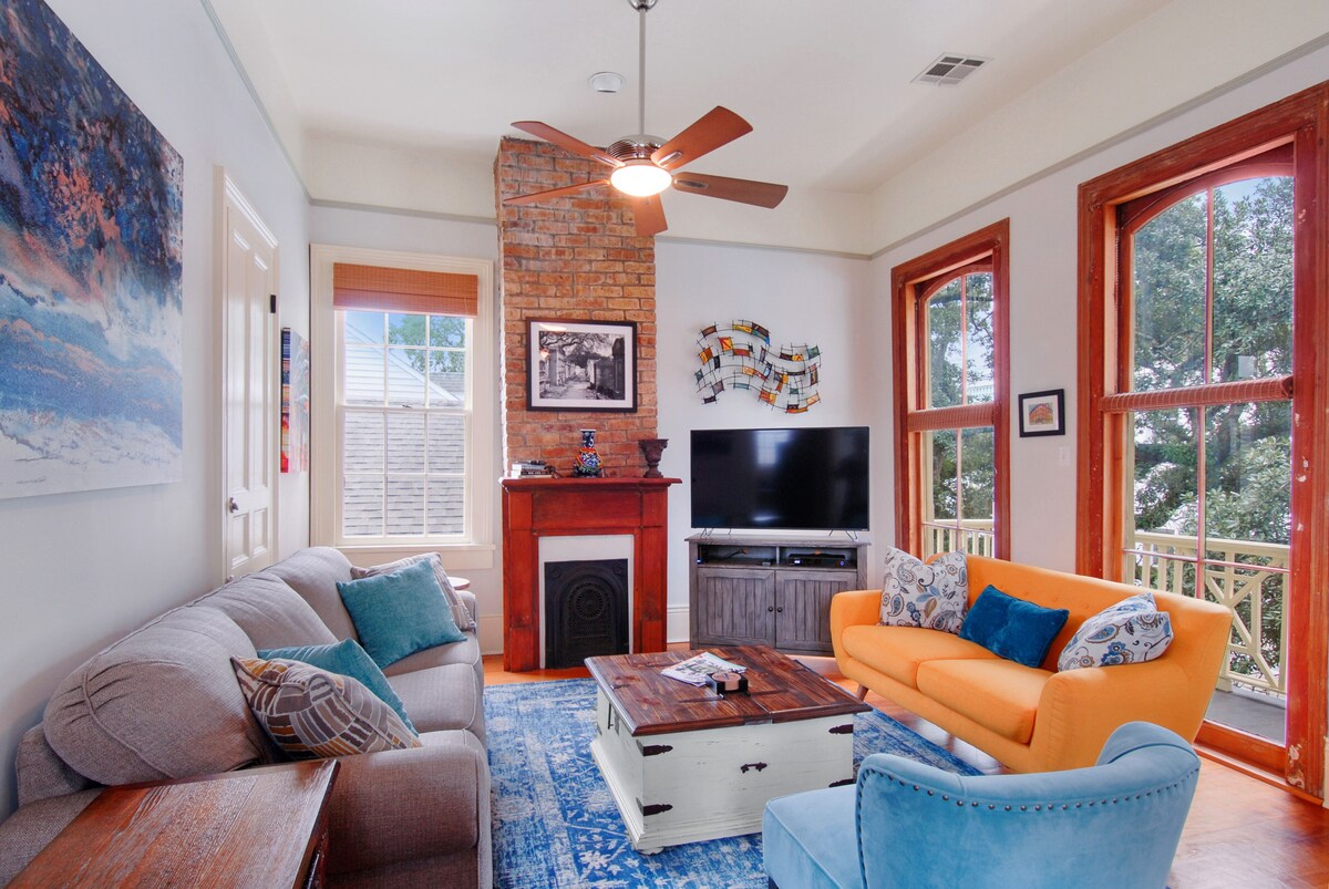 Spacious and elegant 2 bedroom, 2.5 bath apartment on the second floor of our beautiful historic home. It has lots of natural light and a balcony that you can sit out on in the morning and enjoy your coffee. Located on a quiet tree lined block in the historic neighborhood of Treme, just two blocks from the French Quarter and the Rampart Streetcar. Plenty of free on-street parking on our block. It's just a short walk to Bourbon St, The Marigny, Frenchmen St and Louis Armstrong Park. This property will allow you to enjoy all that New Orleans has to offer. Each room is beautifully decorated with its own unique style & decor. It has an incredible layout, featuring bedrooms with walk in closets and private bathrooms in each. The roomy 1400+ Sq Ft apartment features high ceilings, pocket doors, private balcony, and hardwood floors. We have a pull out sofa bed in the living room that can sleep 2 (to be used only by 6 guests who are paying the extra guests fee), and the pocket doors can be closed for privacy. Amenities include High-Speed Wi-Fi, Cable TV with HBO and Netflix, complementary coffee and tea, extra pillows and linens. Ironing board and iron, garment steamer, and blackout curtains in the bedrooms. **Not suitable for parties or loud gatherings as we have very nice neighbors downstairs.** Reviews matter! We are very proud of the consistent 5-Star reviews we receive from our wonderful guests - many of them repeats. We strive for a unique home-away-from-home experience (it is our actual home) and our guests tell us they love the thoughtful details. Our prices include all fees. No hidden fees.