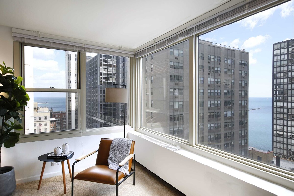Summary: Stunning 1,500+ square foot corner penthouse with oversize windows, an open layout, and dramatic city and lake views in multiple directions from every room. This bright and modern three bedroom, two bathroom apartment is perfect for travelers looking for a stylish escape in the sky in downtown Chicago just off the Magnificent Mile and the lakefront. The building has great amenities including an amazing rooftop terrace with 360 degree views of the skyline and the lake. This is the best location in the city! The Space: Located on a high floor in a secure, high-end building in the center of Chicago! Once inside, you're greeted by a large light-filled space with large windows overlooking the lakefront, beaches, and the surrounding neighborhood. Interior design is a passion of ours and the chic furnishings reflect that! There is fast internet, a smart TV with Roku, and comfortable modern furniture to lounge on. The kitchen and living room are open and very spacious. The kitchen is stocked with cookware and all the tools you need to cook a great meal. We have 2 counter stools and a 4 person dining table. Plenty of room to dine comfortably or to use as an additional workspace. In the living area, there is also a desk that can be used as a workspace. The massive master suite has its own private sitting area with wonderful lake views and a large walk-in closet. For each guest, the comfortable beds have crisp, clean linens and the bathrooms are stocked with fresh towels and bath products. Sleeping arrangements are as follows: Bedroom 1: Queen bed Bedroom 2: Queen bed Bedroom 3: Queen bed Living Room: Queen sleeper sofa We provide towels, iron, cleaning supplies, etc. and there is an in-unit washer and dryer. The building has a doorman and thoughtful amenities including a gym, a rooftop terrace with sun beds and lounge seating, a gourmet coffee shop, and an indoor club room with a pool table that can be enjoyed during colder weather. The panoramic city and lake views from the rooftop are truly awesome year-round! Guest Access: You'll have complete and private access to our apartment. You will also have access to all of the building's shared amenities (rooftop deck, gym, coffee shop, club room, business center, etc). The Neighborhood: Located in a leafy, upscale neighborhood just off Michigan Avenue in one of the most central locations in the entire city! You are surrounded by world-class architecture, shopping, beaches, parks, and other sites within walking distance. From our place, you can easily walk to the Magnificent Mile, Oak Street Beach, the Lakefront Trail, River North, and Navy Pier as well as numerous restaurants, bars, and cafes. Attractions such as the Art Institute, the Central Loop district, Lincoln Park, and the West Loop restaurant row are only a 5-10 minute ride away. Getting Around: Our place is surrounded by trains and buses that will take you anywhere in the city you want to go! Uber and Lyft is also available 24/7. You'll have no trouble getting around without a car. Parking is not included with our listing, but our building has its own parking garage and there are other garages close to our building (within 2 blocks). We suggest using SpotHero or ParkWhiz to find and book discounted parking. You can usually find reasonable overnight parking for $15 to $30. Other Things to Note: Dogs allowed with prior approval only. Please inquire about breed restrictions. 35 pound weight limit. $35/night per pet fee applies. Unauthorized pets will incur a $500 fee. Parking is not included with our listing, but our building has its own paid parking garage and there are other garages close to our building (within 2 blocks). We suggest using SpotHero or ParkWhiz to find and book discounted parking. You can usually find reasonable overnight parking for $20 to $30. Interaction with Guests: We are always available to answer questions and provide recommendations! Our prices include all fees. No hidden fees.