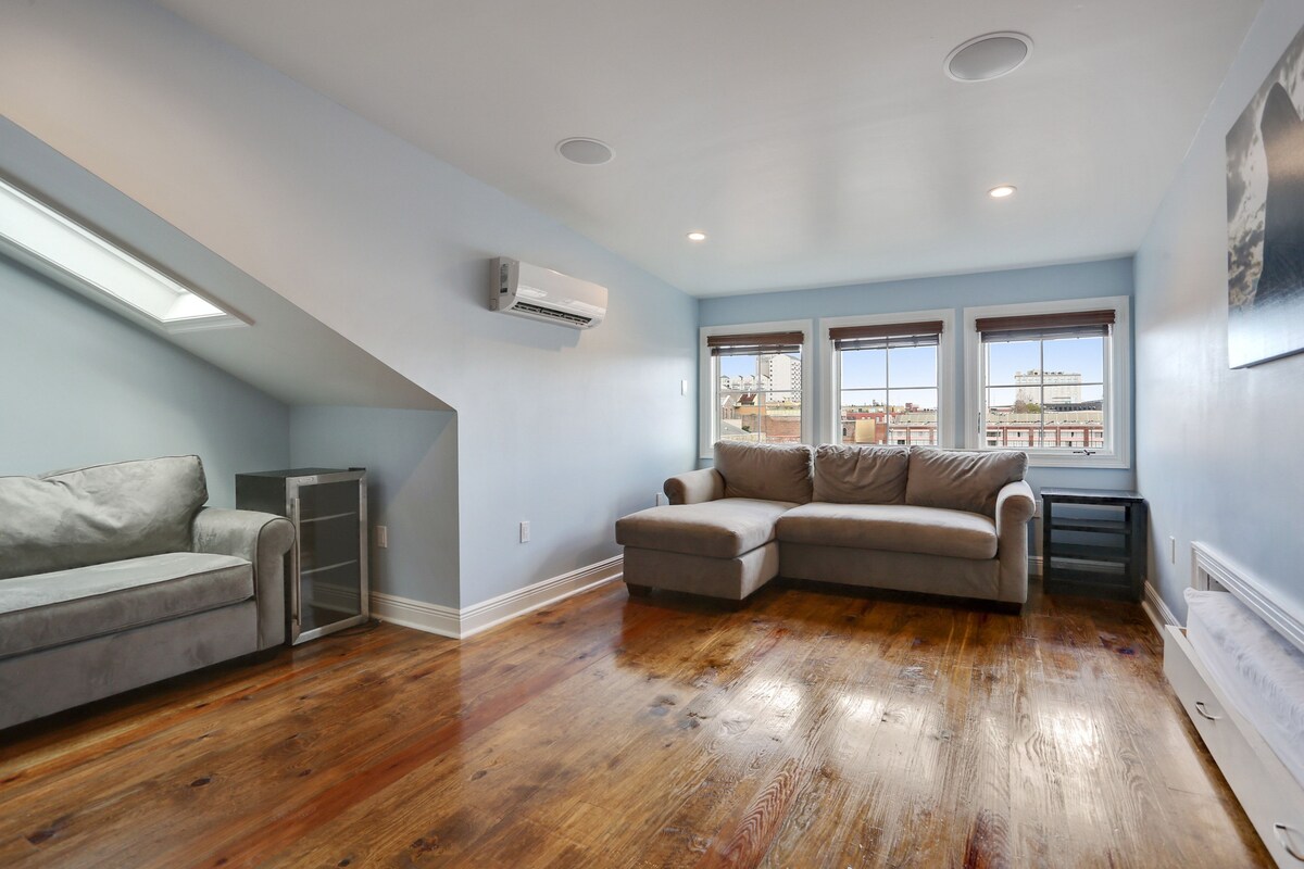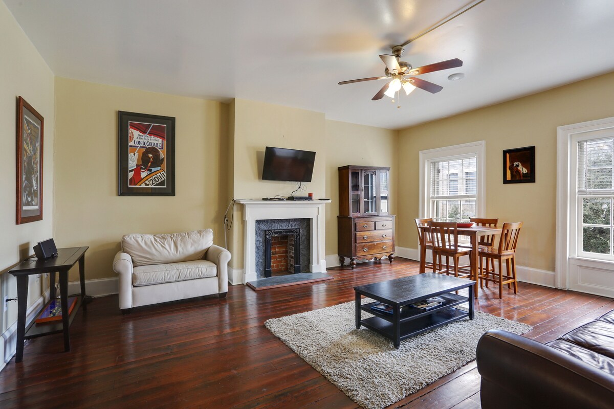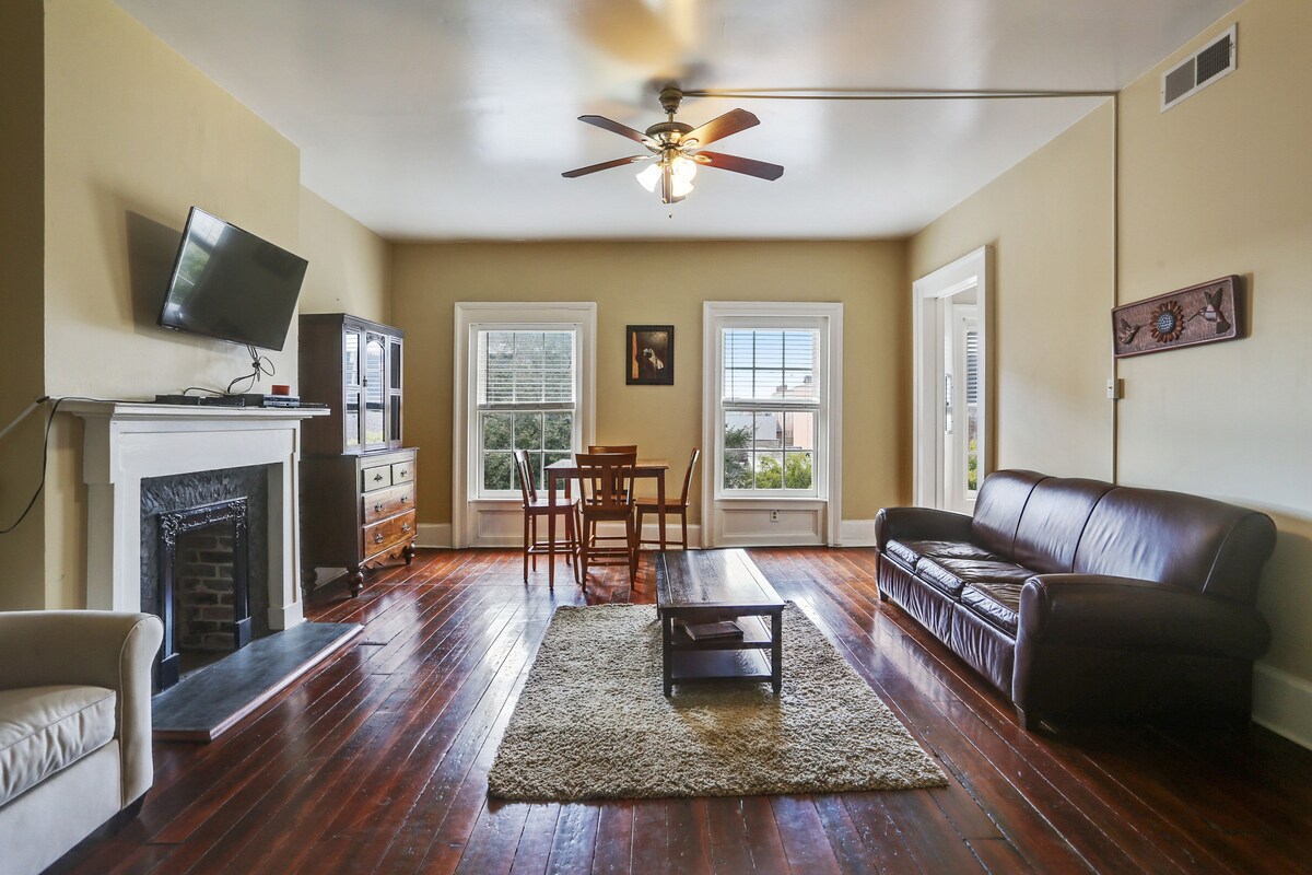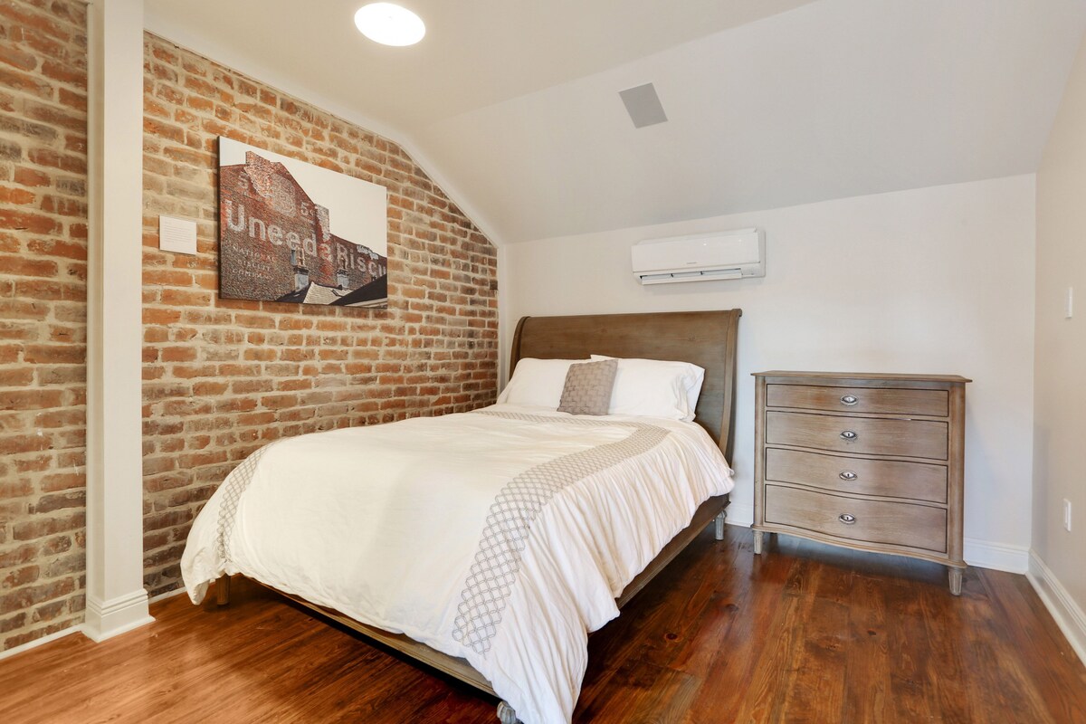 Experience the best of New Orleans in this beautifully renovated 1840 property, perfectly blending historic charm with modern comforts. Situated on the 3rd and 4th floors, this spacious 1500 sq ft unit accommodates up to 6 guests with 2 well-appointed bedrooms. The interior features bright and airy living spaces, a fully equipped kitchen, and stylish decor with exposed brick and hardwood floors. Enjoy the charming outdoor patio and balcony, ideal for relaxation and taking in the city views. Located near Downtown NOLA and the French Quarter, this property offers easy access to the city's top attractions, including the Convention Center. Immerse yourself in the vibrant local culture, historic architecture, and lively atmosphere just steps away from your door. The exterior boasts classic New Orleans style with a striking red facade, green shutters, and wrought-iron balconies. Licensed as a short-term rental, this home ensures a comfortable and memorable stay in one of the city's most desirable locations (Permit # 20-CSTR-26432). Our prices include all fees. No hidden fees.