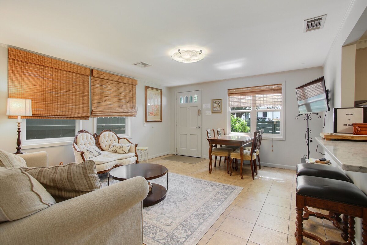 This house is located in a very quiet and safe historic neighborhood right near Audubon Park. It's also one of the most gorgeous residential neighborhoods in the city. It's perfect for families or small groups looking to relax and explore the city. The house is not baby proofed, but children and well behaved adult pets are welcome. The location of the house is unmatched! Everything you need is within a few blocks. It's easy walking distance to window shopping on Magazine St, James Beard award winning restaurants, several comfy neighborhood bars, the award winning Audubon Zoo, Audubon Golf Course, Audubon Park, coffee shops, a yoga and pilates studio, a spa, Wholefoods, Walgreens, ice cream shops, and an upscale wine store. It's a 10 minute drive to the French Quarter, Mid City, Lower Garden District, and Central Business neighborhoods. Or just walk a few blocks up to St. Charles Ave and catch the streetcar towards downtown. There are new countertops and appliances in the kitchen, a private washer and dryer, and central AC/heat. There is a TV in the living room and master bedroom, both with Netflix. 2 off street parking spaces are available for small vehicles. A big vehicle will take up both spaces, but there is usually plenty of street parking available as well. The lush front yard is securely fenced in and set far back from the street. This is *not* the place for your bachelor party or a place to get rowdy. Please only book if you know how to respect a house and neighbors as if they were your own. Other things to note: -Quiet hours after 11pm - The owner lives on the property in the rear apartment. -Parties and events are strictly prohibited(And also illegal at rentals in Orleans Parish). -No smoking(anything) inside. Feel free to smoke on the front porch, but please dispose of cigarette butts properly. -For security of the property and my guest's safety, there is an external camera overlooking the front yard and driveway. -I don't bother my guests. Your privacy is important to me. Although I'm happy to chat or give suggestions. If you need anything at all, I'm always happy to help. ***My rental house is thoroughly disinfected and cleaned by a professional cleaner after every single checkout. Visit with confidence that you and your family and friends will be taken care of.*** Our prices include all fees. No hidden fees.