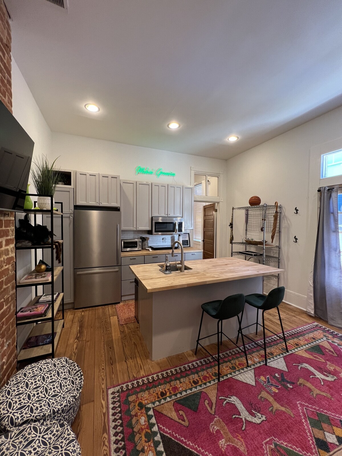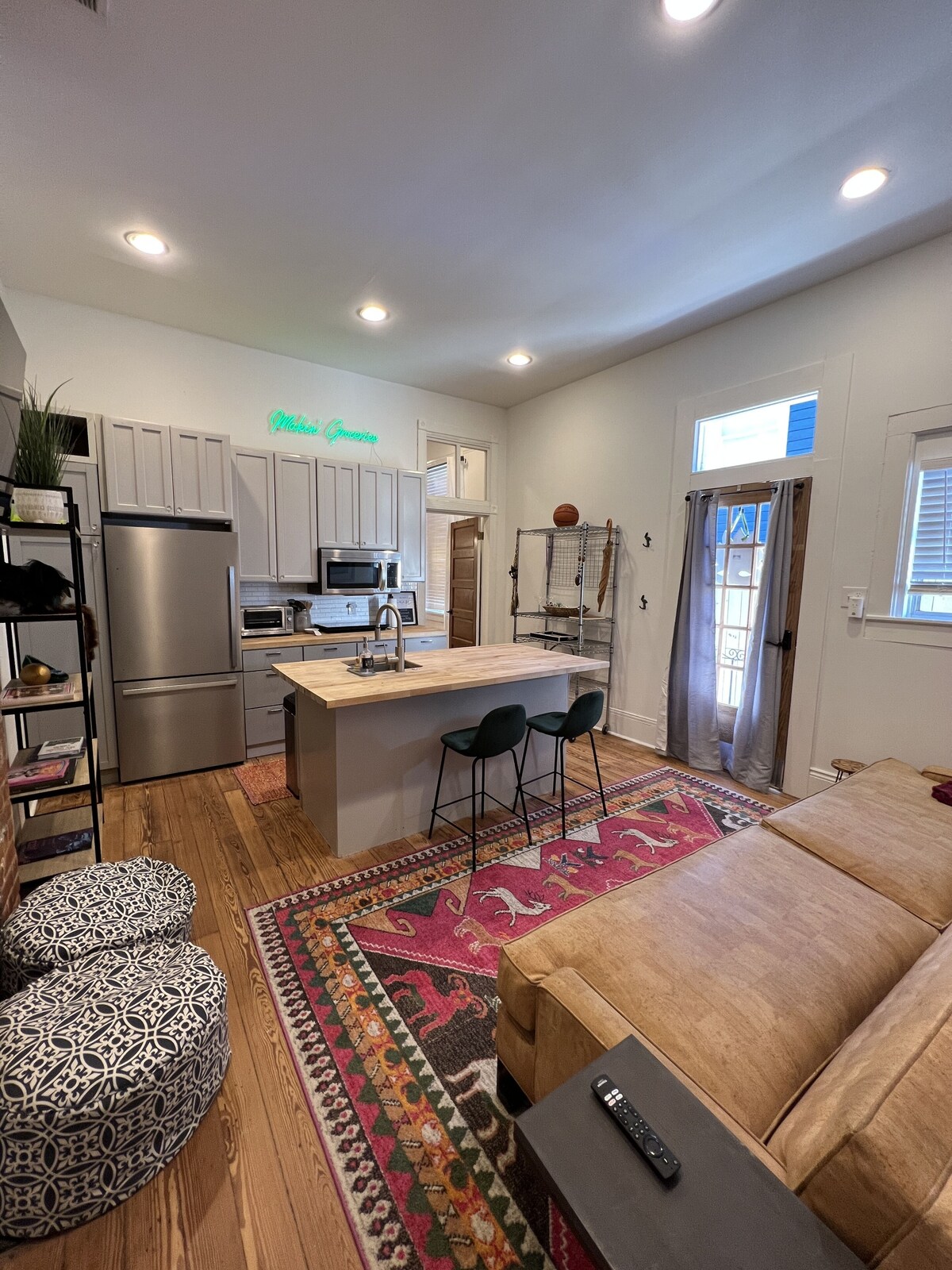 We are so proud to introduce you to the JazzNest! This is a 2 bedroom, 2 bathroom space in the heart of uptown New Orleans, one block from the best shops and restaurants on Magazine. The home has just been completely renovated and is the quintessential historic double shotgun with 12ft ceilings and celebrates all the charm of the great city of New Orleans! There are 4 grocery stores within walking distance, 2 large ones, 1 smaller Whole Foods, and a boutique grocery called Zara's. There is a convenience store 1 block away on Magazine and a neighborhood coffee shop (Cherry Coffee Shop) just around the corner that faces a public dog park, a children's park and jungle gym, and a baseball field. ALL of this is within ONE block of the house! There is plenty of room for street parking right in front of the house and the area is very safe and family friendly. As are most short term rentals in New Orleans (due to the city's short term rental laws) this is one side of our own double however the space is completely private with its own private entrance, side yard, and patio area. There are two large bedrooms on opposite ends of the house, one with an attached full bath and one with a full bath adjacent and the living area and kitchen are in between. The home is full of New Orleans decor and a short 5 block walk to the heart of the Mardi Gras parades on Napoleon. There is plenty of parking in front of the house. The home has its own washer and dryer, comfortable beds and bedding, smart tv's, and wifi. There is a full refrigerator, induction stove, dishwasher, toaster oven, and all of the accessories needed to make this your home away from home. If you need to borrow a crock pot or pressure cooker just ask and we are glad to oblige! Outside you have a private entrance with a fully fenced (8ft) side yard with a propane grill, two tiered deck, and string lights. We welcome well behaved pets for an additional $50 cleaning fee. ** Note ** - We know that New Orleans means having a good time and we are here for you to do just that. The space is very private and noise is rarely an issue however we do ask that noise be kept to a minimum outside after 9:30pm in respect of our neighbors. The homes in New Orleans are very close together and short term rentals are on a very tight leash when it comes to nuisance laws. You are free to use the front porch of our home after 9:30pm but still ask that noise be kept at a conversation level. Our prices include all fees. No hidden fees.