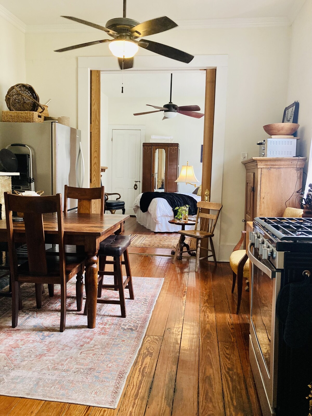 GENERAL DESCRIPTION Walk everywhere! This historic colorful Creole cottage located in the vibrant and diverse Marigny neighborhood is walking distance to charmingly intimate cafes & eclectic shops, award winning restaurants, bars, art studios, and local live music on Frenchman street. CARNIVAL parades just blocks away. Saint Ann parades directly in front of cottage on Mardi Gras Day. Bike to the JAZZ FEST in 20 minutes & avoid parking hassles. Open to individual requests for DISCOUNTS on extended stays. THE SPACE Built over a century ago between 1860-1870, this charming & historic cottage is located in the unique Marigny Bywater downtown NOLA neighborhood just blocks from the French Quarter and Treme neighborhoods. The 500 sq ft cottage studio with back private garden entrance has tons of charm. 1 bedroom, 1 bath, fully stocked kitchen, central AC, W/D. Quiet space. Free street parking. This private shotgun style studio unit, accessible from large garden in back of home - has one queen size bed, a RokuTV system with Netflix/Hulu access among others, and high speed internet. Walking distance to everywhere! This includes dozens of top rated Marigny Bywater and French Quarter restaurants, bars & live music venues - including James Beard Outstanding Chef 2023 nominee Nina Compton’s American Bywater Bistro. Walk five houses down to Who Dat Cafe for Saturday brunch, and Hotel Peter & Paul's Elysian Bar/restaurant (former cathedral built in 1860's) in about a minute. Close to art studios, art market, museums, cultural centers (Studio Be & Marigny Opera House), and the Crescent City Park/Mandeville Street Wharf on the Mississippi river. Just a few short blocks to the live music scene of Frenchman Street, and St Claude Avenue. Walk to the food co-op, Robert’s Market, St Roch Market. Please reach out for recommendations. The shotgun studio unit has central AC & heat (controlled remotely by host - remote guest access by request), hardwood floors, high cooling ceiling fans, plenty of natural light. 1 bedroom, 1 bath with step in claw foot tub & shower. Take a bath and relax! With full kitchen, washer & dryer inside unit, direct access to 1000 sq ft garden/yard. Quiet downtown location. GUEST ACCESS Back garden entrance/access only. You will be able to enjoy the 1000 sq foot garden, right in your back yard. Free and convenient on street parking. OTHER DETAILS If you enjoy walking, you can find some of the best/top rated restaurants in the Marigny/Bywater and French Quarter areas from 1 to 15 blocks away. Rent a bike (bike rental info easily internet searchable) & see the city by bike! Street car is only 2 blocks away. Or hop in a Lyft/Uber, which will likely cost you under $15 a trip (transportation recommended on Uber/Lyft/Taxi after dark in New Orleans). If you’re visiting during Mardi Gras, Jazz Fest, Essence, Southern Decadence or other festivals or holidays Lyft/Uber surcharges can double/triple prices. Thank goodness the rental is walking distance to so much! Home is kept at a comfortable 65-75 degrees F, year round. AC is controlled remotely by host, AC remote access for guests on request. Guests are asked to contact the host directly should the space become colder than 65 degrees F or warmer than 75 degrees F and adjustments will be made immediately for your comfort. We’re animal lovers & allow one small to medium sized non barking dog only for a minimal fee. Please keep in mind the studio space is located downtown, where homes are very close to each other. We unfortunately cannot allow a large or barking dog. NEIGHBORHOOD The historic & unique Marigny/Bywater was the first suburb below the original French Quarter. Immigrants & free people of color first settled in the neighborhood enriching with culture, arts and music. Cafes, restaurants/bars, food co-op, Crescent City Park on the Mississippi river (5 blocks from rental), art studios/museums, and live music all within 1-5 minute leisurely walk from the property. A vibrant area walking distance to everything! Neighborhood Carnival & Mardi Gras Day parades within 1-3 blocks from rental (Chewbacchus, Krewe du Vieux/Delusion, 'Tit Rex, Krewe of Red Beans). Mardi Gras day Saint Ann Society parade passes directly in front of home. GETTING AROUND Street car access three (3) blocks away, which can take you to most historic sites, including French Quarter and Garden District. Taxi Lyft Uber transport (& Uber Eats) options available. Walking and biking are two great options, as many historic/places of interest are within a 1-10 minute walk/bike ride. Our prices include all fees. No hidden fees.