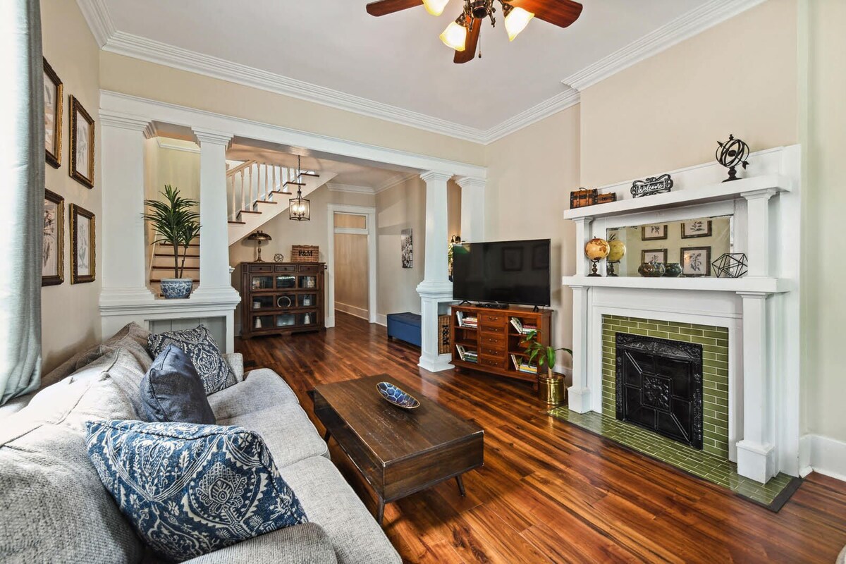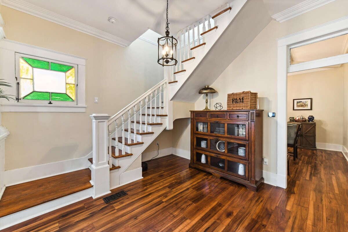 This duplex was renovated in 2019. Includes fully renovated bathrooms and kitchen with granite countertop and stainless steel appliances. The historical charm of house with its 11' high ceilings, laminate and hardwood flooring, old mantels, and crown moldings are evident throughout. Separate modern central air-conditioning and heating units are dedicated to each floor.
