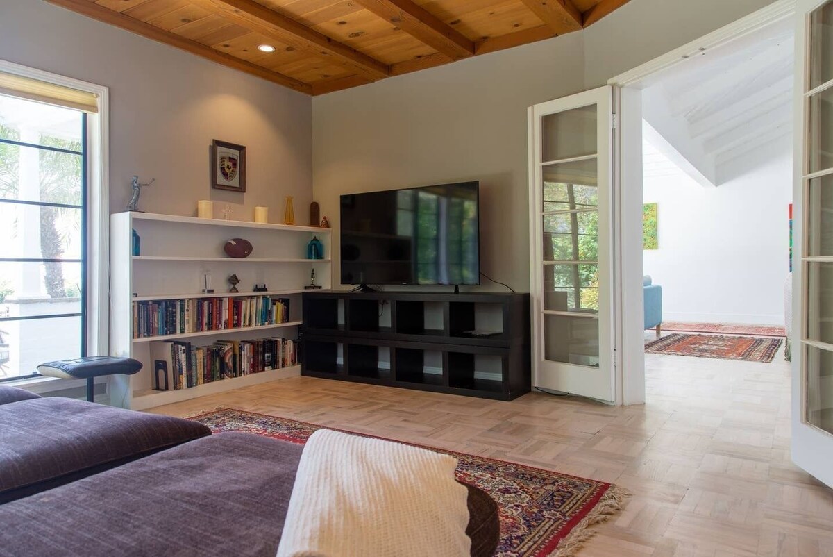 Luxurious mountain top home w/panoramic city & mountain views on a one and a 1/2 acre flat pad. The outdoor area includes a pool, hot tub & outdoor living areas w/seating. Rustic single story home w/vaulted ceilings in a large living room walled windows capturing the endless views. Expensive, unique high end furniture from original owner. Lush green landscape surrounds giving privacy & serenity. Large parking pad can fit 3 large vehicles. HDTV, high speed WIFI, Full-Kitchen and dining area Our prices include all fees. No hidden fees.