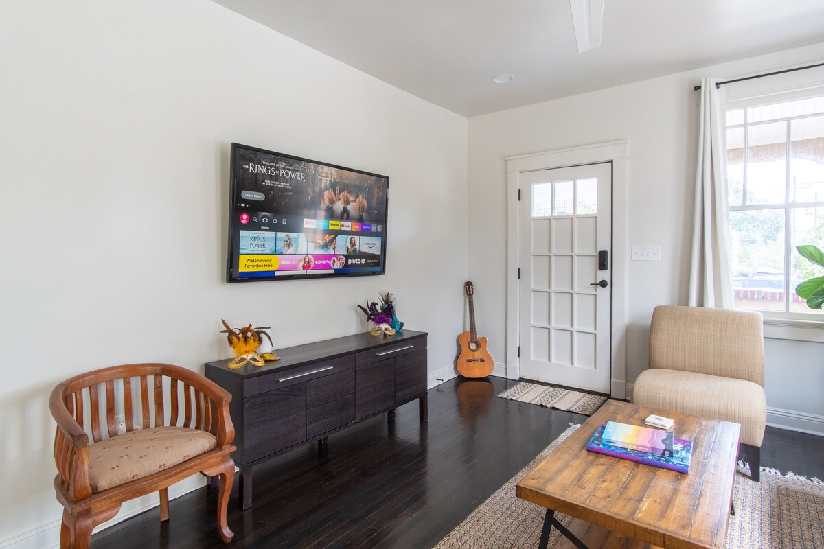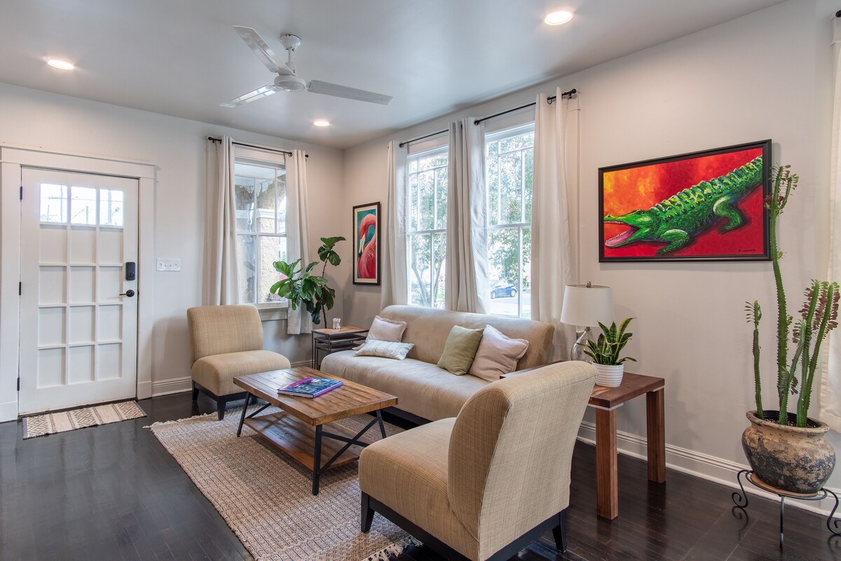 Welcome to our recently renovated 3bed, 2bath house in the heart of New Orleans! Located minutes away from the French Quarter and all major attractions, our light filled home offers the perfect blend of comfort and convenience. With modern amenities and stylish decor, you'll feel right at home during your stay! The house has three independent bedrooms and two full bathrooms, plus a large front porch and furnished back yard. Street parking is plentiful and just its just 1 block to the streetcar! Our prices include all fees. No hidden fees.