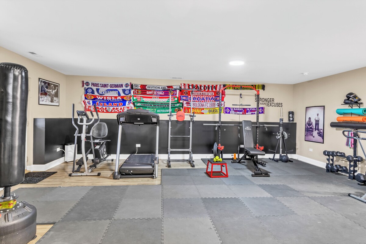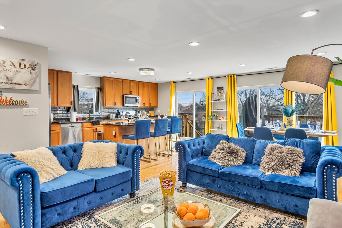 Ready for your UNFORGETTABLE Chicago experience? This luxe oasis offers the perfect blend of comfort & convenience! Enjoy a tranquil tree-lined side street in a safe neighborhood while being conveniently between O’Hare Airport/Rosemont & Downtown Chicago. The modern design of this newer home paired with its world class amenities makes it one of the most desirable stays in the city. Don’t miss your chance! Book today while your dates are still available! Message us about our current deals! You will experience all of this free with your stay: -2 Plush King Beds - 1 Queen Bed -4K Smart TVs Throughout the Space & In Every Bedroom -Your Own Private Gym -Huge Fenced Backyard with Bonfire Pit -Private Deck With Gas Fire Table -Fully-Stocked Chef's Kitchen -Gas BBQ Grill -2 Dedicated Work Spaces -Backlit Vanity Mirrors -Crib - Changing Table & Baby Supplies -Garage Parking -Complimentary shampoo, conditioner, and body wash -Quiet & Safe Neighborhood -Convenient Location between Downtown & O’Hare Airport -Free Garage Spot, Driveway, & Street Parking -Outdoor Games -Puzzles & Board Games -In-Unit Washer & Dryer -Black-Out Curtains In Every Bedroom -6 Person Dining Table & 4 Person Kitchen Island -Tesla Level 2 Universal EV Charger -Short distance to Donald Stephens Convention center, Rosemont, Fashion Outlets, and O'Hare Airport Is there anything else that would make your stay amazing? Send us a message, we would LOVE to help! Our prices include all fees. No hidden fees.