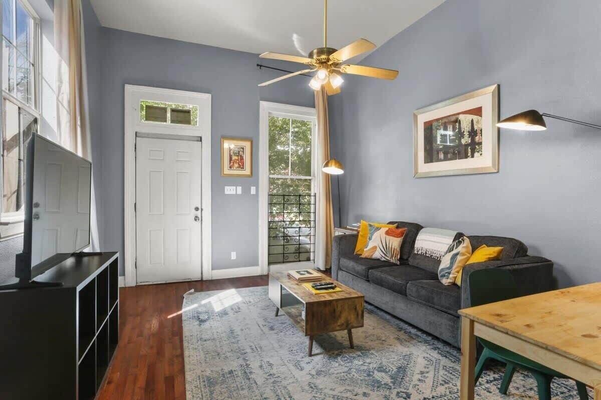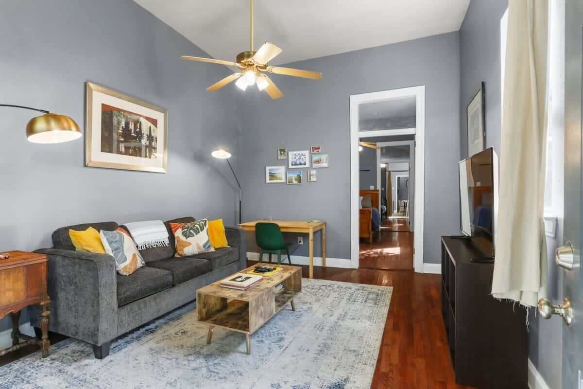 Summary: Introducing our captivating retreat in the heart of vibrant Midcity, New Orleans! This exquisite Airbnb property boasts a charming, spacious, shotgun-style 2-bedroom accommodation that combines comfort and style, perfect for an unforgettable stay in the Big Easy. Whether you're seeking a serene retreat or a home base for exploring the dynamic city of New Orleans, our spacious shotgun-style 2-bedroom Airbnb property in Midcity provides the perfect blend of comfort, style, and convenience. The Space: Step inside and be welcomed by the airy open layout, featuring high ceilings. The expansive living area provides ample space for relaxation and includes a smart tv, making it an ideal relaxing spot. The thoughtfully designed interior blends classic New Orleans charm with modern touches, creating a cozy and inviting atmosphere. Unwind in the comfort of our the two bedrooms, each offering a serene sanctuary for a peaceful night's sleep. The shotgun-style layout does mean you have to walk through each room to get to the next, but locking doors still ensure privacy while maintaining a seamless flow throughout the home. The front porch, a classic New Orleans staple, is a picturesque spot to start your day with a cup of coffee or unwind in the evening while immersing yourself in the vibrant energy of the neighborhood. Feel the rhythmic pulse of Midcity as you watch the city come alive from the comfort of your own charming porch. Guest Access: This home is a duplex, and other side is also an airbnb. Guests share use of the backyard, pool, and front porch. The Neighborhood: Located in the heart of Midcity, you'll find yourself surrounded by a tapestry of local flavor and excitement. Savor the diverse culinary scene, with renowned restaurants, cafes, and bars just moments away. Immerse yourself in the lively culture and rich history of New Orleans through its numerous museums, art galleries, and music venues, all easily accessible via the street car 6 blocks away. Getting Around: Most parts of New Orleans are a 5 minute or less drive from the home. You can also utilize the blue bike rentals to bike around the city. Other Things to Note: Our home is located in an urban environment within close proximity to a mix of uses, including residential, retail, commercial and light industrial. Exterior noises may sometimes be heard in the house during normal business hours, and there is nearby loitering at the corner gas station. The backyard and pool are shared with the home on the other side of this double. Pets are welcome for a one-time $200 fee per pet. This is a shared backyard Interaction with Guests: Kickback Properties values our guests’ space and gives you privacy to enjoy your stay. We are available via messaging for questions or issues - messaging us through your booking app is the best way to reach us. Please only call after 6pm for emergencies (lockout, fire, flood, no heat or AC etc.) Our prices include all fees. No hidden fees.