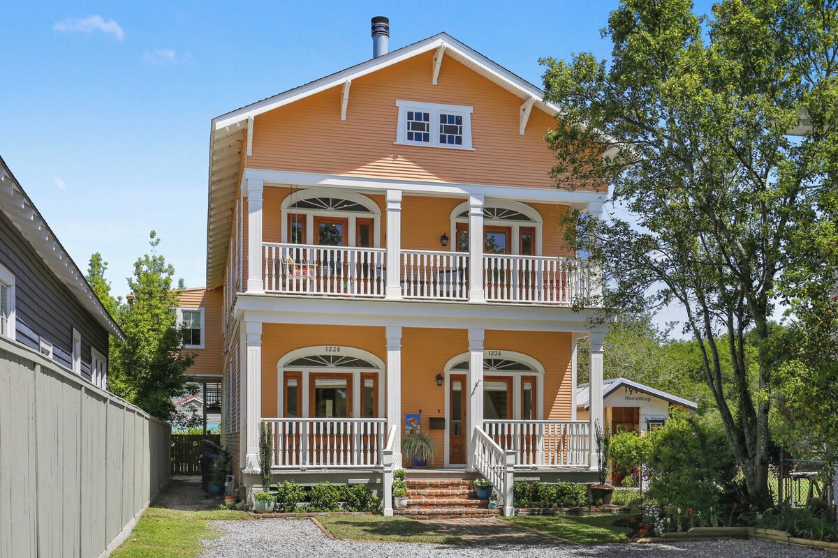 ***This is a 90 day minimum lease** Beautifully renovated, historic home sits on sparkling Bayou St. John, in the heart of N.O. Comfortably accommodates 6. Walking distance to City Park (beignets & cafe' au lait 24 hrs) and the Museum of Art & lovely shops & cafe's on Esplanade Ave. Centrally located. Jazz Fest happens blocks from here! In Mid City New Orleans, easy 7-minutes from the French Quarter and downtown; 15-20 mins. to the airport. Walk-able, friendly tree-lined neighborhood. The space This historic Arts & Crafts double was completely renovated from the studs. You will enjoy the charm of old with comfort & convenience of new! Please see pictures for details. The Bayou St. John area is a tree-lined, historic, VIBRANT New Orleans neighborhood in which you can enjoy walks to the park(s), or dining out and shopping on Esplanade Ave. 10-minutes to the French Quarter or downtown. 5-minutes to the Lakefront for great seafood. Off-street parking available for 2 cars. Guest access Available to you is 2,300 square feet, 3 bedrooms, 3 full baths; half of our \ (aka duplex) house. You have a private entrance and a private, fenced-in yard with a great deck! Other things to do. The home is walking distance to New Orleans famous music festivals, including the N.O.JAZZ FEST. Higher rates may apply during musical festival time, and Mardi Gras. Please email for details. Our prices include all fees. No hidden fees.