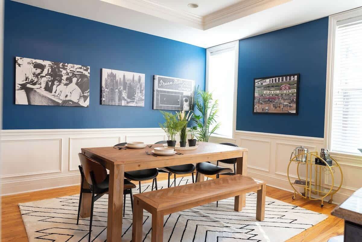 Summary: Experience Wrigleyville by staying in this stylish 3BR 2BA gem nestled just 3 mins walk from the famous Wrigley Field, perfect for guests who want to attend a Cubs game or concert. Explore the vibrant neighborhood, restaurants, shops, landmarks, and attractions. Our spacious oasis will be waiting for your group whenever you want to rest. ✔ 3 Comfy BRs ✔ Open Concept Living/Dining ✔ Full Kitchen + Wet Bar ✔ Front Patio & Back Porch ✔ Smart TV ✔ Workspace ✔ High-Speed Wi-Fi ✔ 2 Free Parking Spots The Space: This professionally designed, charming three-floor Wrigleyville Greystone, built in 1888, is completely renovated to provide a comfortable getaway to all visitors looking for a perfect stay. This house is perfect for Cubs games, concert-goers, family reunions, graduation travel, special weekends, remote workers, and more!! Each room has an abundance of amenities and beautiful furnishings enriched by plenty of natural light accenting the bright hardwood floors and tastefully picked decor. Every inch of space is well-used, which is best visible in the roomy and open-floor plan living area, which conveniently combines the living room with the fully equipped kitchen and dining area. Three highly comfortable bedrooms will provide all the relaxation you need after a thrilling day of Chicago adventures. ★ LIVING ROOM ★ The living room is perfect for enjoying fun and memorable moments after an eventful day. Find your place on the comfy sofa, grab some snacks and drinks, and enjoy watching your favorite movie. ✔ Lush Velvet & Leather Couches ✔ 65” Smart TV with Netflix ✔ Indoor Fireplace ✔ Cozy Throw Blankets ✔ Stylish Coffee Tables Come to the basement living area to discover anther spacious oasis where you can attend to work, prepare a smaller meal, and even set up an extra air mattress and have extra sleeping space. ✔ Workspace (Desk, Chair, Lamp) ✔ Wet Bar/Kitchenette (Microwave, Coffee Maker, Mini Fridge) ★ KITCHEN & DINING ★ Come to the fully equipped kitchen and use its many stainless steel cooking appliances, spacious granite countertops, and ample cabinetry to create tasty homemade meals worthy of the most praised restaurants. ✔ Microwave ✔ Stove ✔ Oven ✔ Double Doors Refrigerator/Freezer ✔ Wine Cooler ✔ Dishwasher ✔ Coffee Maker ✔ Sink - Hot & Cold Water ✔ Plates ✔ Glasses ✔ Silverware ✔ Pots & Pans ✔ Pantry Enjoy a refreshing drink on the patio while the designated family chef works their magic in the kitchen. The smells will invite you to the dining table for a tasty homemade meal. ✔ Dining Table with Seating for 7 ✔ Kitchen Island with Seating for 2 ✔ Artsy Drinks Cart ★ SLEEPING ARRANGEMENTS - 3 BEDROOMS + LOWER LEVEL LIVING AREA ★ Retreat to these comfortable, beautifully furnished bedrooms to provide you with all the rest needed after a day of adventuring throughout Chicago. ♛ Master Bedroom (Upper Level): King-Size Bed ♛ Bedroom 2 (Upper Level): Queen Size-Bed ♛ Bedroom 3 (Upper Level): Double Bed ♛ Lower-Level Living Area: Queen Air Mattress ✔ Premium Pillows, Linens, and Sheets ✔ Closets with Hangers and Shelves ✔ Full-Length Mirrors ✔ Night Stands with Reading Lamps ★ BATHROOMS ★ The home offers two full relaxing bathrooms (upper and lower floor) stocked with essential toiletries and fresh towels for maximum comfort and convenience. ✔ Bathtub with a Shower (Main Bath) ✔ Shower Cabin ✔ Vanity (Double in the Main Bath) ✔ Mirror ✔ Toilet ✔ Towels ✔ Hair Dryer ✔ Essential Toiletries ★ FRONT PATIO & BACK PORCH ★ The spacious front patio offers a relaxing outdoor setting to soak up the sun and feel the neighborhood's pulse. The charming wooden back porch provides another lovely space to drink without leaving the house. ✔ Outdoor Seating Area Look no further than our charming home for your memorable visit to Chicago, IL. We look forward to you experiencing its complete comfort and coziness. THINGS TO NOTE**You will have to climb one flight of stairs for all bedrooms. Our home is convenient to the \ train - the tracks are elevated behind the home. Most find this charming to see the train, if you are sensitive to noise the Main Bedroom will be best to sleep in at the front of the house. There are two sound machines in the house. Guest Access: You have access to the entire home The Neighborhood: If you love baseball — particularly if you love the Chicago Cubs — there's only one neighborhood for you: Wrigleyville! Bordering Lake Michigan on the north side of Chicago directly above Lakeview/Lincoln Park, Wrigeleyville/Lakeview houses one of Chicago’s most popular destinations: Wrigley Field. Originally built in 1914 for Federal League’s Chicago Whales, Wrigley Field is one the oldest still-operating stadiums in the MLB. It was renamed Wrigley Field in 1926 by then-owner William Wrigley Jr., a chewing gum manufacturer. Of course, there's more to the neighborhood than baseball. From the luxury high-rise apartments along Lake Shore Drive to the tree-filled streets and single-family homes in Graceland West, there's something for everyone from theaters, such as the Music Box Theater and the Playground Theater, as well as music venues, rows of restaurants and shops. Getting Around: This is a great location if you are attending a Cubs game, attending a concert, going on a walk to the lake, or visiting all the local bars and restaurants in Wrigleyville! Downtown Chicago is a short train ride away and the Red Line Sheridan Station is a 5 min walk from the home! Other Things to Note: In order for us to maintain the home, we have a couple of rules -No parties or events ($1000 fine) -Only registered guests can stay over in the house -No smoking of any kind ($1000 fine) -Lock up when you leave -Have fun:) Interaction with Guests: We won't be available in person to greet our guests; we are local in case of emergencies and have a team ready for such events as well. Our 