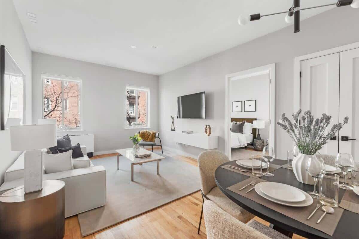 Summary: Stay at our BRAND NEW beautiful 2 bedroom with 2 bathrooms located in the Upper East Side. This gorgeous boutique building is nestled near some of the best attractions the city has to offer. With unbeatable location - minutes from Central Park, Park Ave, and 5th Ave! Bloomingdale's is a block away, along with many trendy restaurants and shops! Enjoy dinner steps away at delicious restaurants such as Sushi Seki, and grab dessert at the famous Magnolia Bakery on your way home! The Space: This elegant 2-Bedroom features a modern setting with lots of space, high ceilings and natural sunlight! The home is fully equipped with everything you'll need for a comfortable and supreme stay! From stainless steel appliances, modern renovated bathrooms, comfy beds, and all the essentials to make your stay in New York incredible! The space is perfect for families, groups or business travelers as it can accommodate up to six (6) guests. There is more than enough closet space and the kitchen is stocked with all of the top of the line appliances! *** WASHER / DRYER IN UNIT - Detergent Provided *** Elevator in building takes you right to the unit! Commitment to Cleanliness: We have implemented enhanced cleaning practices to meet the health and cleanliness standard of the Airbnb and NYC Health. All cleaning protocols are monitored as an expression of care and commitment to our guests. BEDROOMS The space is a two-bedroom with three (3) beds and sleeps a total of 6 guests. • Master Bedroom - King sized Bed (Sleep 2 Guests) • Bedroom One - Queen sized Bed (Sleep 2 Guests) • Common Area - Queen sized Sofa Bed (Sleep 2 Guests) BATHROOMS The space features a modern renovated bathroom with complimentary essentials (shampoo, shower gel, hand soap, and toilet paper) and a hair dryer. • Bathroom One - En suite master bathroom with walk in shower • Bathroom Two - Hallway bathroom with bathtub SHEETS/TOWELS The home is professionally cleaned before every stay with clean linens and towels. Fresh new sheets, linens, and towels will be provided for your stay. We will prepare based on the number of your guests. KITCHEN The kitchen is fully equipped with stainless steel appliances - stove, oven, refrigerator and dishwasher. Additional kitchen amenities include toaster, knife set, drip coffee maker, utensils and cookware. We also provide complimentary coffee and tea to enjoy that morning breeze. DINING Featuring an open floor plan, the flat offers a dining table with seating for 4 people that opens to the living area and the kitchen. PARKING There is limited free street and metered parking available on a first-come, first-serve basis. We highly recommend to not bring a car - there is Uber, taxis, trains and buses for you to get around the city. If you will bring a car, you may check Parkopedia for some nearby parking options. OTHER AMENITIES • The space comes with two 65 inch flat screen Smart TV's for your streaming apps, High-Speed WiFi, basic cable TV, in-unit washer and dryer. • Luggage Storage Available Free of Charge • SECURITY & SAFETY FEATURES • Our property is equipped with external security cameras to ensure guest safety. Rest assured, no cameras are present inside the apartment. DISCLAIMER: This is a multi-unit listing. Furnishings may vary per unit. Guest Access: Guests will have sole use of the space during the stay. The Neighborhood: The Upper East Side is renowned for being one of the most posh neighborhoods in New York City. Stroll through Central Museum, visit Museum Mile, and explore the countless local restaurants and specialty boutiques. Enjoy dinner steps away at delicious restaurants such as Sushi Seki, and grab dessert at the famous Magnolia Bakery on your way home! Getting Around: Conveniently located very close (about 5 min walk) to the 59th St and Lexington Ave., plus Q, F, R, W, 4, 5, and 6 train lines - making your commute anywhere in the city a breeze! Other Things to Note: • We have Smart TV with streaming apps only. Please use your own log-ins for Netflix, Hulu, etc. • Pack n Play is subject to availability and is available upon request only. Our prices include all fees. No hidden fees.