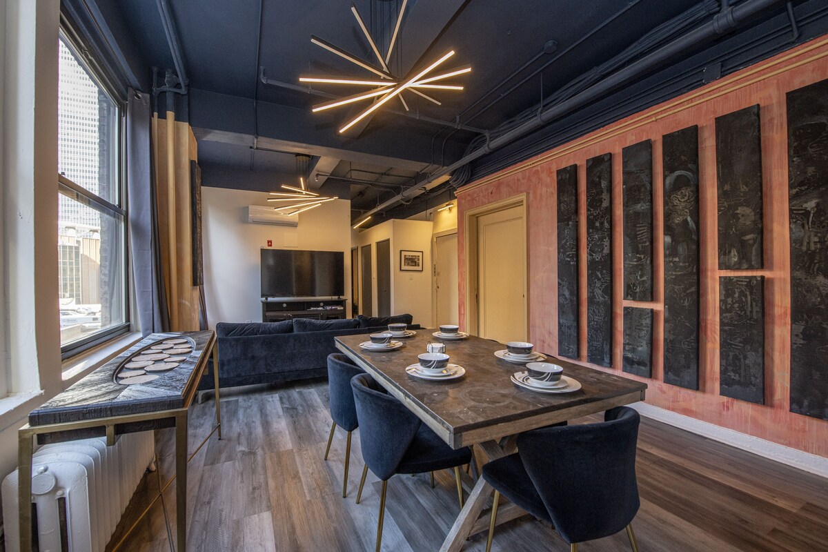 Welcome to our spacious 6-bedroom loft nestled in the heart of New York City, just a stone's throw away from Madison Square Garden! Step into luxury as you enter this meticulously designed space, boasting ample room for large groups or families seeking comfort and style during their stay in the Big Apple. The loft features six beautifully appointed bedrooms, each with plush bedding and modern amenities to ensure a restful night's sleep. The open-concept living area is perfect for socializing, with plenty of seating and a large flat-screen TV for entertainment. Prepare delicious meals in the fully equipped kitchen, complete with stainless steel appliances and granite countertops, or take advantage of the numerous dining options just steps away. With its prime location, you'll have easy access to all that NYC has to offer, from world-class dining and shopping to iconic landmarks and attractions. Whether you're here for business or pleasure, our loft provides the perfect home base for your unforgettable Manhattan adventure. Book your stay today and experience the ultimate blend of comfort, convenience, and sophistication in the heart of the city! Our prices include all fees. No hidden fees.