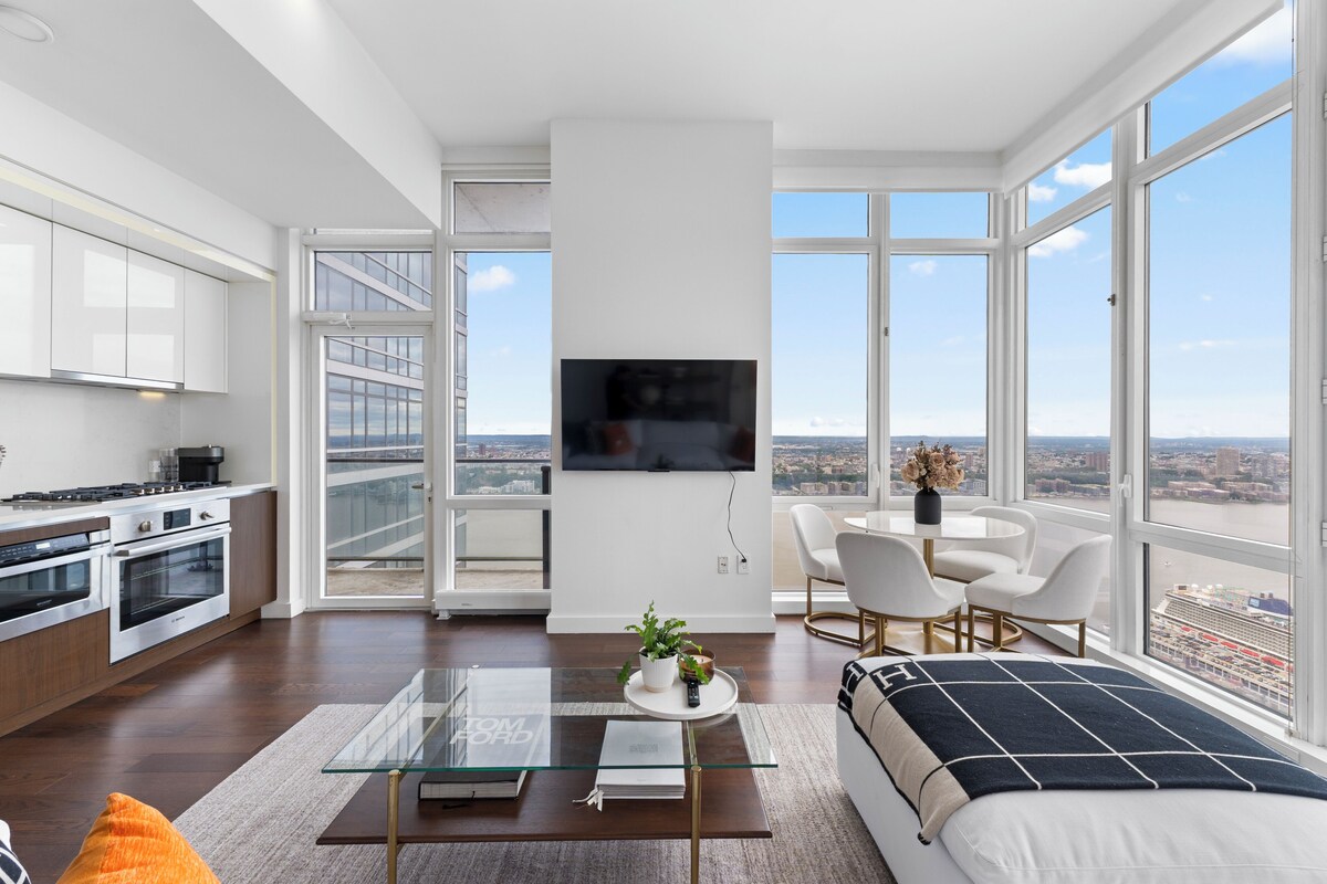 Experience the best of New York City in this luxurious corner two-bedroom apartment, perched on a high floor of a secure doorman building. Whether you’re in town for business, sightseeing, or a special occasion, this beautifully curated space offers the comfort, space, and location to make your stay unforgettable. Perfectly situated just a 10-minute walk from both Times Square and Hudson Yards, you’ll have the city’s most iconic landmarks at your fingertips. **Walk Thru Video Tour of the listing ** https://m.youtube.com/shorts/veo5YP_5AOw What you’ll enjoy: • Two Full Bedrooms and bathrooms: A rare find in Midtown Manhattan, this apartment features two spacious bedrooms, each thoughtfully designed with premium linens, blackout curtains, and ample closet space—ideal for families, friends, or business travelers seeking privacy and comfort. • Spacious Living Areas with Skyline Views: The open-concept living and dining space is flooded with natural light, thanks to a dramatic corner wall of floor-to-ceiling windows overlooking the iconic NYC skyline. Whether you’re sipping coffee at sunrise or winding down at sunset, the panoramic city views create an unforgettable backdrop. With plush furnishings, curated decor, and room to truly spread out, this is a rare retreat in the heart of Manhattan. • Entertainment & Comfort: Enjoy cozy nights in with a flat-screen TV and popular streaming services, or unwind with a good book surrounded by plush furnishings, hotel-quality bedding, and soft, fresh towels. • In-Unit Washer & Dryer: A rare NYC perk—your own washer and dryer make extended stays and busy trips easy and convenient. • Fully Equipped Kitchen: Whether you’re whipping up a home-cooked dinner or brewing your morning espresso, the kitchen is fully stocked with cookware, dishware, and a Nespresso machine for the perfect cup. • Prime Location: Just a 10-minute walk to Times Square and Hudson Yards, and close to countless restaurants, theaters, shopping, and subway lines. Explore the best of the city right outside your door. • Flexible Sleeping Arrangements: The apartment comfortably sleeps 4 guests across two bedrooms, with the option to accommodate additional guests in the living area. A real queen-sized bed can be added upon request, and we offer alternative setups such as a crib for babies. Just message us to tailor the sleeping arrangements to your group. • Spotless Stay Guarantee: Cleanliness is our top priority. If the apartment doesn’t meet your expectations upon arrival, we’ll send a professional cleaner back within 24 hours—no questions asked. Why choose this apartment? With over a decade of experience as a short-term rental host, I’m committed to making your stay smooth, comfortable, and memorable. From personalized local recommendations to round-the-clock support, you can count on attentive service every step of the way. Book now for the perfect blend of luxury, location, and peace of mind—I look forward to hosting you! Our prices include all fees. No hidden fees.