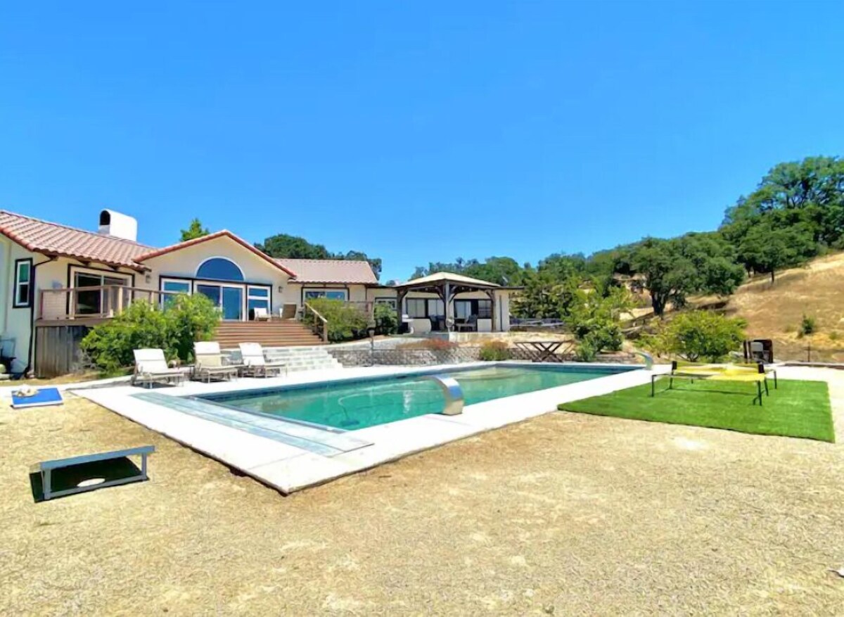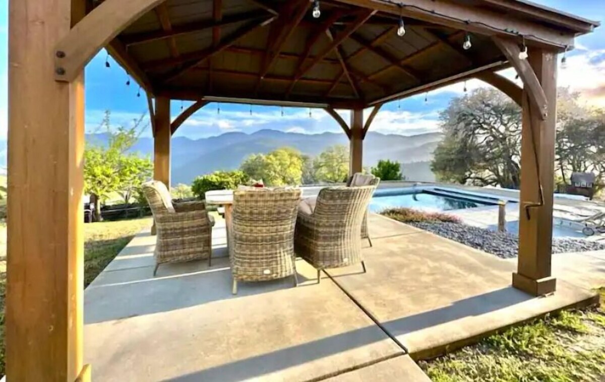 Perched atop a sun-drenched hillside, surrounded by fruit trees, native foliage, herbs, and panoramic views of Carmel Valley. 3 bedrooms, 2 full bathrooms, open kitchen concept, expansive living area with fireplace and AC. Master bedroom boasts breathtaking views of the Valley, cozy fireplace w/ en-suite bathroom. Featuring a backyard oasis with an expansive deck, separate patio with gazebo and a swimming pool. Perched atop a sun-drenched hillside in the serenity of Carmel Valley, this immaculate, 2-unit property is surrounded by fruit trees, native foliage, herbs, and panoramic views of the rolling hills of Carmel Valley. The main house features three bedrooms, two full bathrooms, a large open kitchen concept, separate dining area and expansive living area with fireplace. The primary bedroom boasts breathtaking views of the Valley, cozy fireplace, en-suite bathroom, and walk-in closet. Featuring a backyard oasis with an expansive deck, separate patio with gazebo and a new swimming pool with custom water features. The detached guest house boasts a new redwood deck, full kitchen, fireplace, full bathroom and incredible views of the property grounds and Carmel Valley. Complete with air conditioning. This is an incredibly rare offering and slice of paradise that does not come available often! *Detached guest house is available to book upon request (this is a separate listing with its own parking and entrance and shares no common spaces or amenities with this home, however, I suggest you book it if you consider yourself a very private person and do not want anyone else on the property (link sent upon request) ***NOTE: Our heat pump runs on solar energy and is designed to be used for spring summer and fall. Please note that this pump will only heat the pool water 10 degrees warmer than the current outdoor ambient temperature. -Pool heating fee is $150 per day and requires a 2 day minimum and 3 days notice. -Pet fee is $150 for up to 2 dogs. -PETS: If you bring a pet, and the pet causes damages, you agree to pay for such damages (door scratches, stained couches, etc). You must ensure they will not scratch any doors or go on the beds or sofas. Carmel Valley Veterinary Hospital offers really reasonable rates to board your dogs if this is an option for you. -Guest House: The guest house is located 50 ft away from the main home. It sits below the main home and to right, behind the swimming pool. This place is separate and has no common or shared areas with the main home. Guests have their own private entrance and parking. If you would like to add it we will send you the link, otherwise it may be booked. -Make sure to bring all of your groceries and beverages as you are a 15-20 minute drive from Carmel Valley village and there is no grocery store nearby. I will provide basic items like olive oil, salt, pepper, sugar, coffee and filters. -The drive to this property is on a narrow, winding country road which is dark at night. Please plan to arrive during daylight if it is your first time at the property. Do not plan to travel into town to restaurants or weddings for heavy drinking and expect to drive back to the home safely. Use pull-out spots to pull over for locals that may be driving faster. -Please note that the pool is an extra amenity. If anything should happen to it during your stay, I will do everything in my power to fix it in a timely manner. However, there are no refunds with issues related to the pool. Our prices include all fees. No hidden fees.