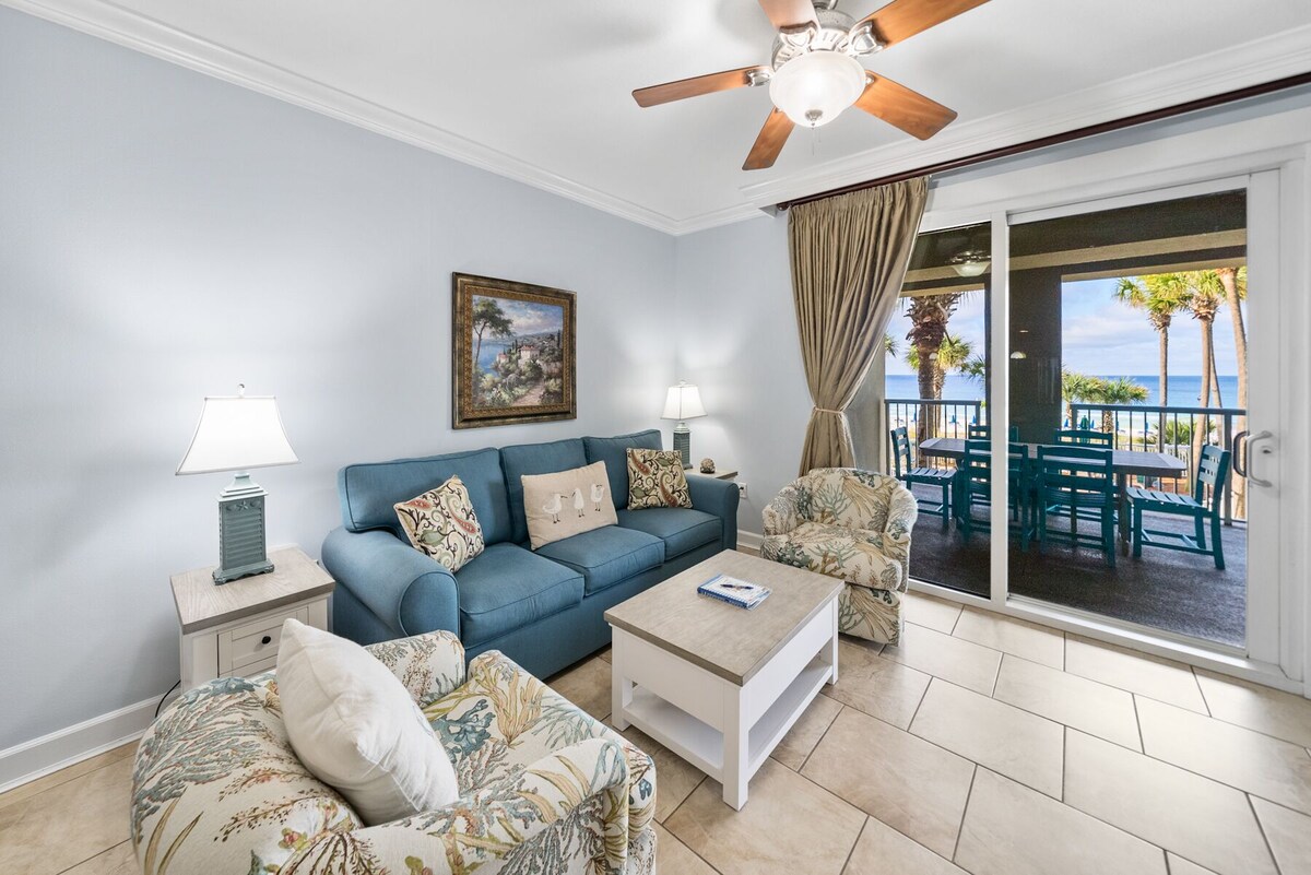Gulf-Front Elegance at Grand Panama – Unit 207 | 2BR + Bunk Nook | Sleeps 8 | Pet Friendly Warren Beach Rentals is proud to present Unit 1-207 at Grand Panama Beach Resort—an impeccably decorated, Gulf-front retreat on a premium low floor with one of the largest balconies in the entire resort. This beautifully styled 2-bedroom + bunk nook condo comfortably sleeps up to 8 guests. Every detail has been thoughtfully curated for a relaxing, upscale beach getaway. Condo Features: Gulf-Front Master Bedroom: King bed, flat-screen TV, balcony access, and an ensuite bathroom with dual vanities, a soaking tub, and a separate walk-in shower. Second Bedroom: King bed with easy access to the adjacent full bathroom. Hallway Alcove: Twin daybed with pull-out trundle—perfect for kids or extra guests. Living Room: Queen sofa sleeper, large flat-screen TV, and floor-to-ceiling views that open onto your oversized private balcony. Spacious Gulf-Front Balcony: Dine al fresco or kick back and relax while enjoying panoramic views of the Gulf, resort pool, and beach. Fully Equipped Kitchen: Granite countertops, stainless steel appliances, and everything you need to prepare meals at home. Additional Amenities In-Unit Washer & Dryer Free WiFi Pets (dog only) considered up to 25 lbs with the exception of emotional support pets. There is a $225 plus tax additional pet cost per dog and the pet must be registered in advance through the HOA. Grand Panama is the ONLY pet friendly modern condo on the gulf. Grand Panama HOA additional costs: The resort cost is $55.00 The resort cost includes 1 parking pass and wristbands for everyone in your reservation 13 and older. Wristband replacement is $10.00. Motorcycle parking is $55.00. Trailer Parking is $55.00 (only during bike week). An additional parking pass can be purchased for $35.00 during registration. Only two parking passes are allowed per unit. Guests bringing a pet to a Pet Friendly unit must register the pet in guest registration system. Pet Sleeves are $50.00 per sleeve. House Rules: Primary renter must be 25+ and remain on-site for the duration of the stay No smoking, vaping, or drug use No parties or college groups Our prices include all fees. No hidden fees.