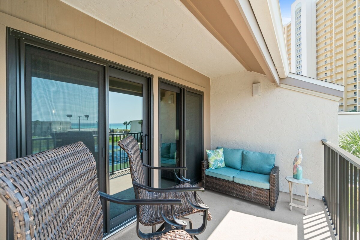 • Welcome to Family Friendly Sugar Beach Condos in Beautiful Panama City Beach! Nestled within the pristine shores of Sugar Beach in Panama City Beach, this charming condo offers the perfect retreat for families seeking a memorable vacation experience C34 is a 3rd floor condo that has direct access to the sandy shores of Sugar Beach. It accommodates up to 6 people with 2 bedrooms and 2 bathrooms. It is adorned with beach decor and relaxing beach colors. It has an equipped kitchen to make sure you have the essentials to stay in to dine if you wish. There is a private beach entrance and a refreshing pool onsite. Sugar Beach complex it at the intersection of Joan and Thomas, making it a great spot for walking to many attractions and restaurants. If you are flying into PCB, Sugar Beach is a great destination that doesn’t require a vehicle to enjoy local food and activities nearby. As you step onto the ocean view balcony of our condo, the gentle sea breeze welcomes you to a world of relaxation and adventure. A community pond is home to many turtles and other little creatures to enjoy. Imagine waking up to the sound of waves, spending lazy afternoons by the pool, and creating everlasting memories with your loved ones. You can enjoy grilling out on the patio by the pool house with friends and family. Indulge in the tranquility of Sugar Beach, where every moment is a cherished memory waiting to be made. Secure your family's slice of paradise today! 🏄♀️ Nearby Attractions 🏄♀️ Slingshot and Vomatron PCB Emerald Falls Family Recreation Center St. Andrews State Park ZooWorld WonderWorks Ripley's Believe It Or Not Captain Anderson's Marina Shipwreck Island Water Park Gulf World Marine Park Pier Park Northwest Florida Beaches International Airport (ECP) 🍴 Local Restaurants 🍴 Bricks and Barley Pizza Hammerhead Fred's Longboards Restaurant and Bar Hershey's Beach Ice Cream Shop Ms. Newby's Liquor Guadalajara Mexican Grill Wendy's Barracuda Beach Bar and Grill Outlaws BBQ Buster's Beer and Bait Waffle House 2 min drive Stingray's at the Dunes of Panama Schooners Shore Dogs Grill Newby's Curve Shore Shack Pizza Alibi's Beach Lounge and Grill Patches Pub Deckhand Social has a pool onsite, Enjoy a meal while the kids swim! **Beach Service for 2 includes 2 chairs and 1 umbrella set up on beach for you. Service available seasonally.** **Please note that Sugar Beach Condominium Complex HOA charges a fee for parking and pets. It is charged by the stay and is in addition to any fees already collected by Signature Destinations LLC. Currently, the parking fee is $37.00 per vehicle and subject to change without further notice. Pet fee for the complex is $150 for 1 pet and $200 for 2 pets for stays 4 nights or longer. For stays 3 nights or less, the pet fee is $80 for 1 pet and $120 for 2 pets. These pet fees are paid to the HOA after booking and are in addition to the $225 pet fee already charged by Signature Destinations LLC. After booking, you will receive the link to the website to pay the applicable HOA fees. Please note that Vicious Breeds as determined by the Sugar Beach HOA are not allowed. These include but are not limited to Akita, Chow, Doberman Pincher, German Shepherd, Pit Bull (including American Staffordshire Terrier, Staffordshire Bull Terrier), Presa Canario, Rottweiler, and Wolf Hybrid.** Our prices include all fees. No hidden fees.